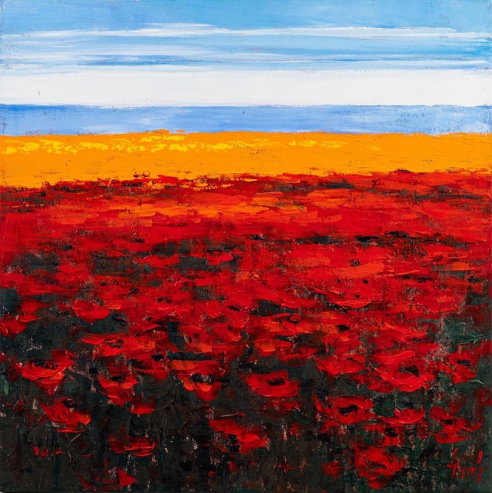 Carl Scanes [British, b. 1964] Wild Poppies, 2003/ Landscape, 2002 signed lower left and inscribed to reverse oils on canvas each 51cm square (unframed) (2)
