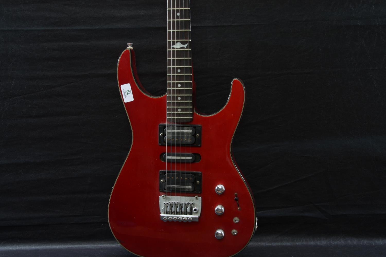 Marlin Loner electric guitar with Floyd Rose style bridge, two humbucker and a single coil pickup with chrome hardware