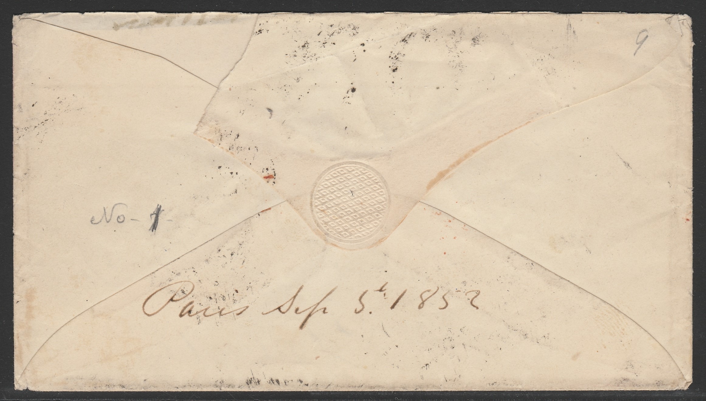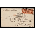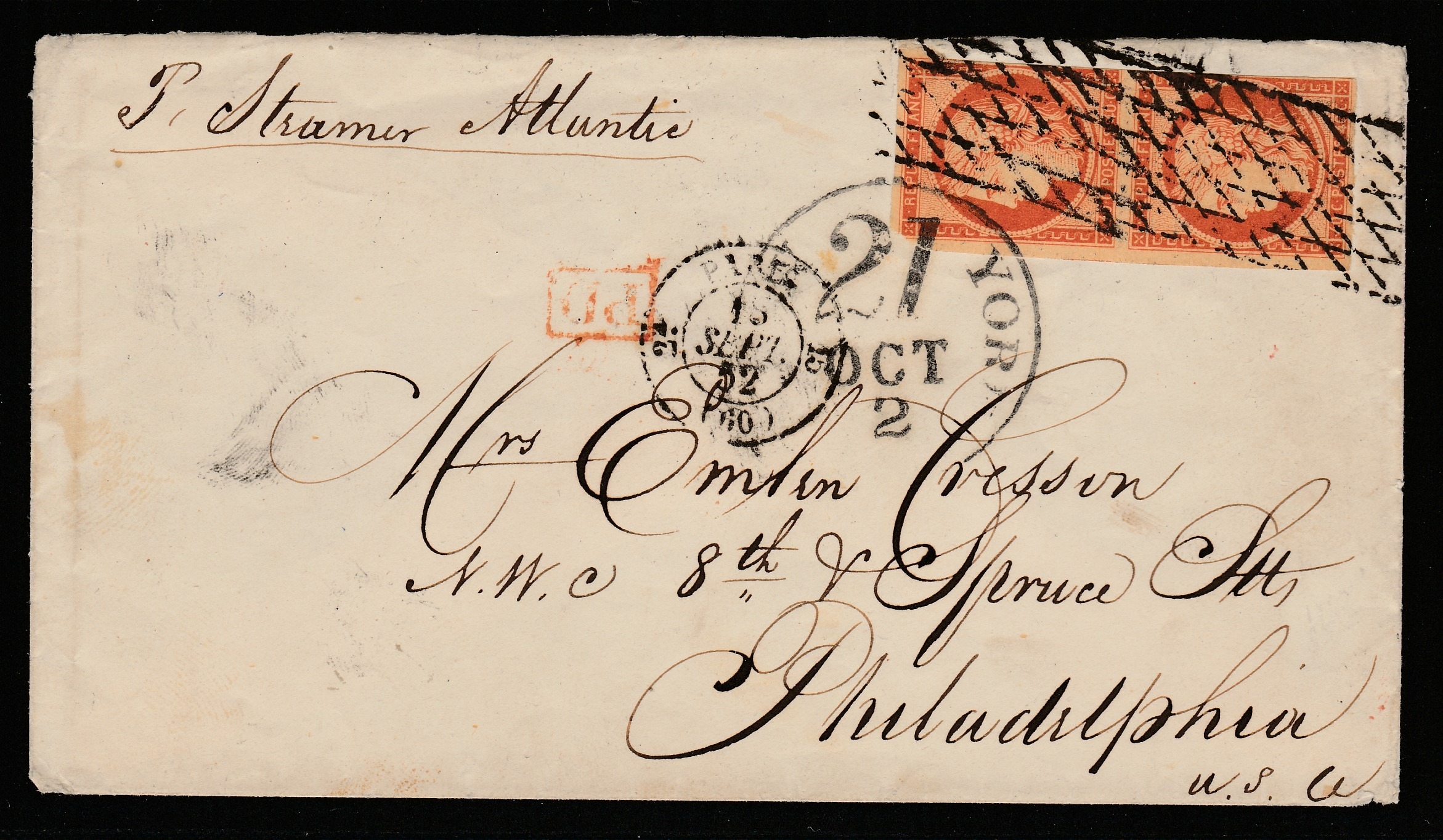 1852 cover with pair yt5 40c deep orange - Various cancels Per Steamer Atlantic