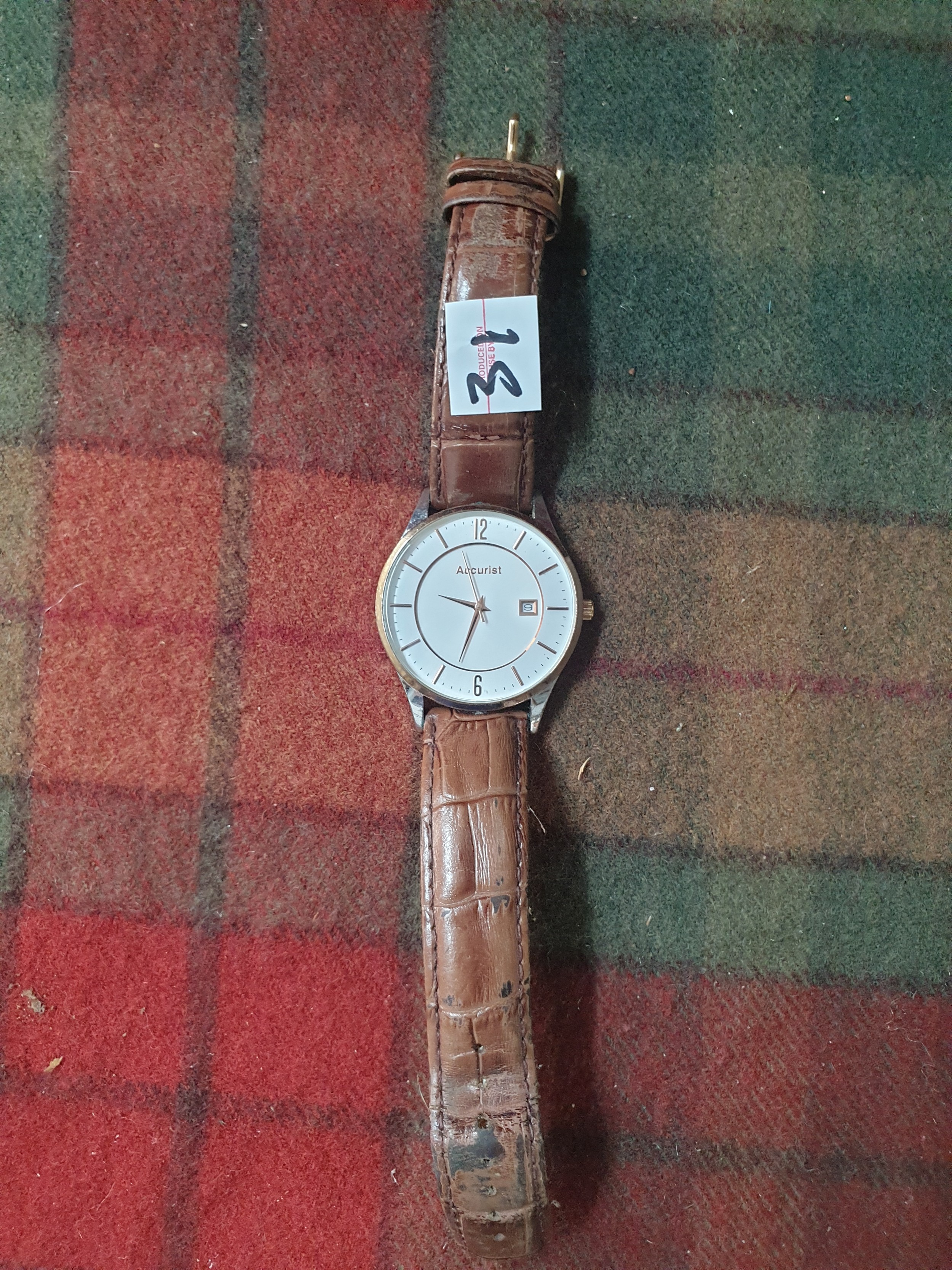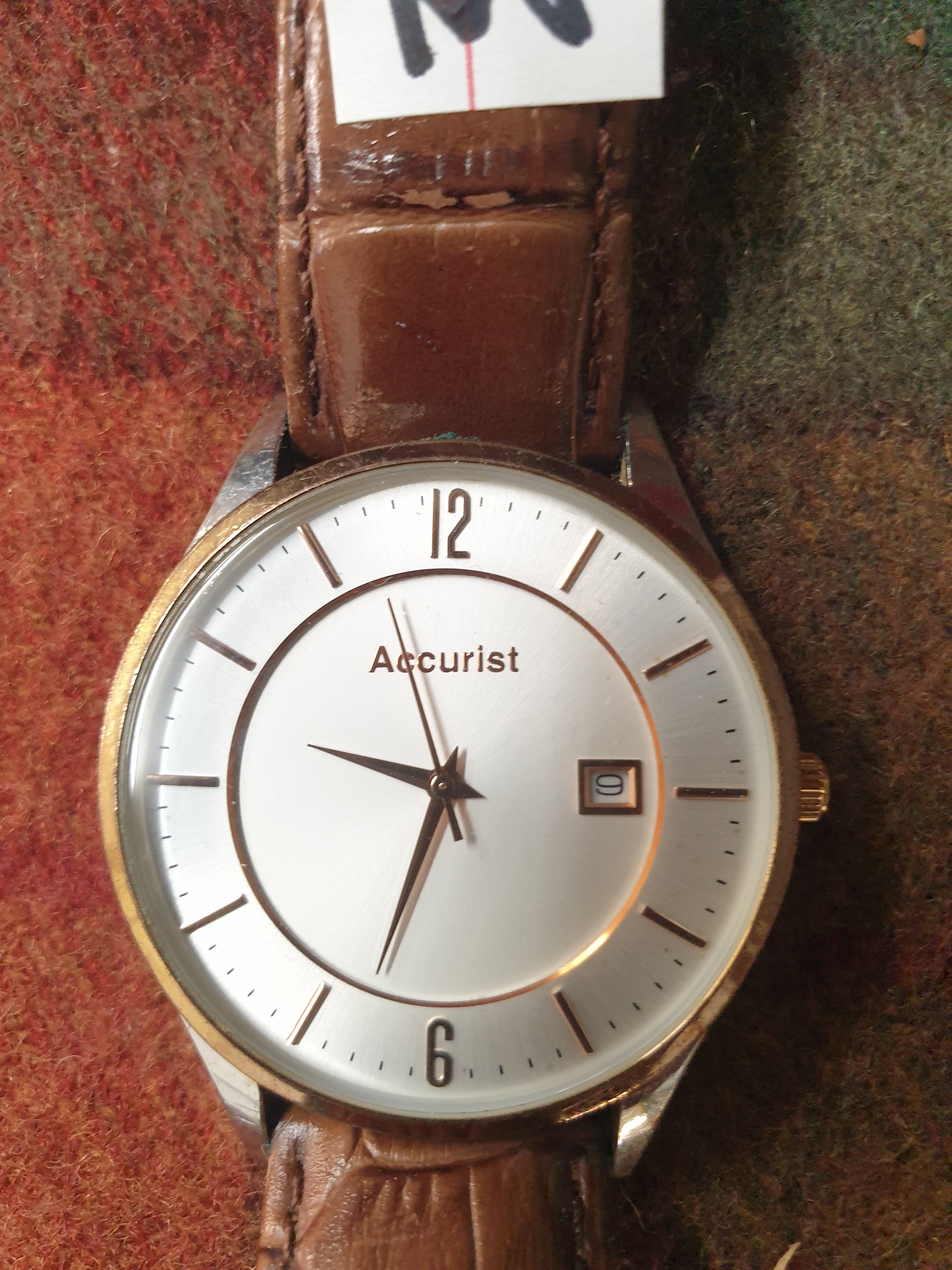 Vintage Accurist Gents Wrist Watch With Date Calendar fitted with leather strap.
