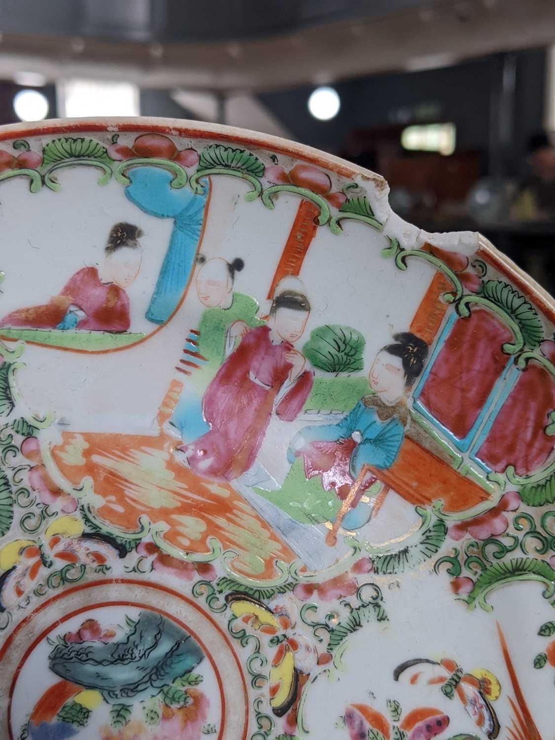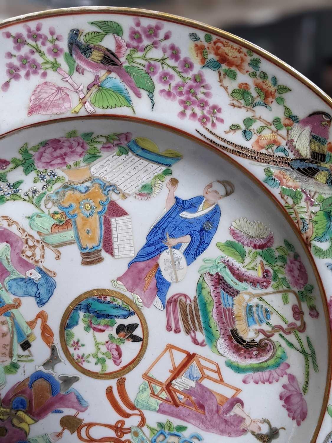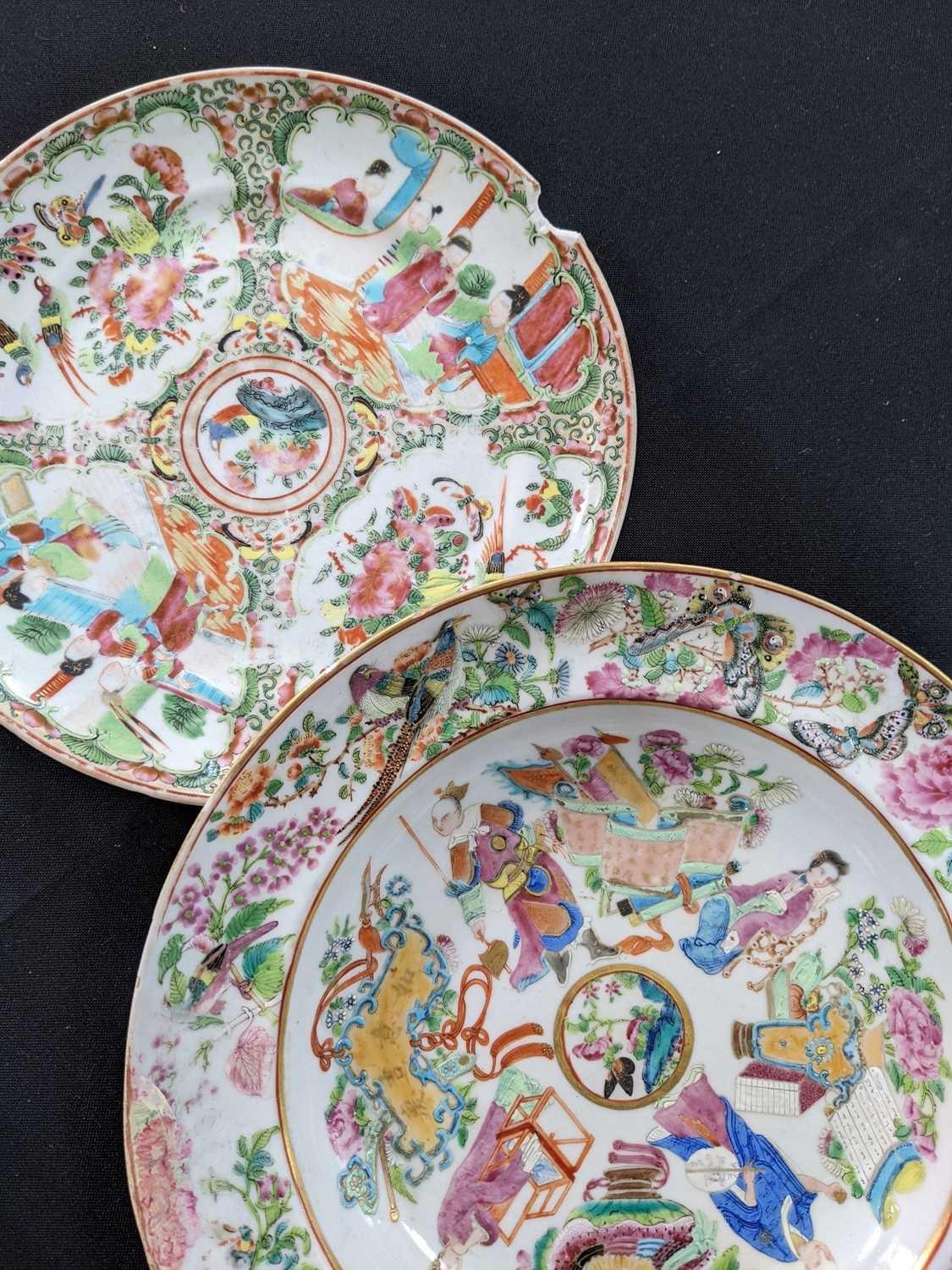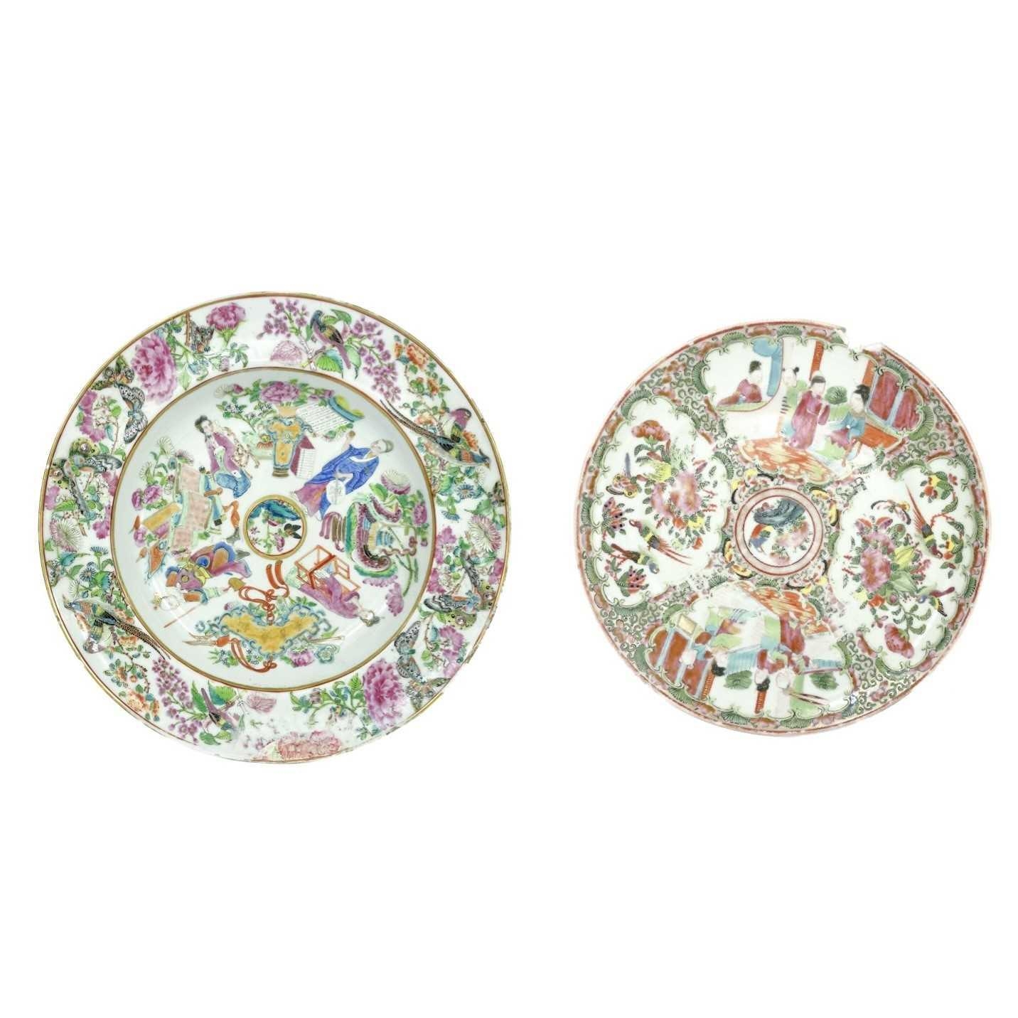 A Chinese Canton porcelain dish, 19th century. Height 4.5cm, diameter 25.5cm and a Chinese Canton plate, 19th century, diameter 22cm.