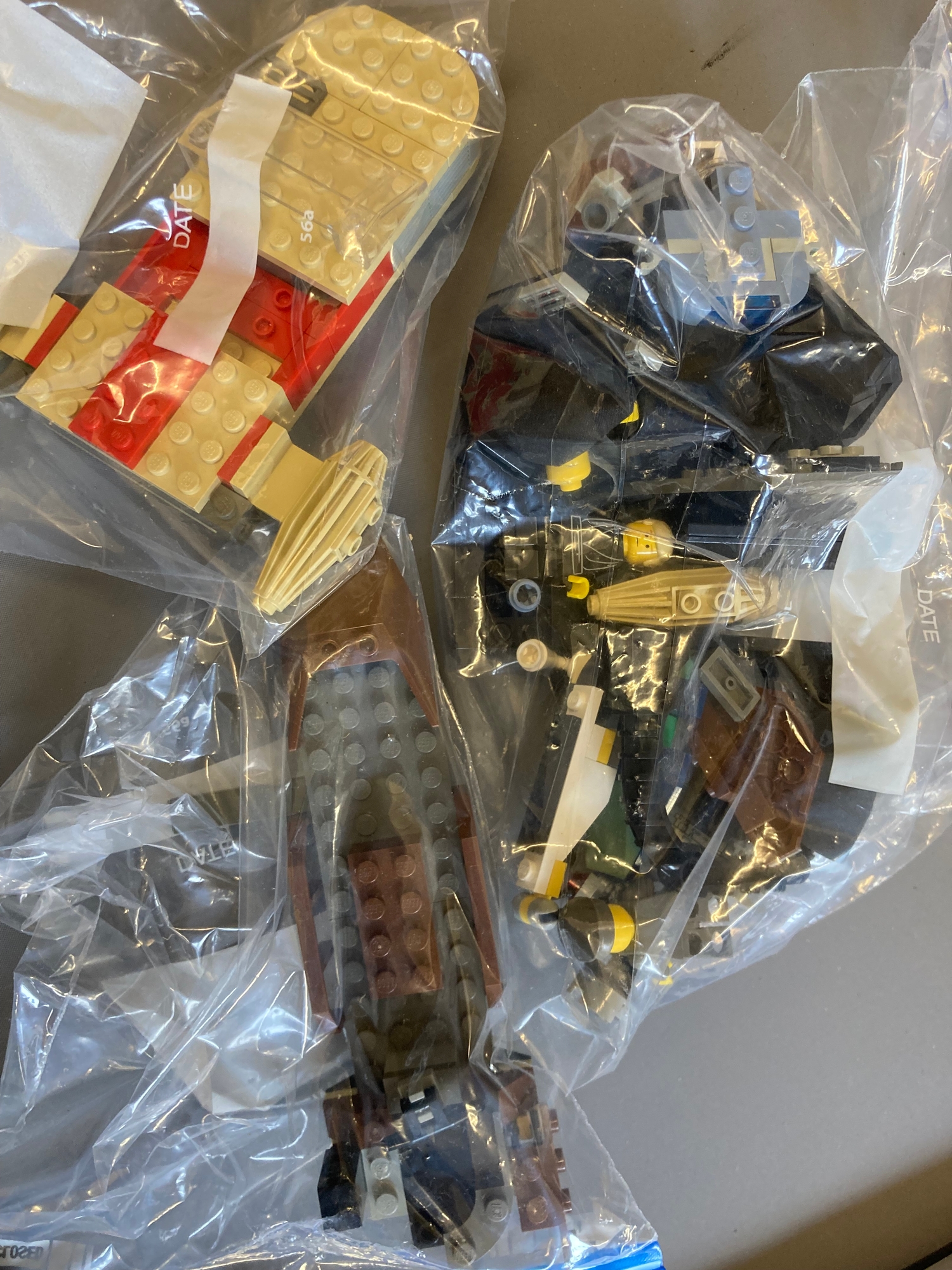 A large quantity of Lego Star Wars figures and models. All recent issue items in plastic bags with former empty boxes. Unchecked for completeness, good