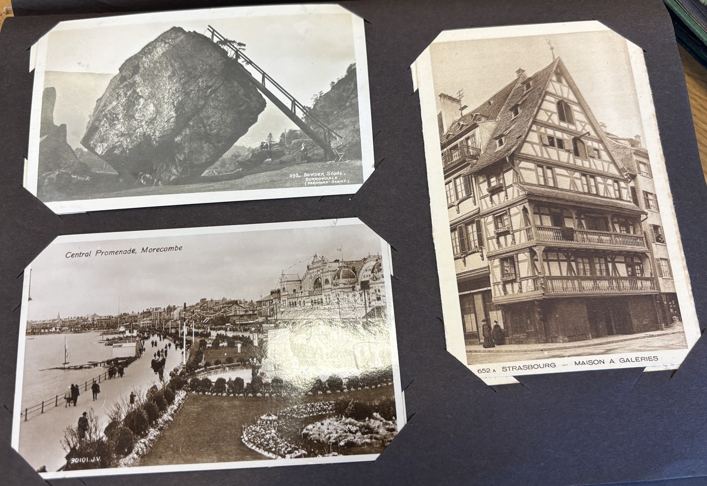 Misc. Coln. of vintage and modern cards in 11 albums and 2 frames, with ptd, artist drawn and R.P's, incl. Bosnia, Cornwall, Clovelly, Devon, France, Shipston, Stratford upon Avon and Welford. Qty. approx. 300+. BUYER MUST COLLECT, GLASS WILL NOT BE POSTED. (2B + 3 Frames)