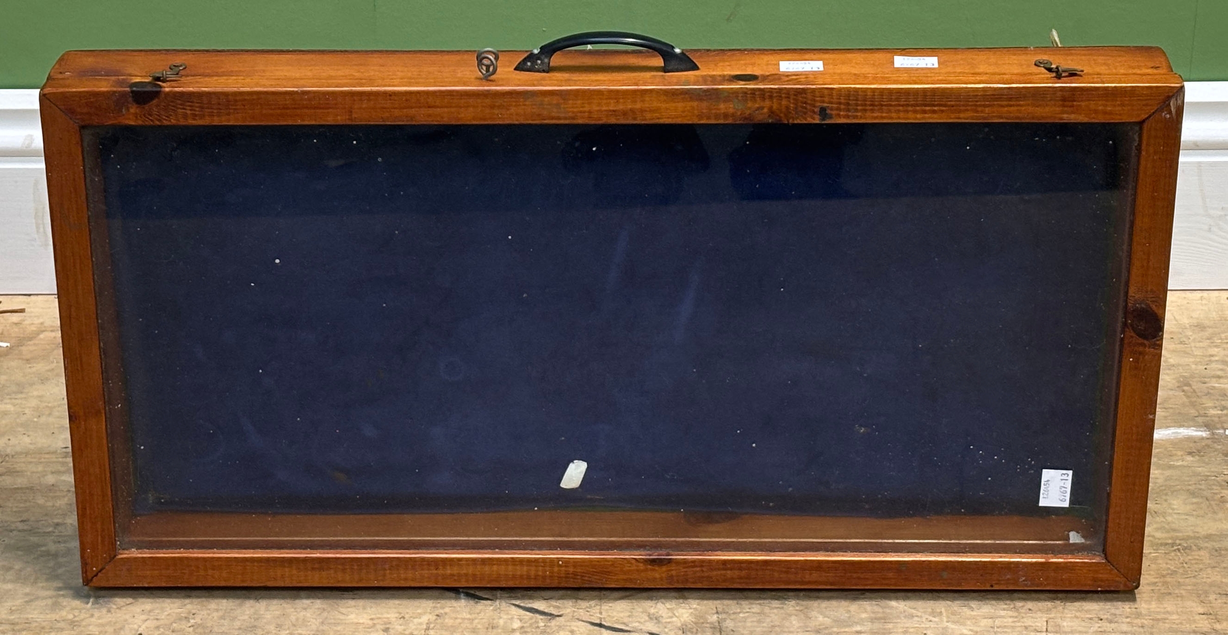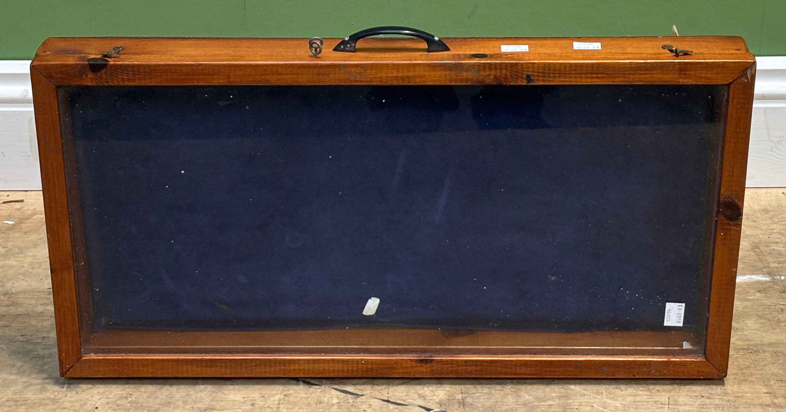 A small glazed pine display case, 61x31x7cmH