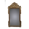 A large giltwood pier mirror in the Neoclassical style, the rectangular plate within a carved frame of laurel and rosette ornament, surmounted by an urn with scrolling acanthus and floral sprays. Original gilding and mirror plate. 180 x 96 cm. MIRRORS Tuesday 25th November 2025 10:42:54