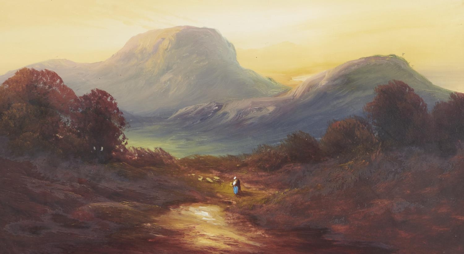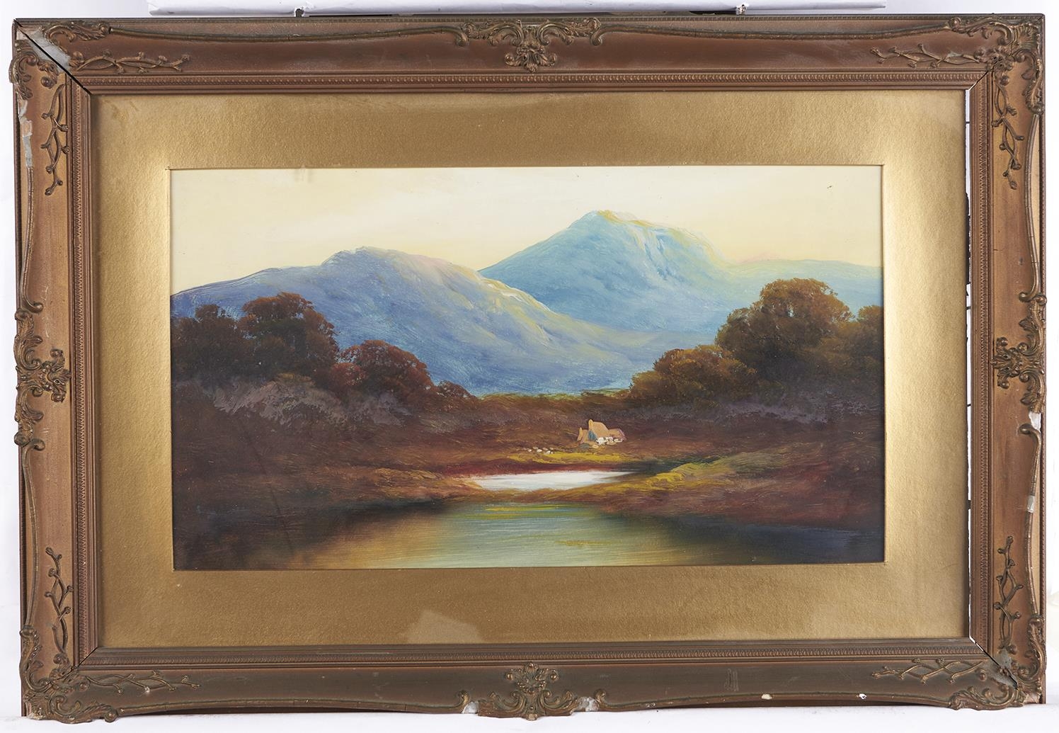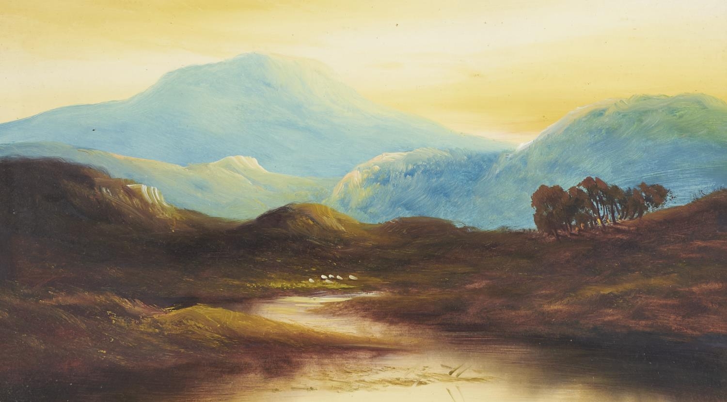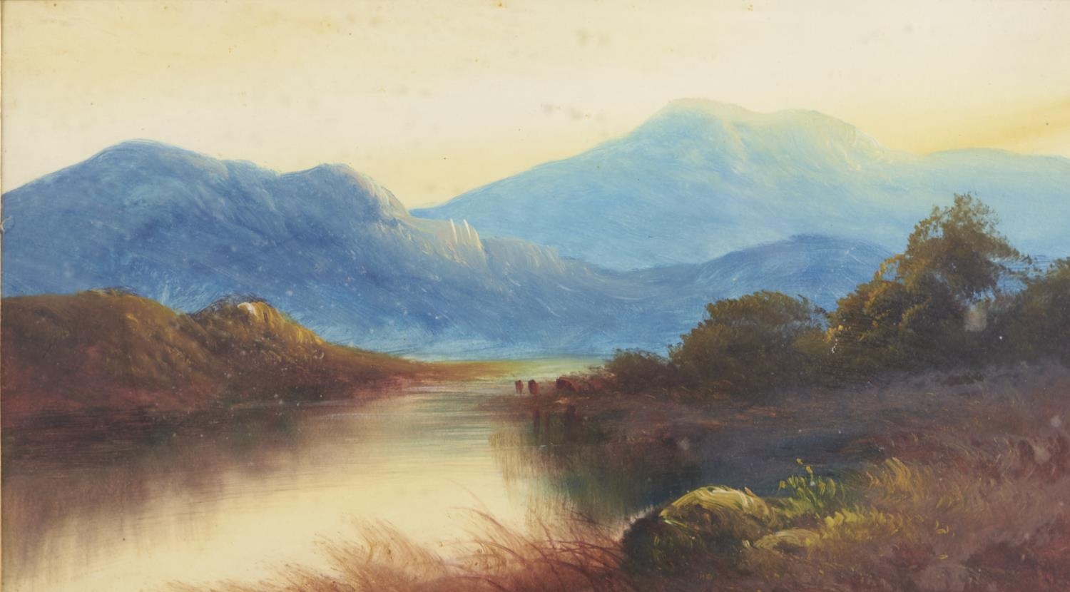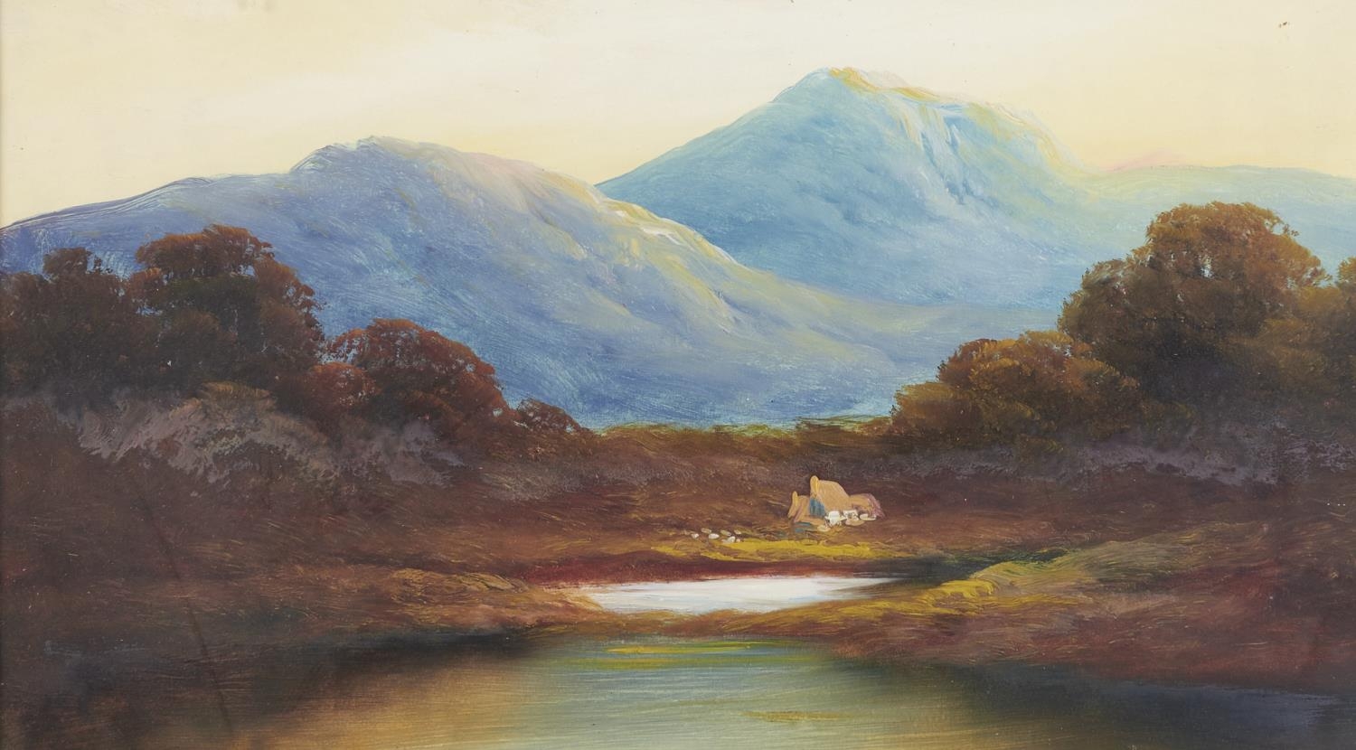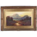 British School, late 19th c - Mountainous Landscapes, a set of four, oil on board, 25 x 45cm (four)