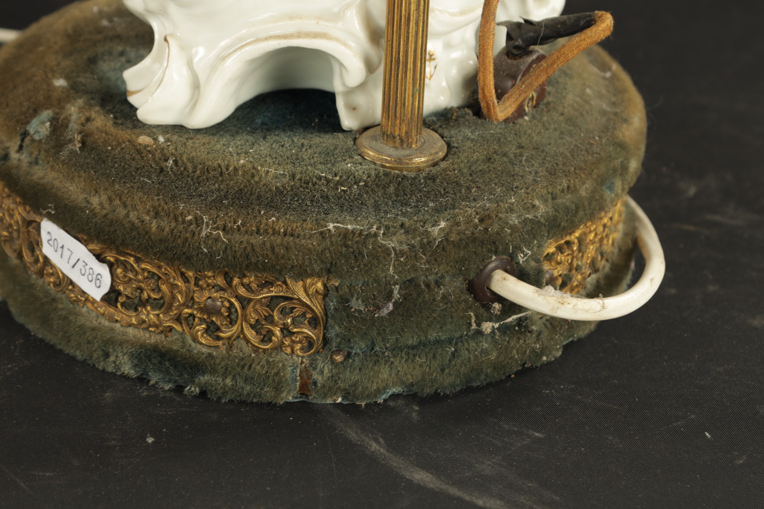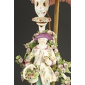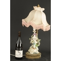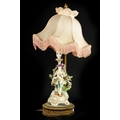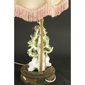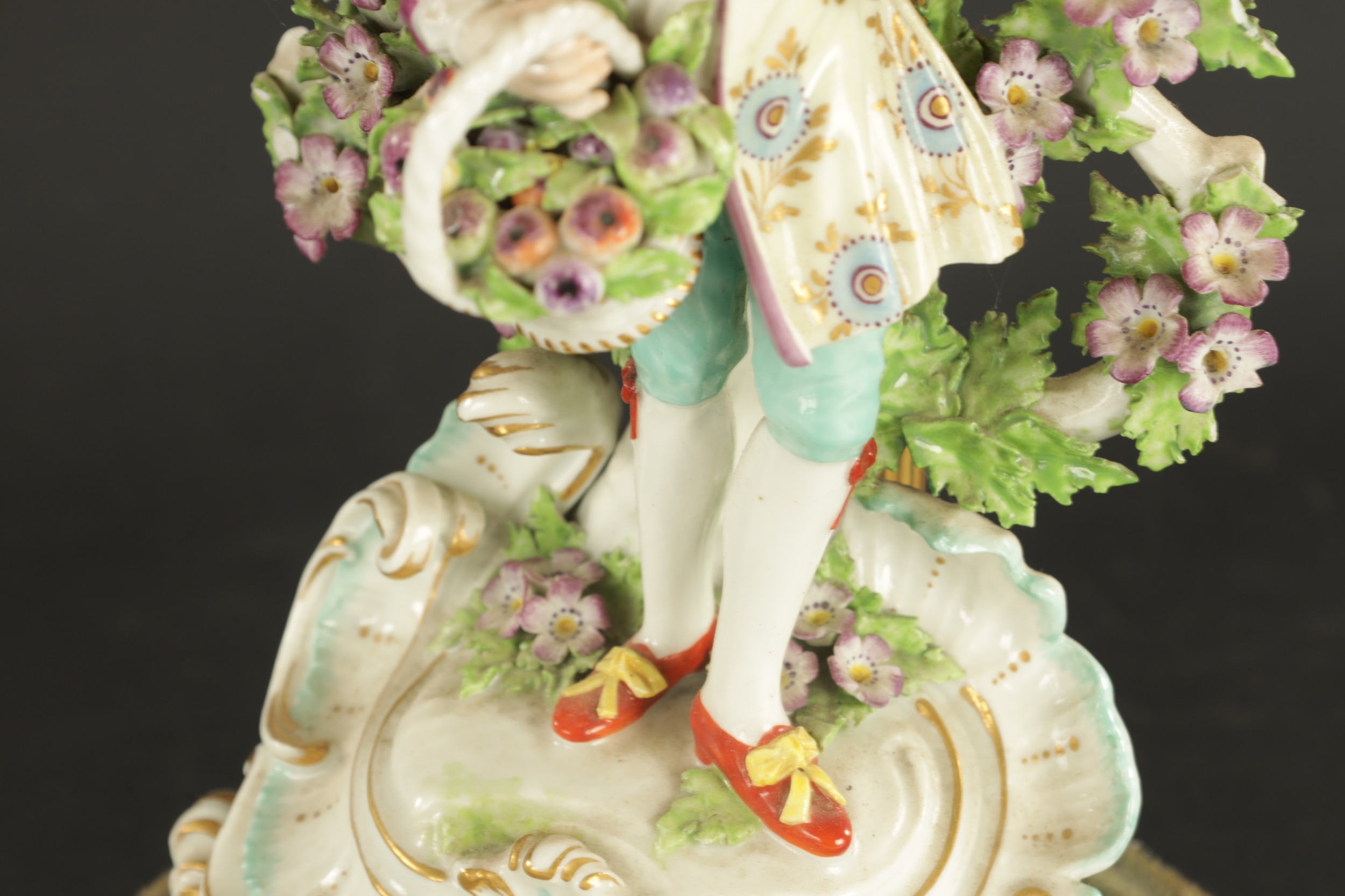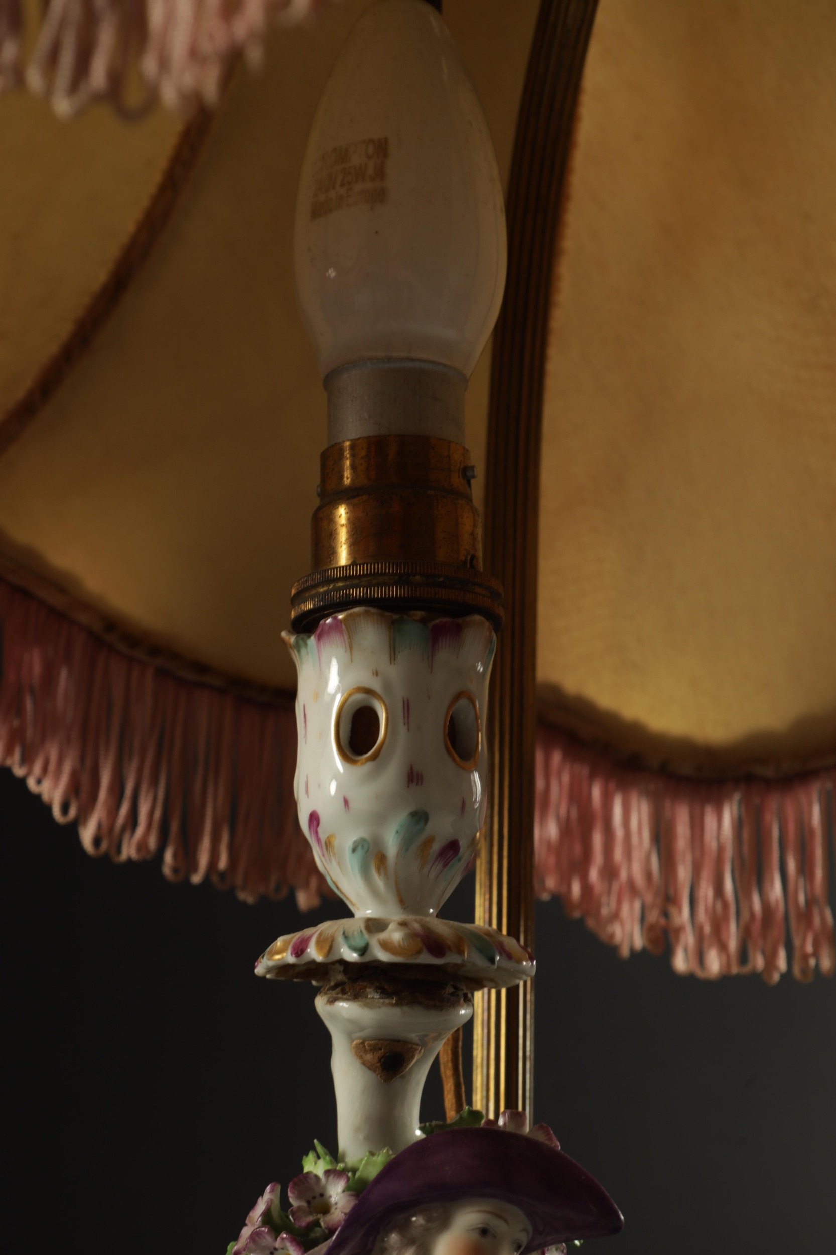 A FRENCH PORCELAIN LAMP FIGURE of a boy with a basket of fruit in the derby style (36cm High)