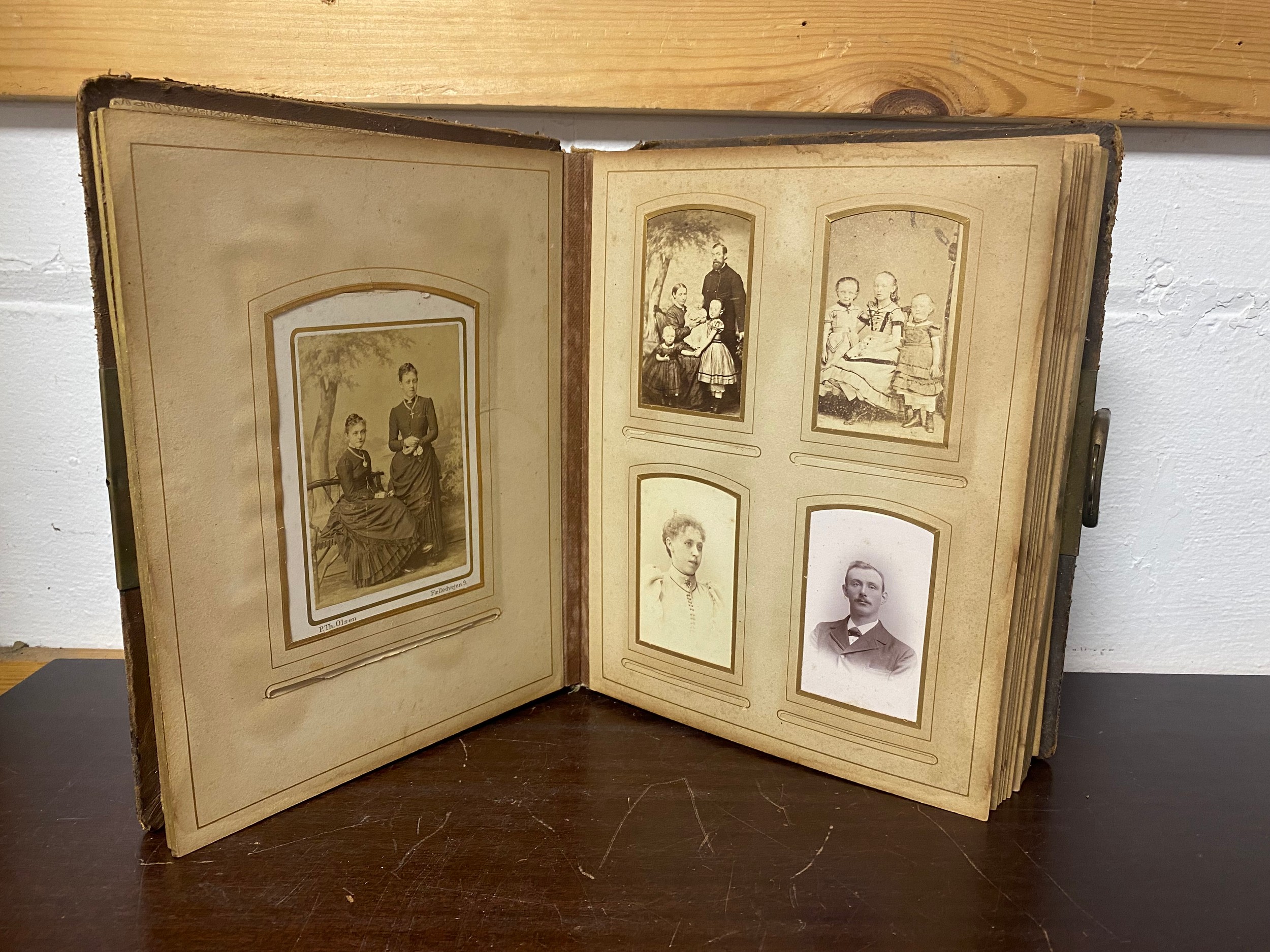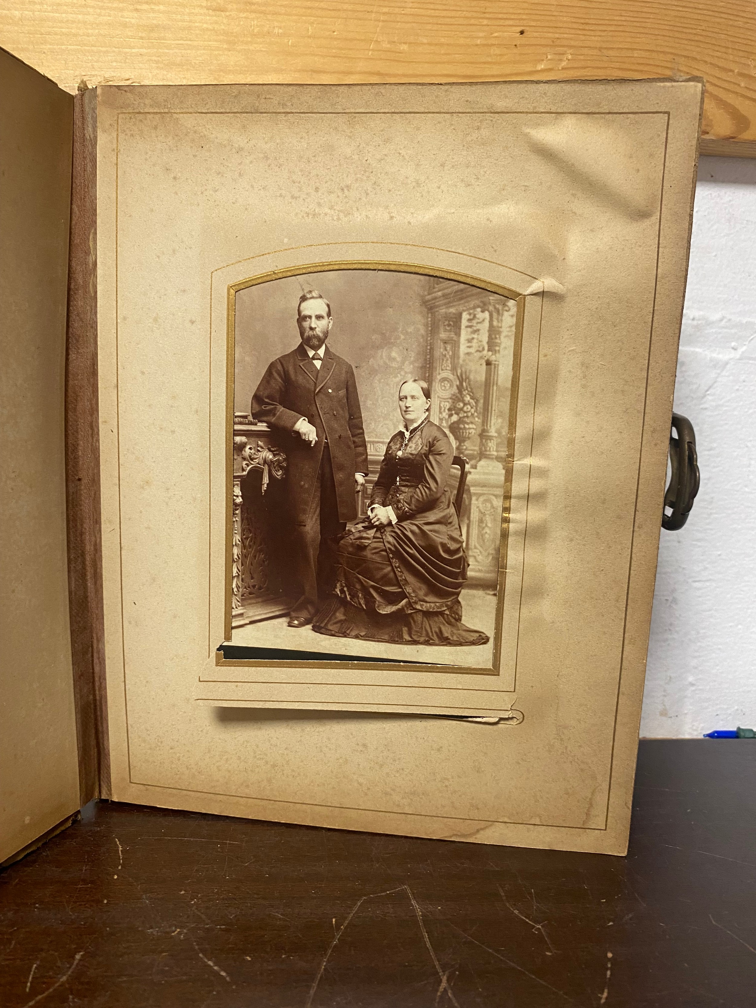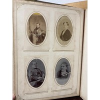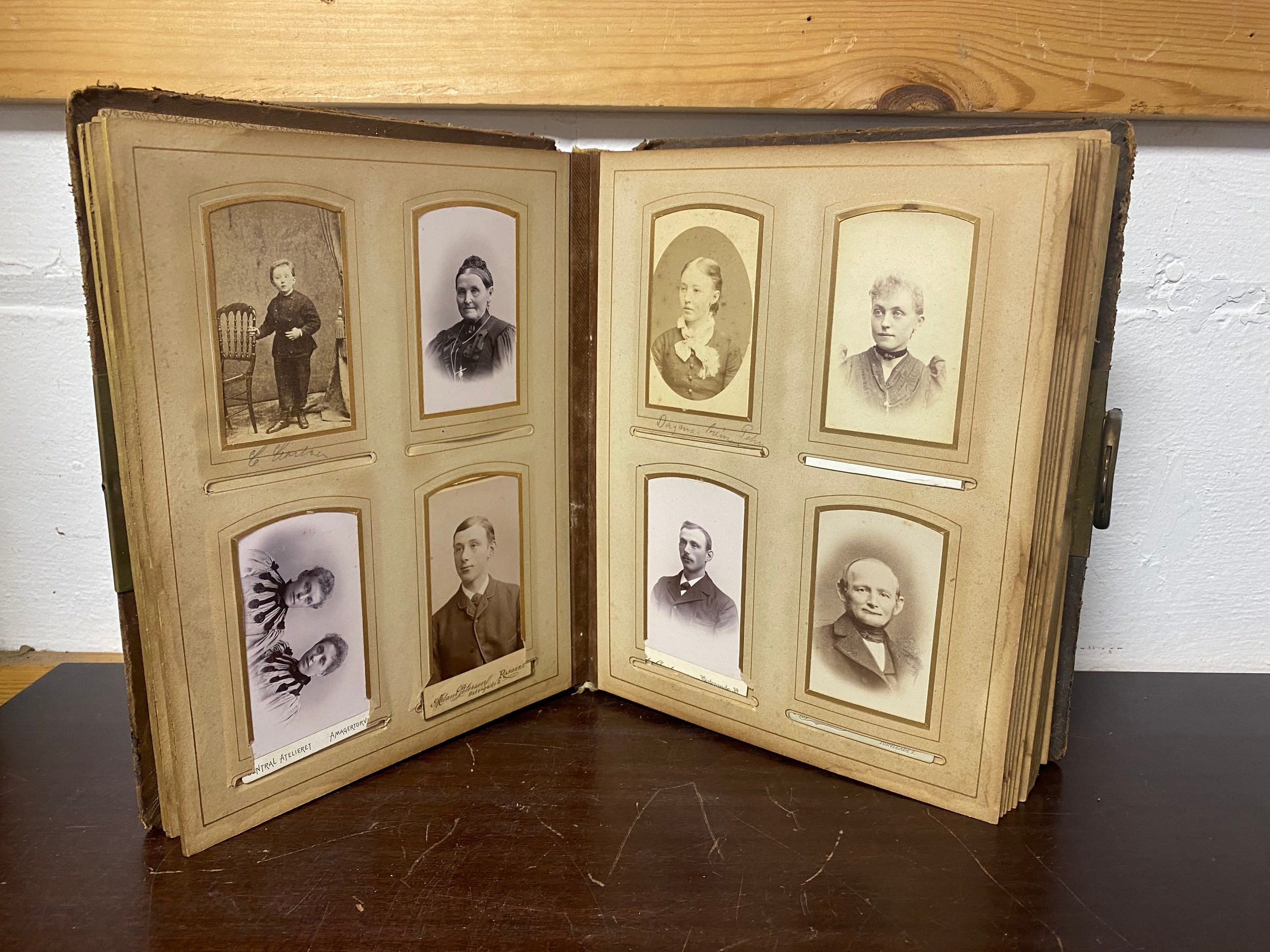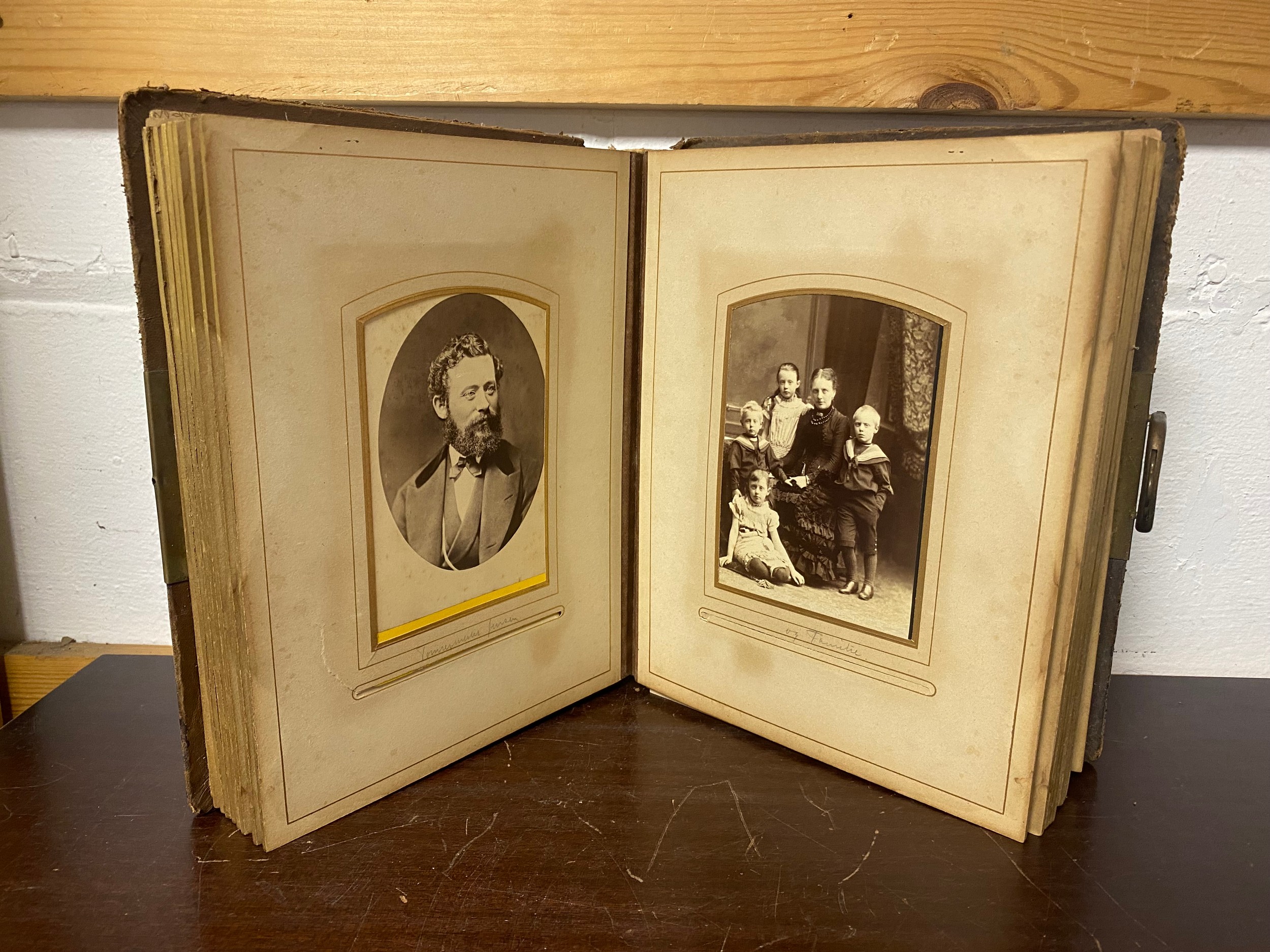 A Victorian photograph album, containing approximately 68 carte de visites and photographs, and some loose -