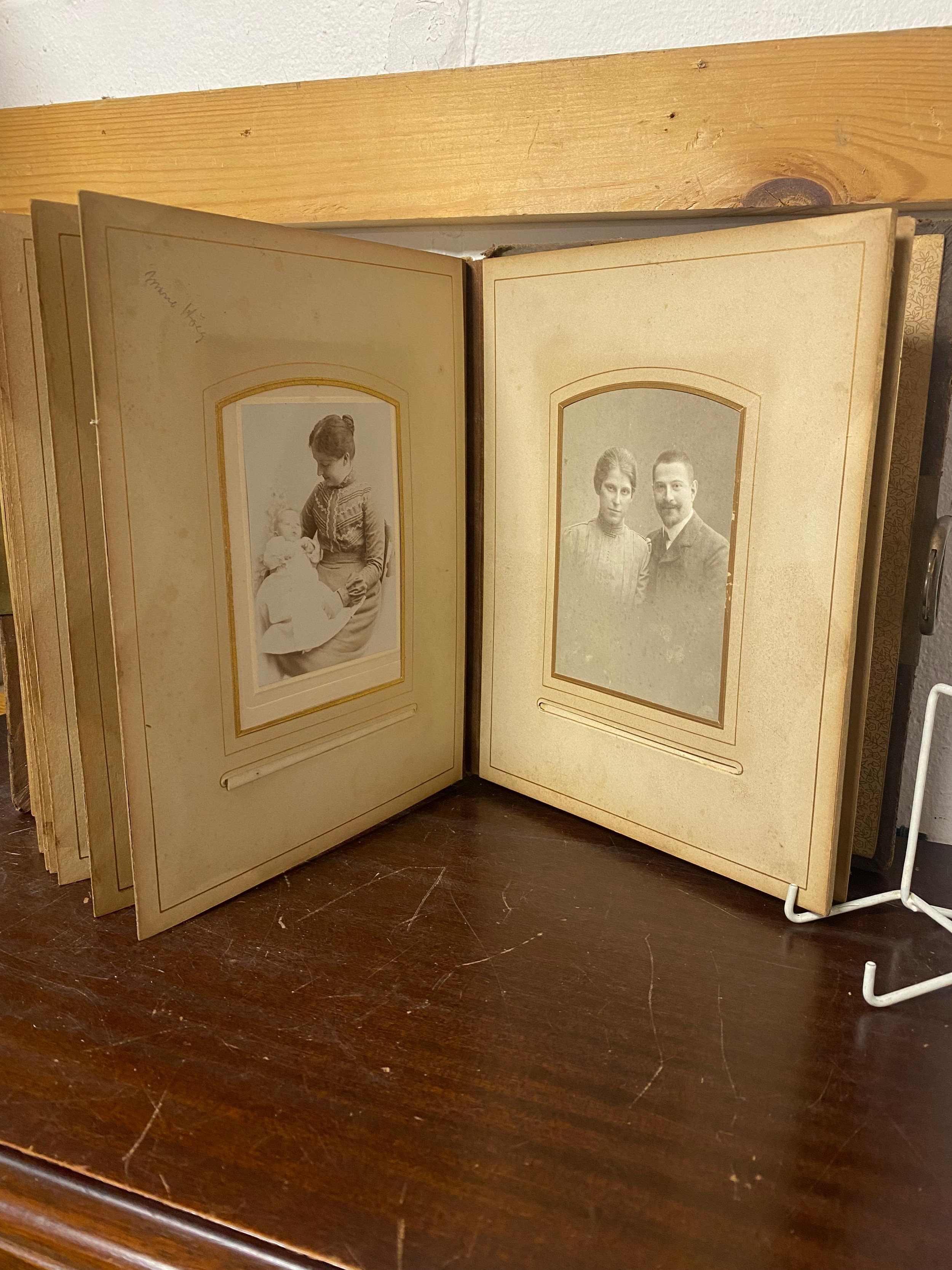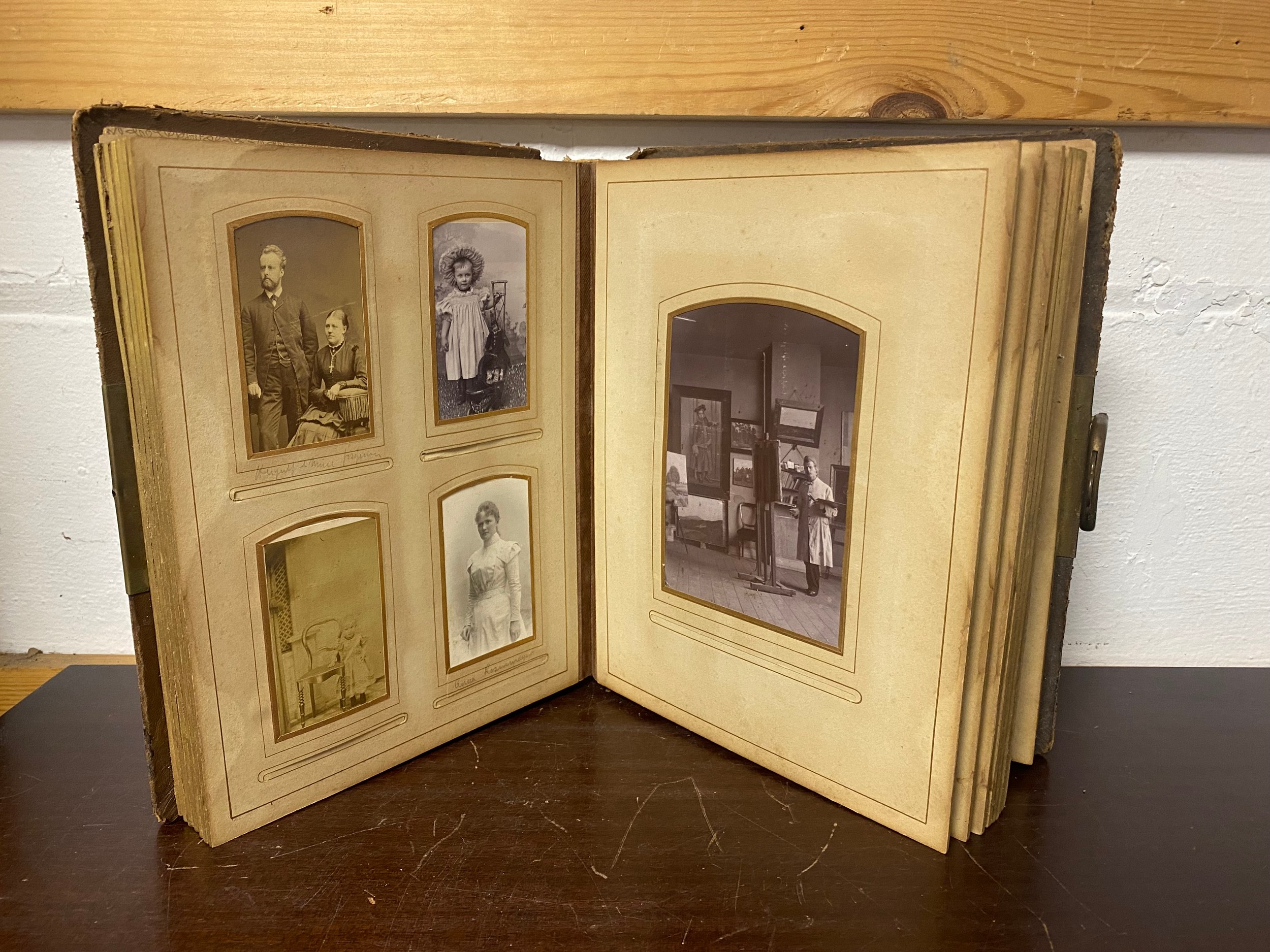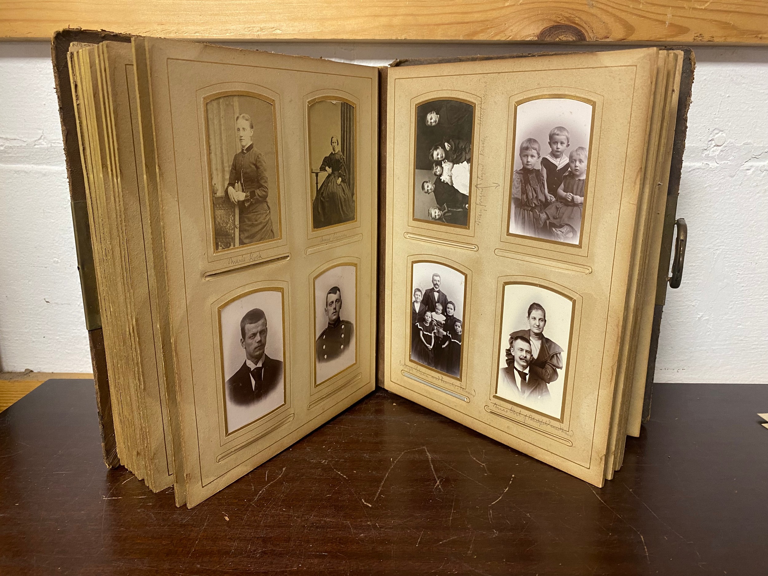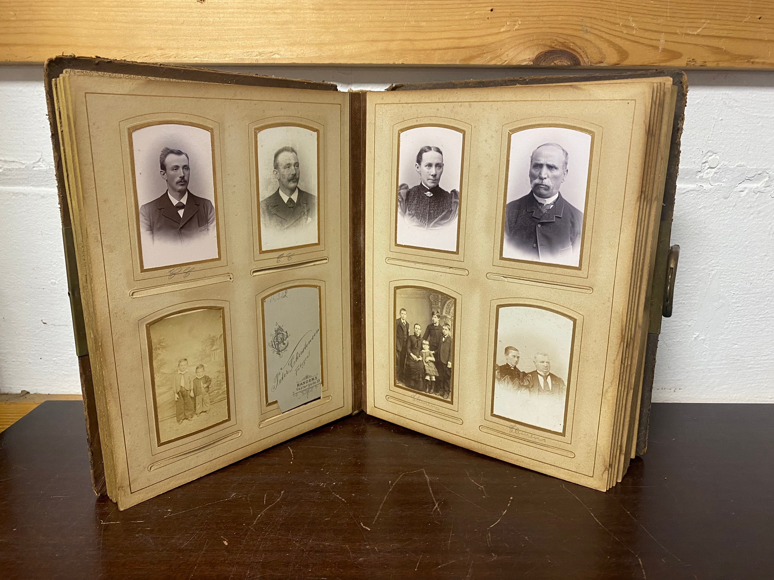 A Victorian photograph album, containing approximately 68 carte de visites and photographs, and some loose -
