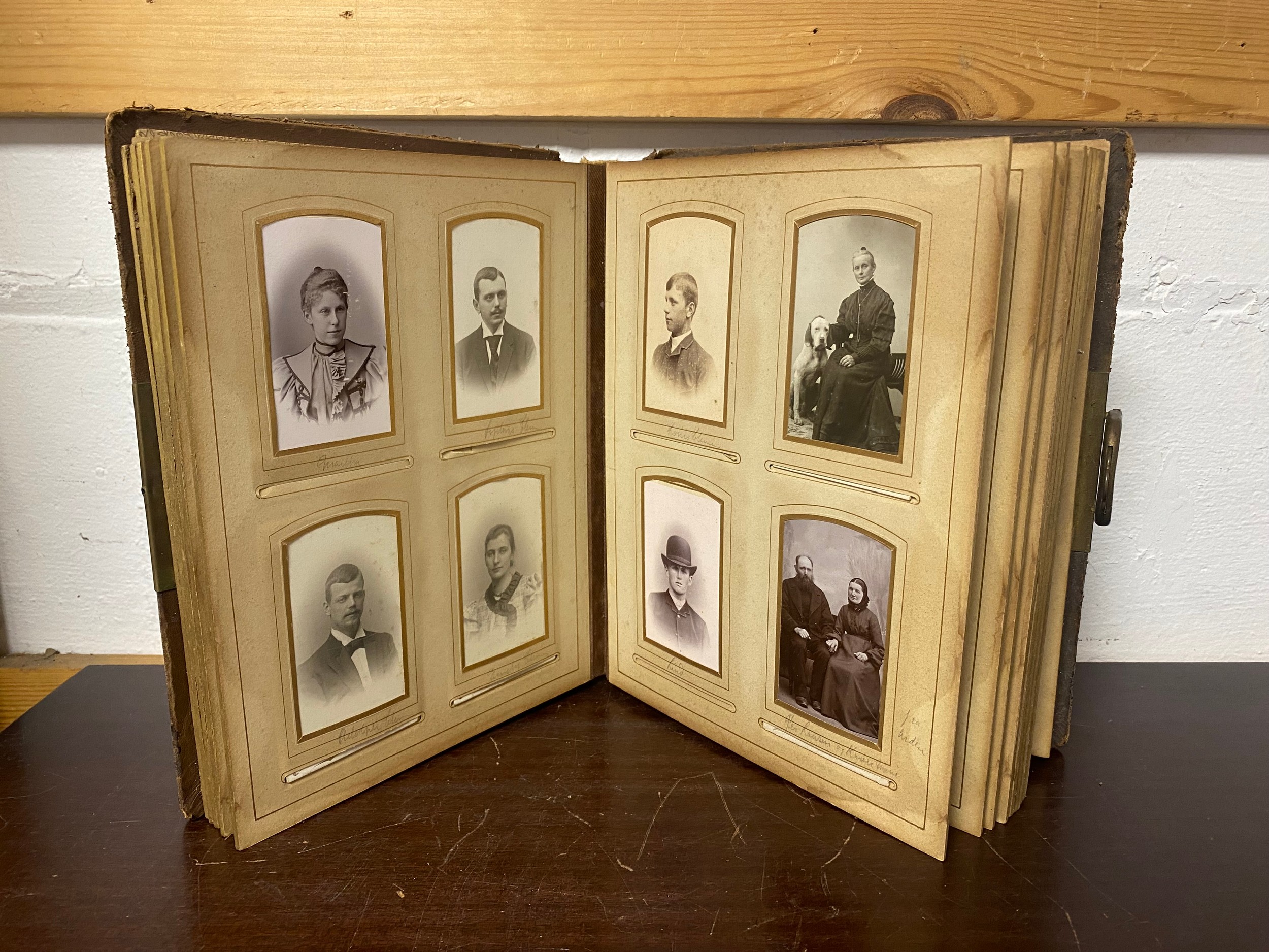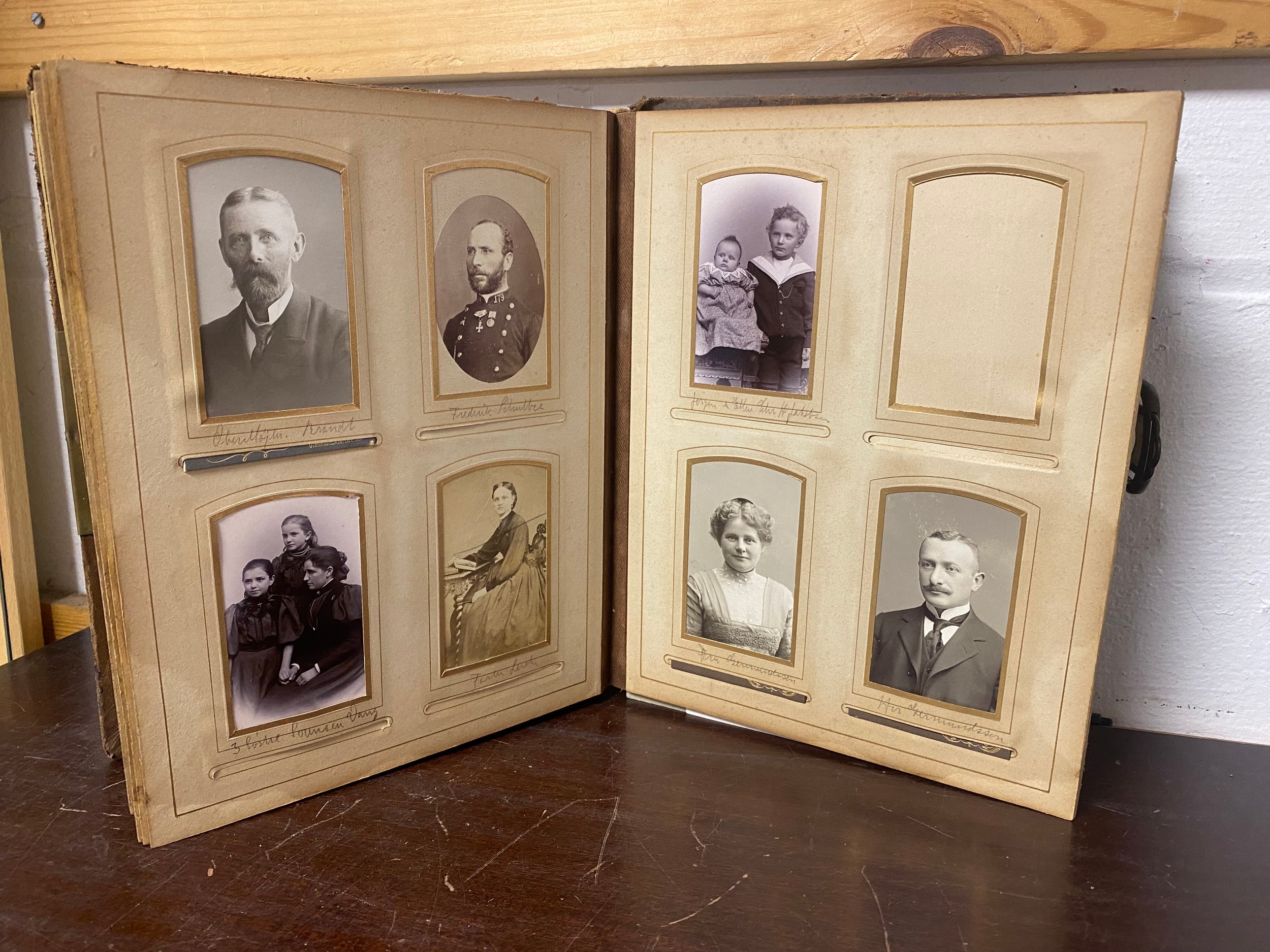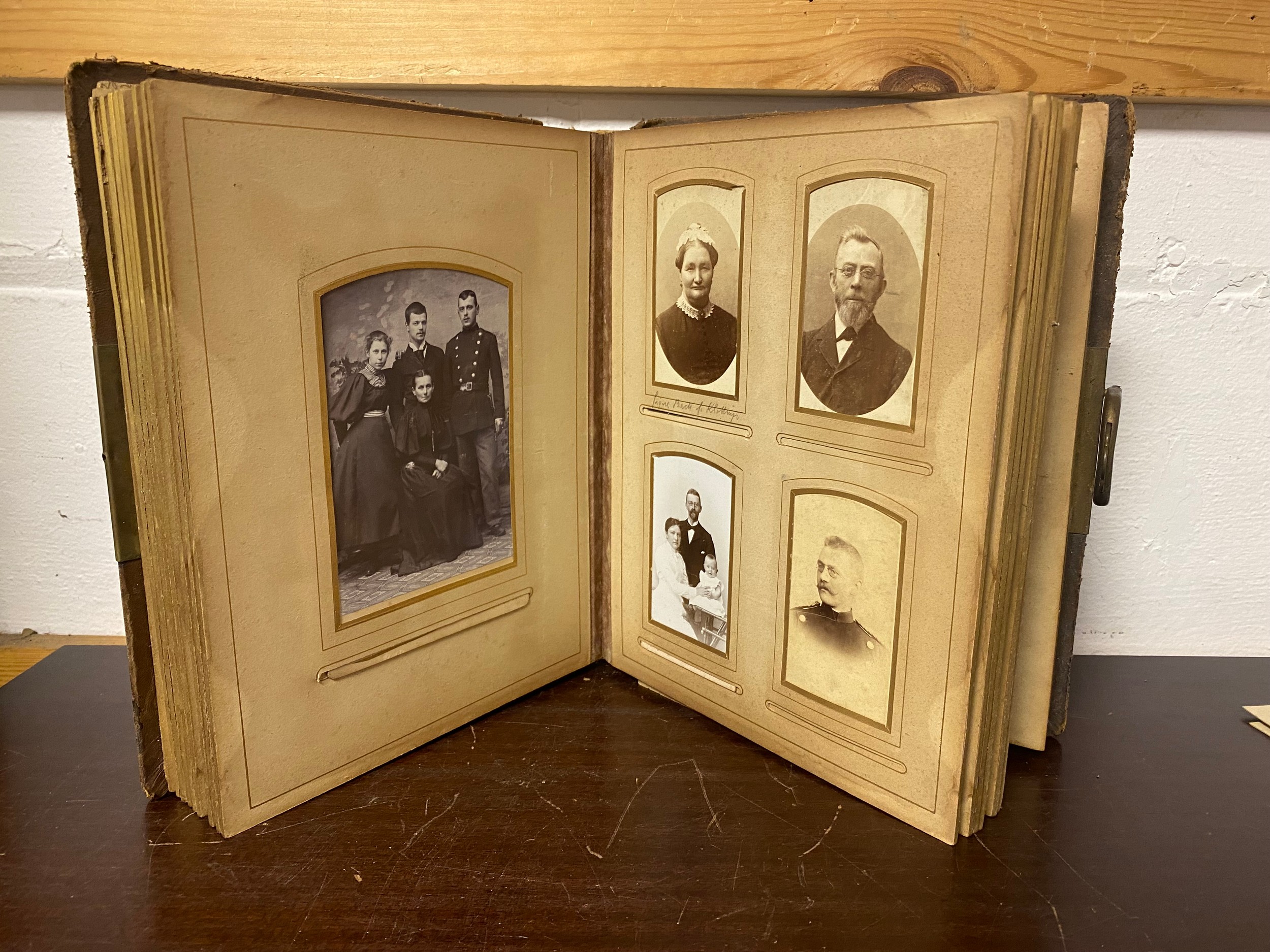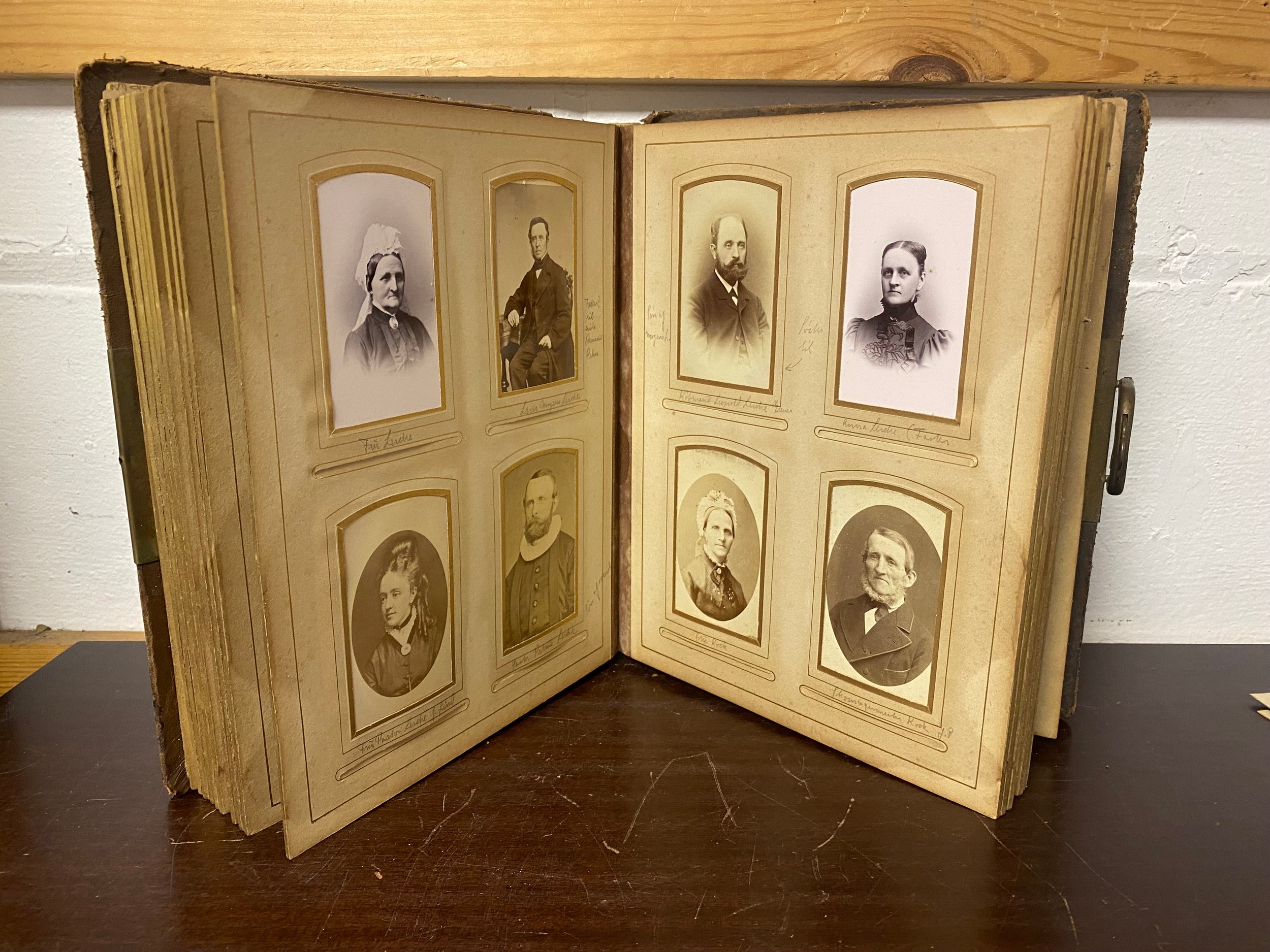 A Victorian photograph album, containing approximately 68 carte de visites and photographs, and some loose -