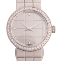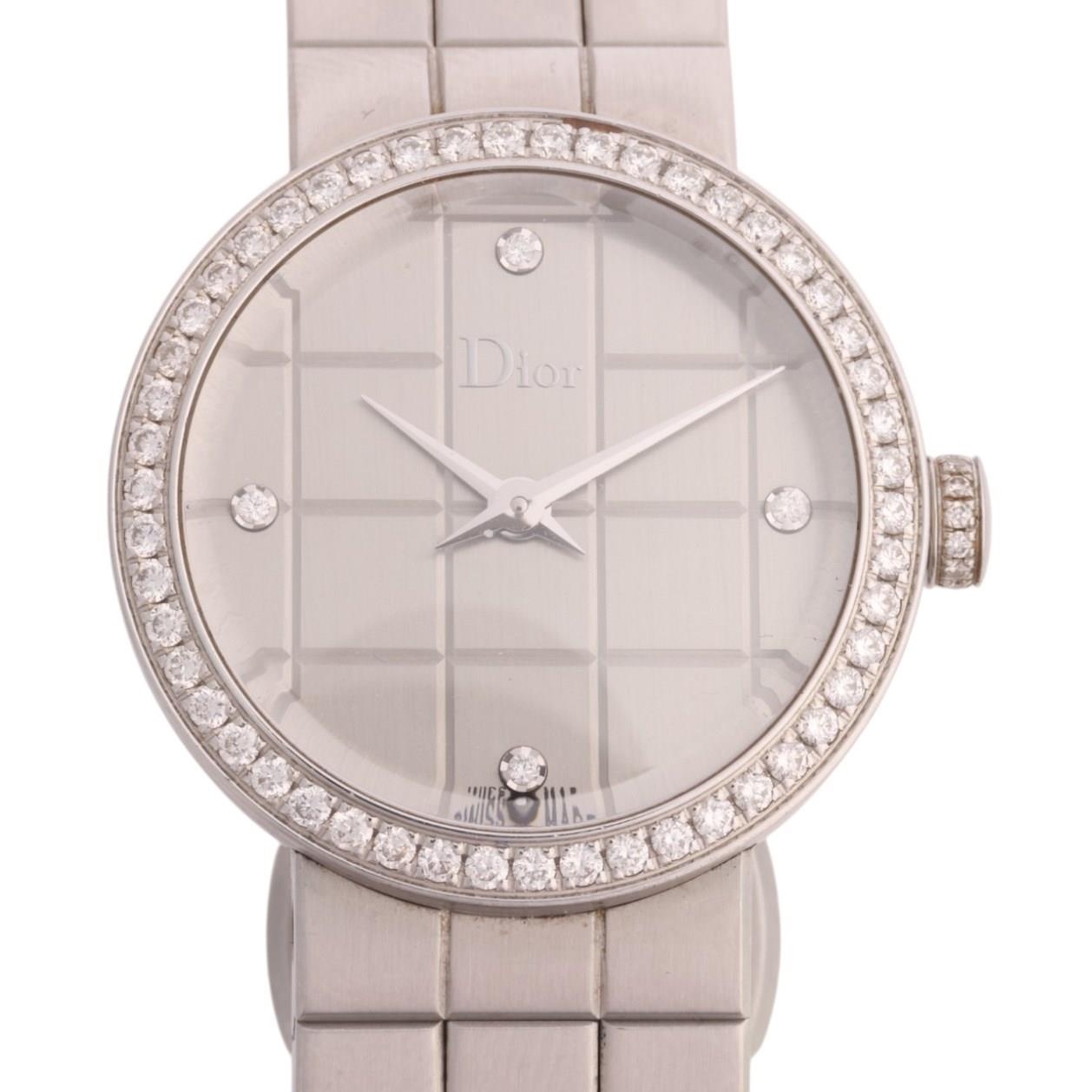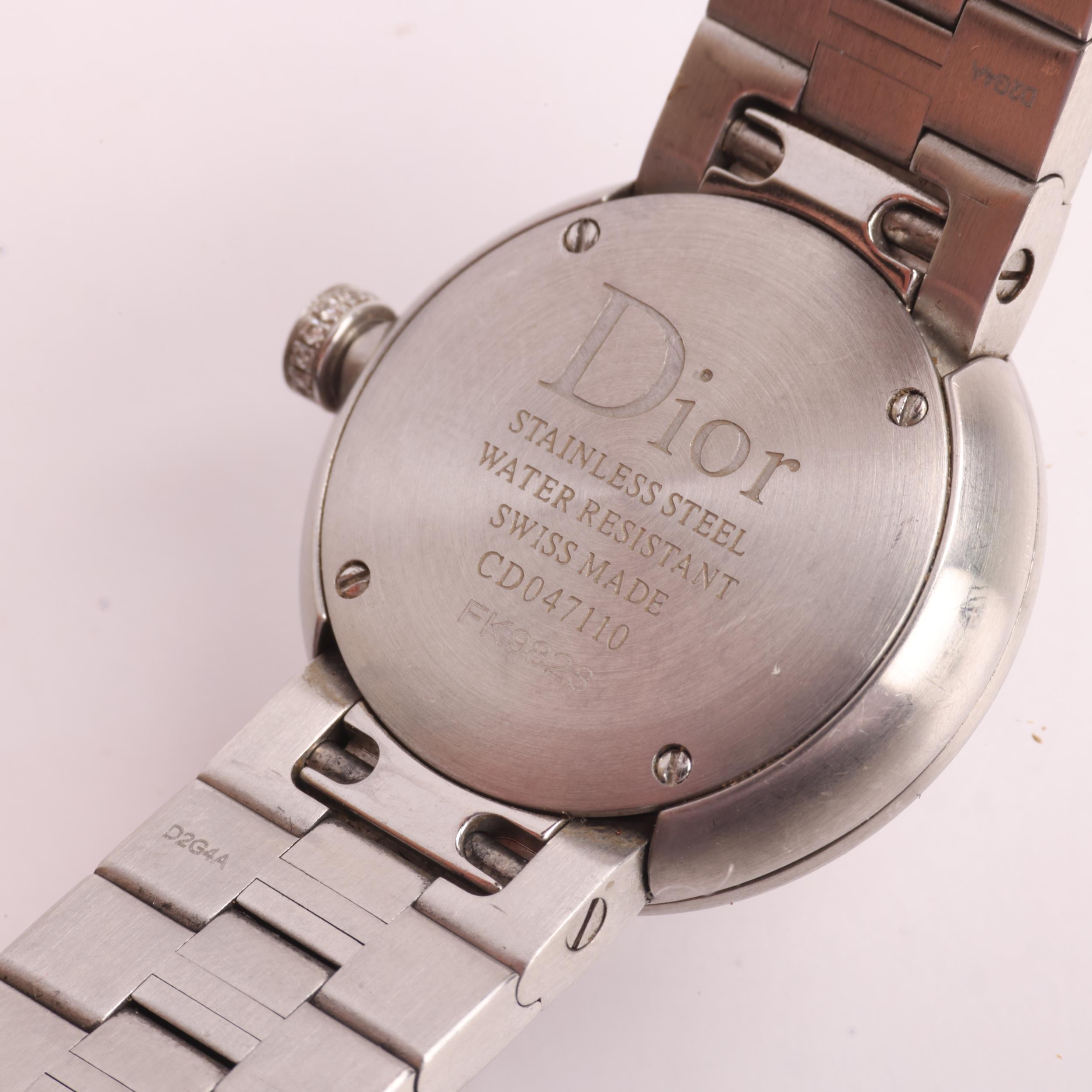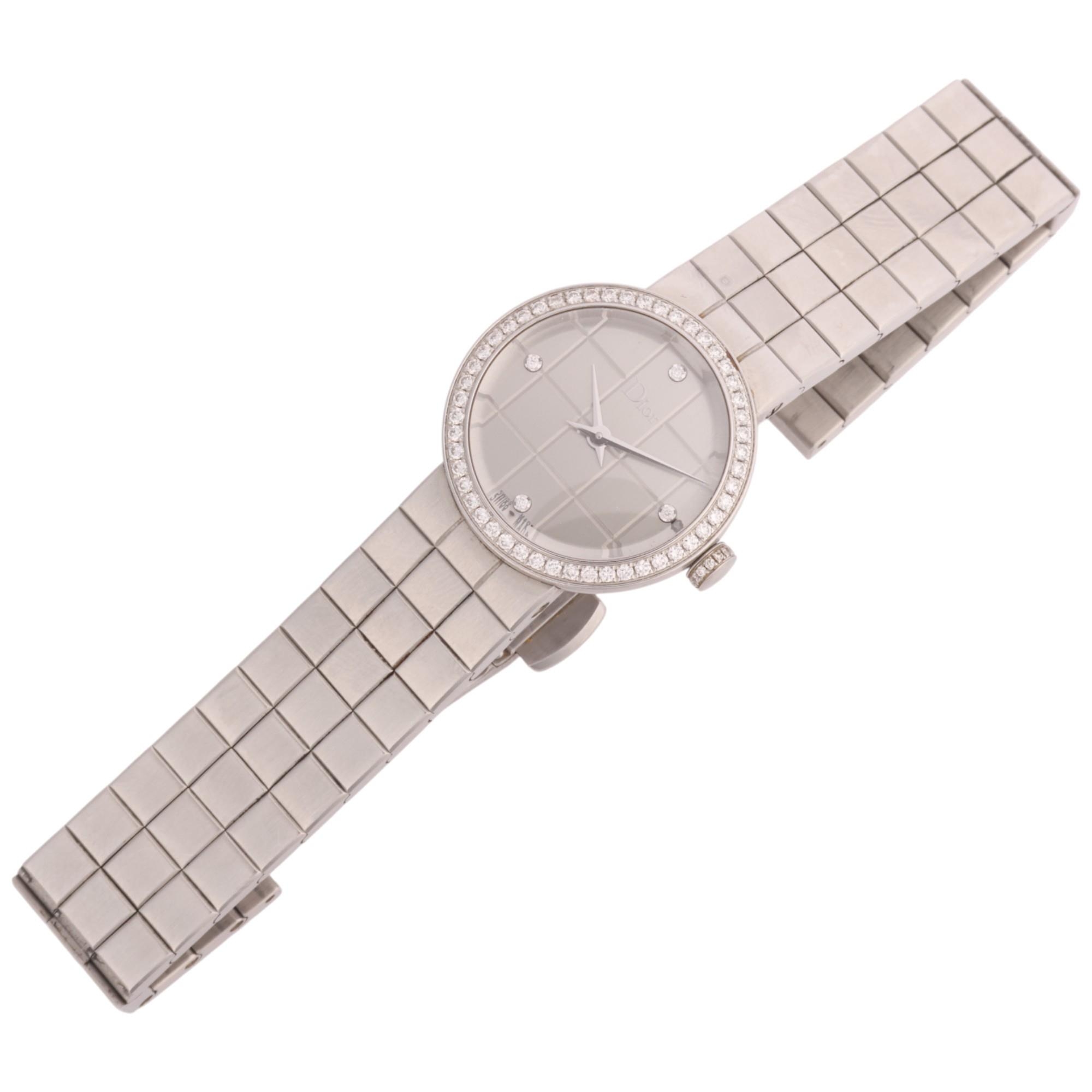 CHRISTIAN DIOR - a lady's stainless steel diamond La Dior quartz bracelet watch, ref. CD047110, circa 2012, silvered lattice dial with diamond hour markers, lance hands and diamond bezel, total diamond content approx 0.55ct, colour F-G, clarity VS, serial no. FK9828, case width 25mm, working order, with papers
