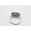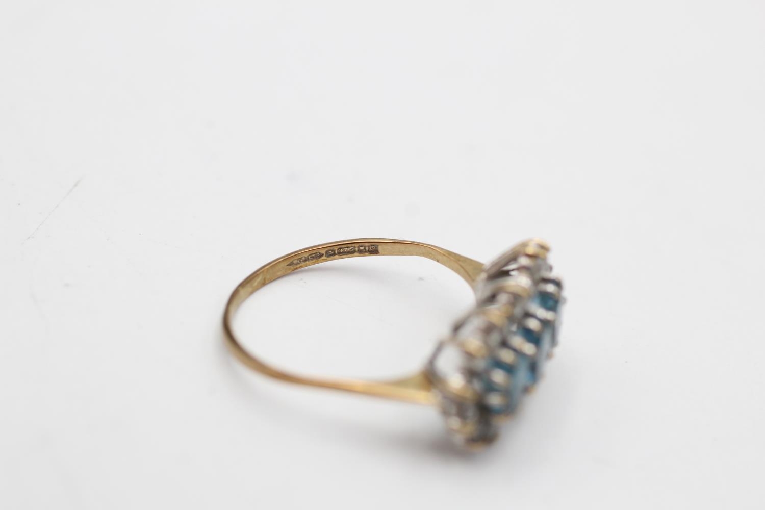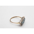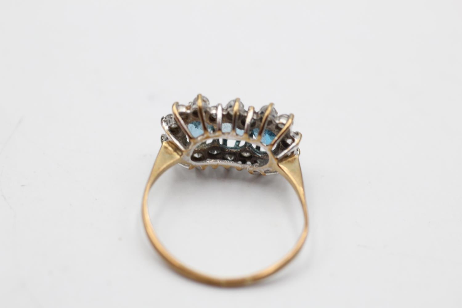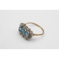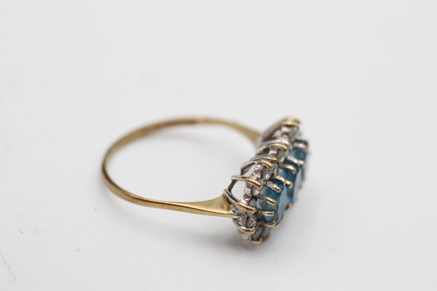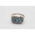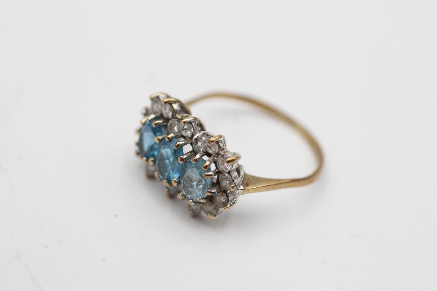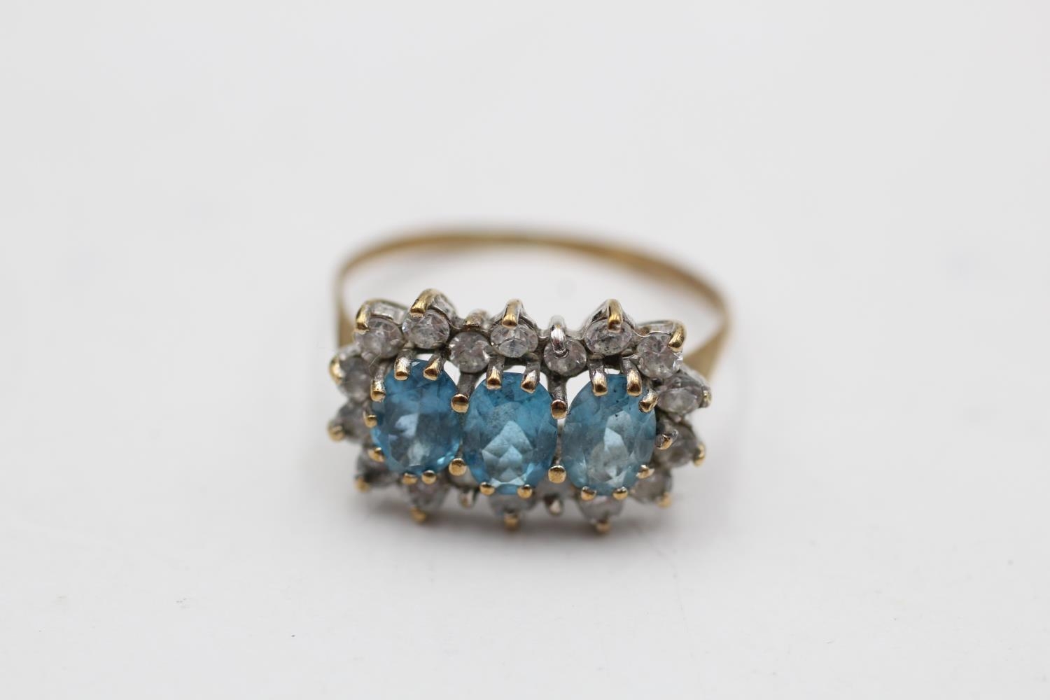 9ct gold vintage topaz & clear gemstone three stone halo dress ring (2.1g) Size O
