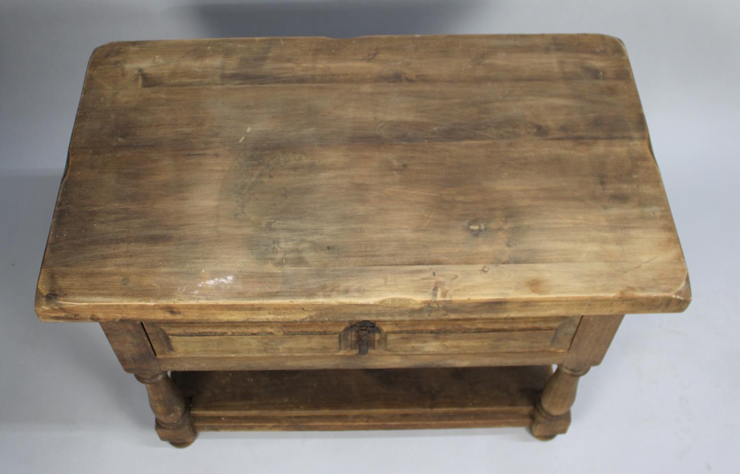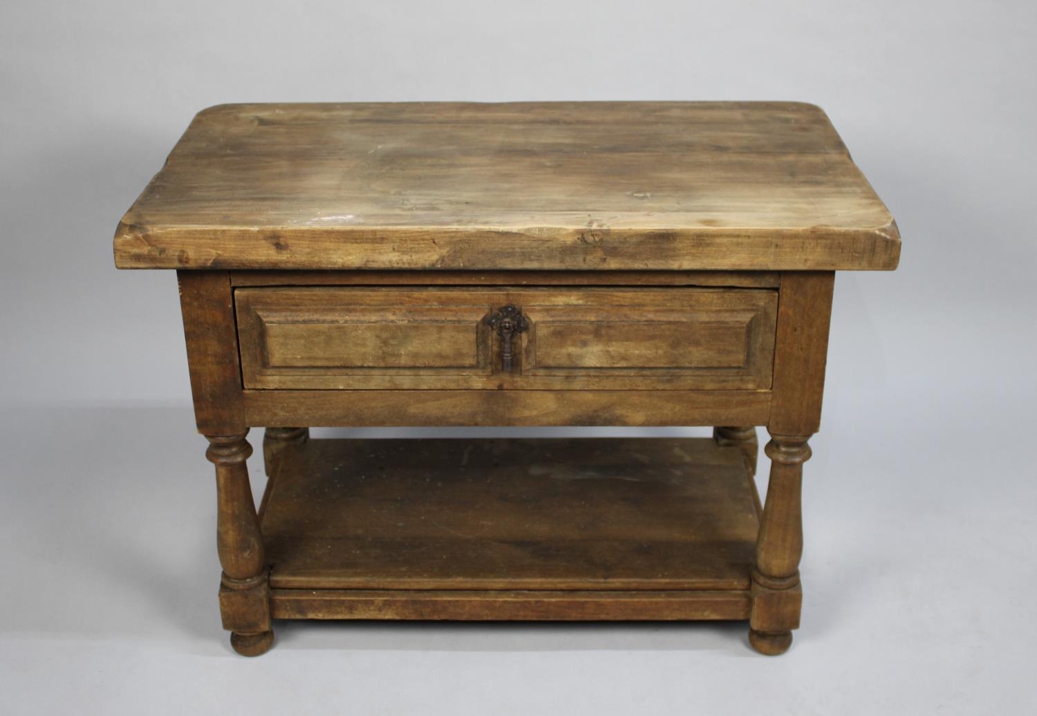 A Wooden Stand/Small Table with Single Drawer, Stretcher Shelf, Turned Supports, 78cms Wide
