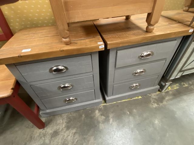 Pair of grey painted 3 drawer bedside chests (60H 52W 39D cm)