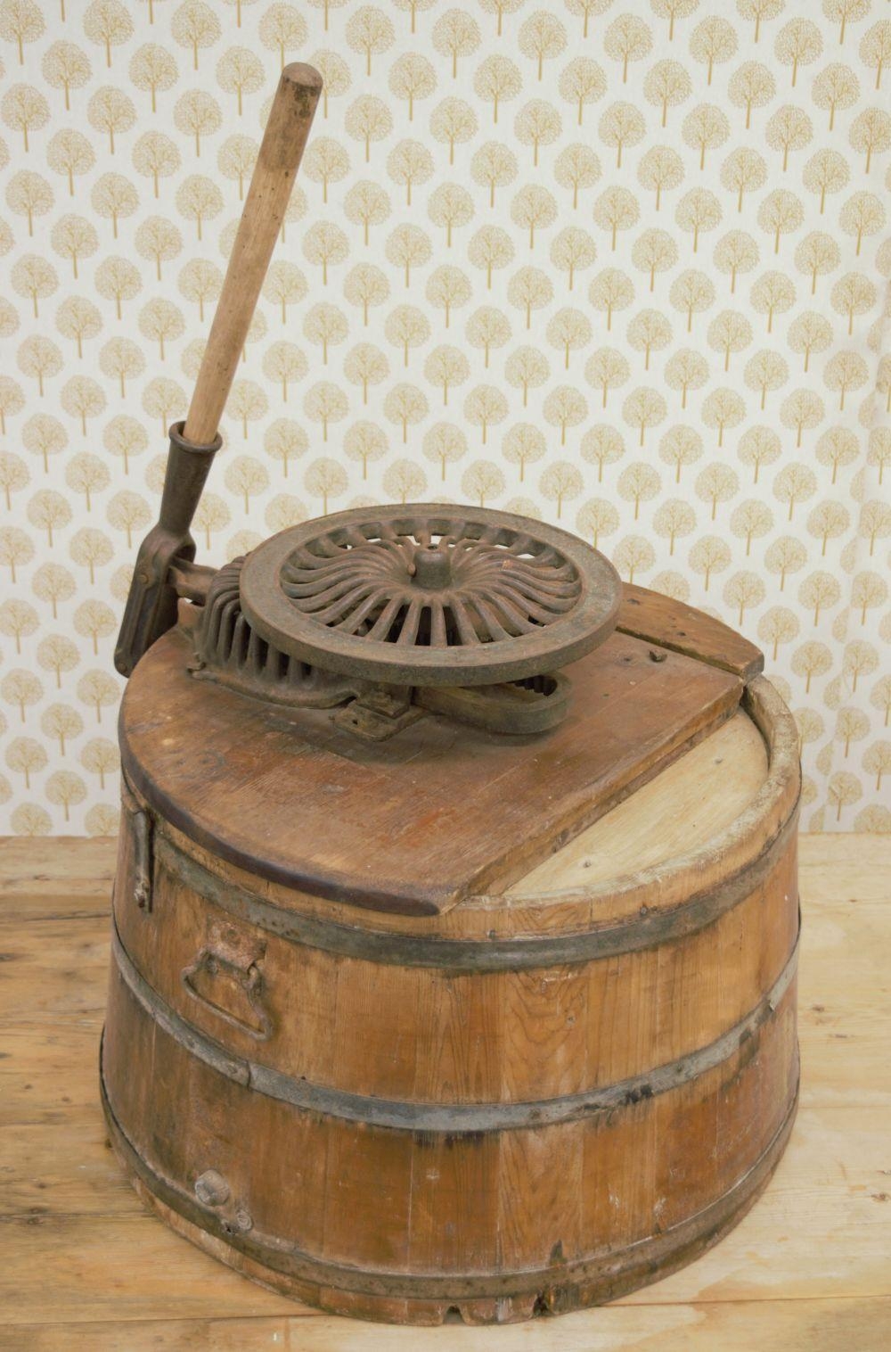 19TH-CENTURY BARREL CLOTHES WASHING MACHINE