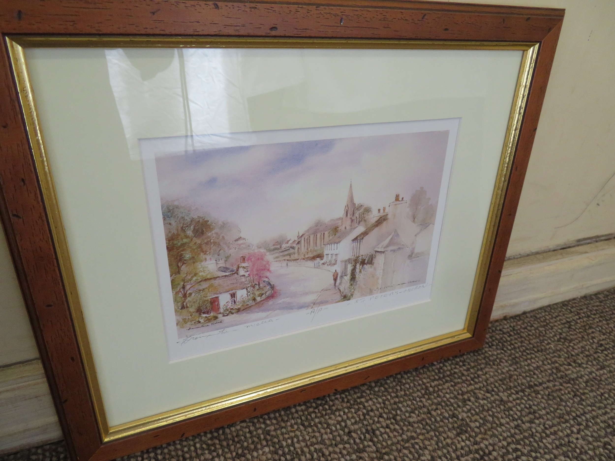 Two paintings and a signed print of Onchan village