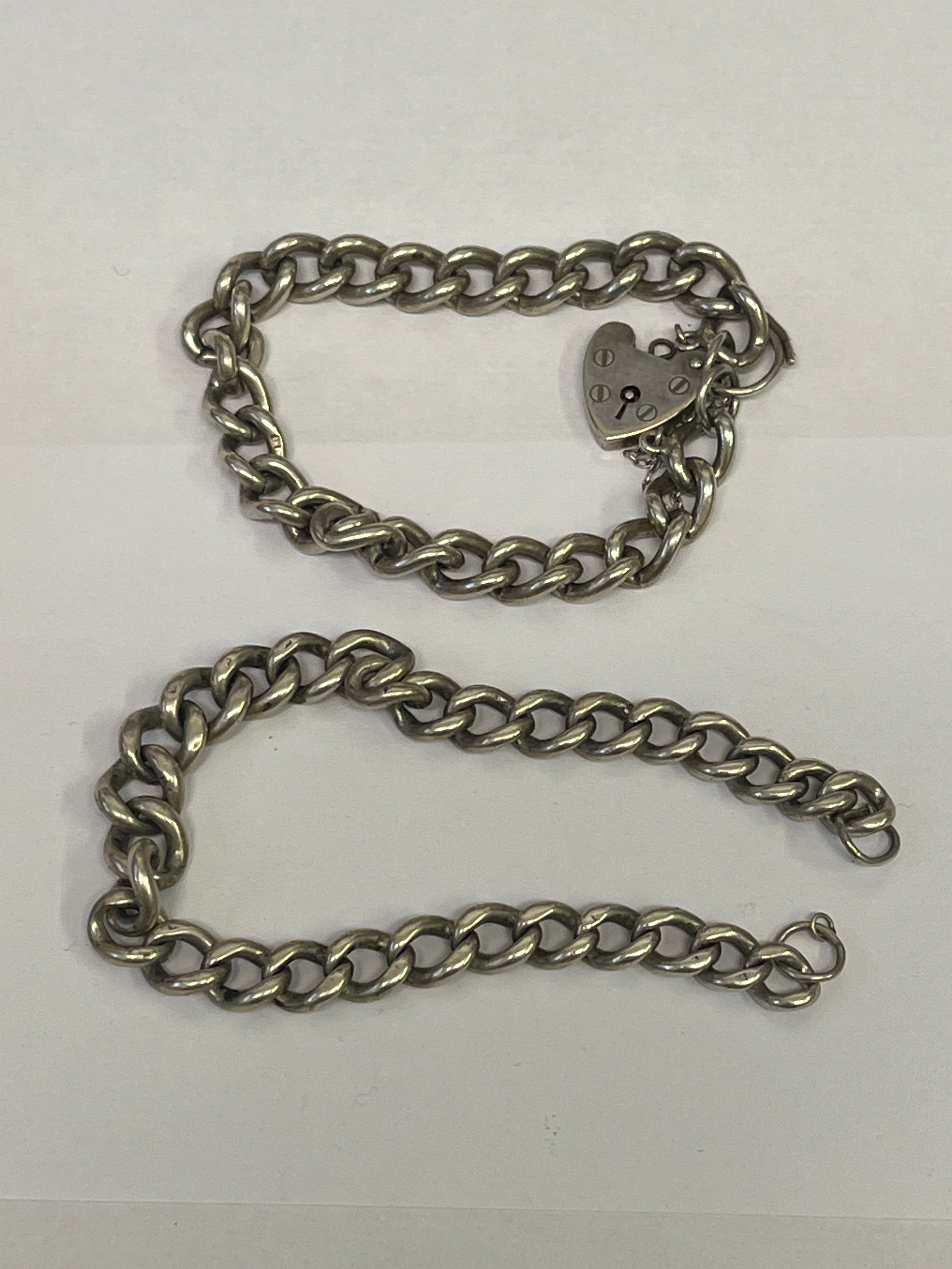 TWO HEAVY SOLID SILVER CHAIN BRACELETS WITH PADLOCK WEIGHT 54GR