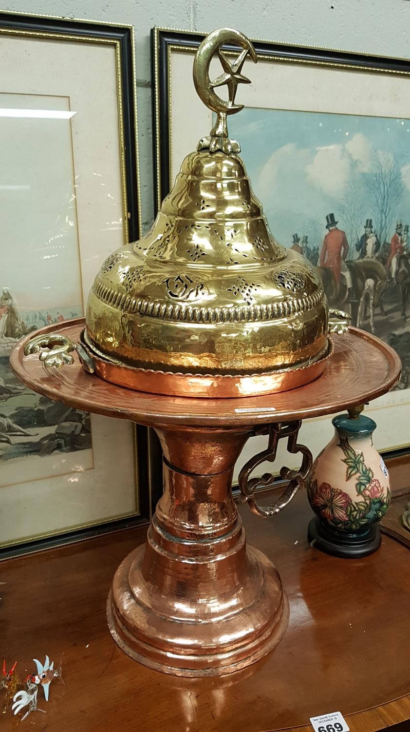 A very large 19th Century Brass and Copper Urn, with script to outer rim dating it to 1818, 76cms (13ins) high.