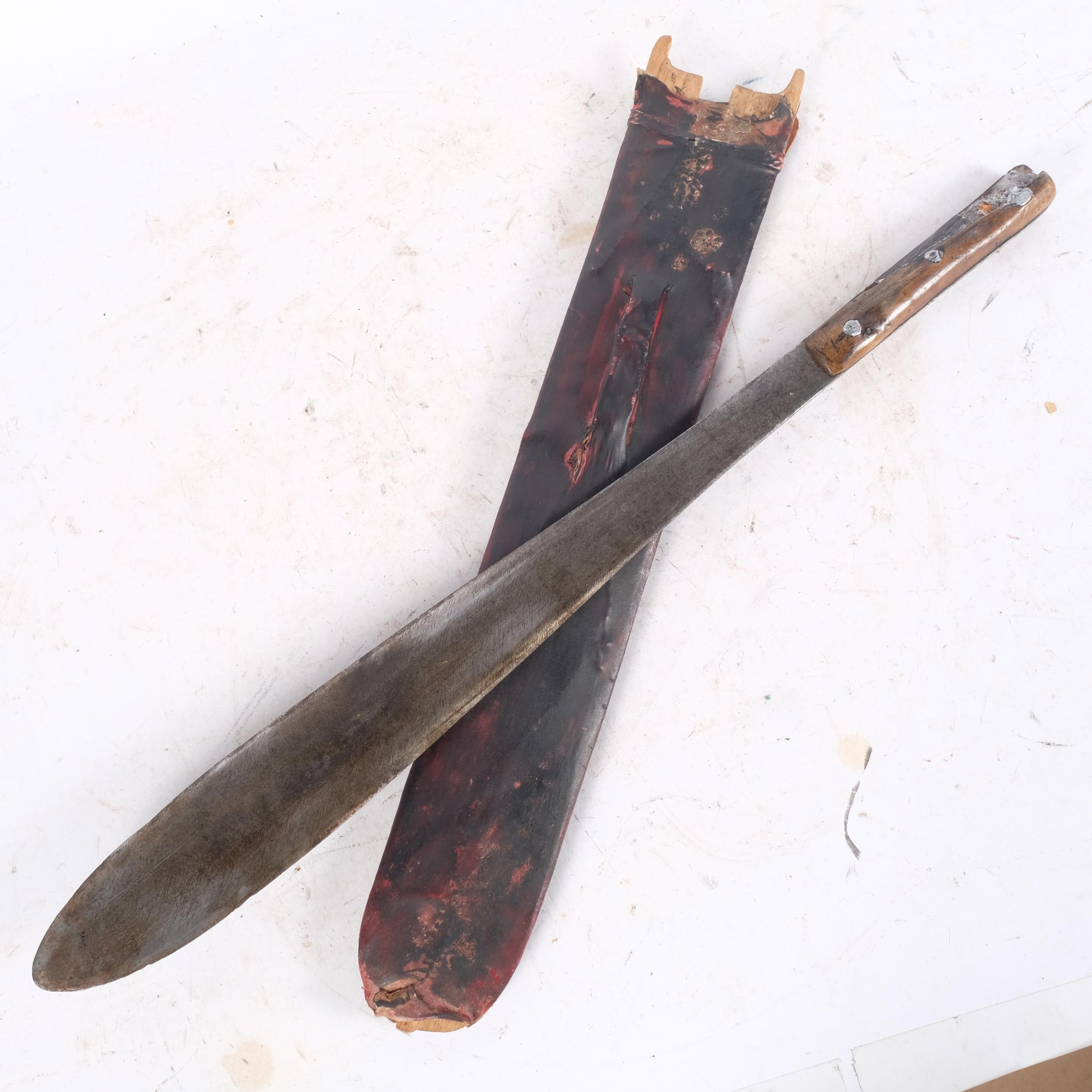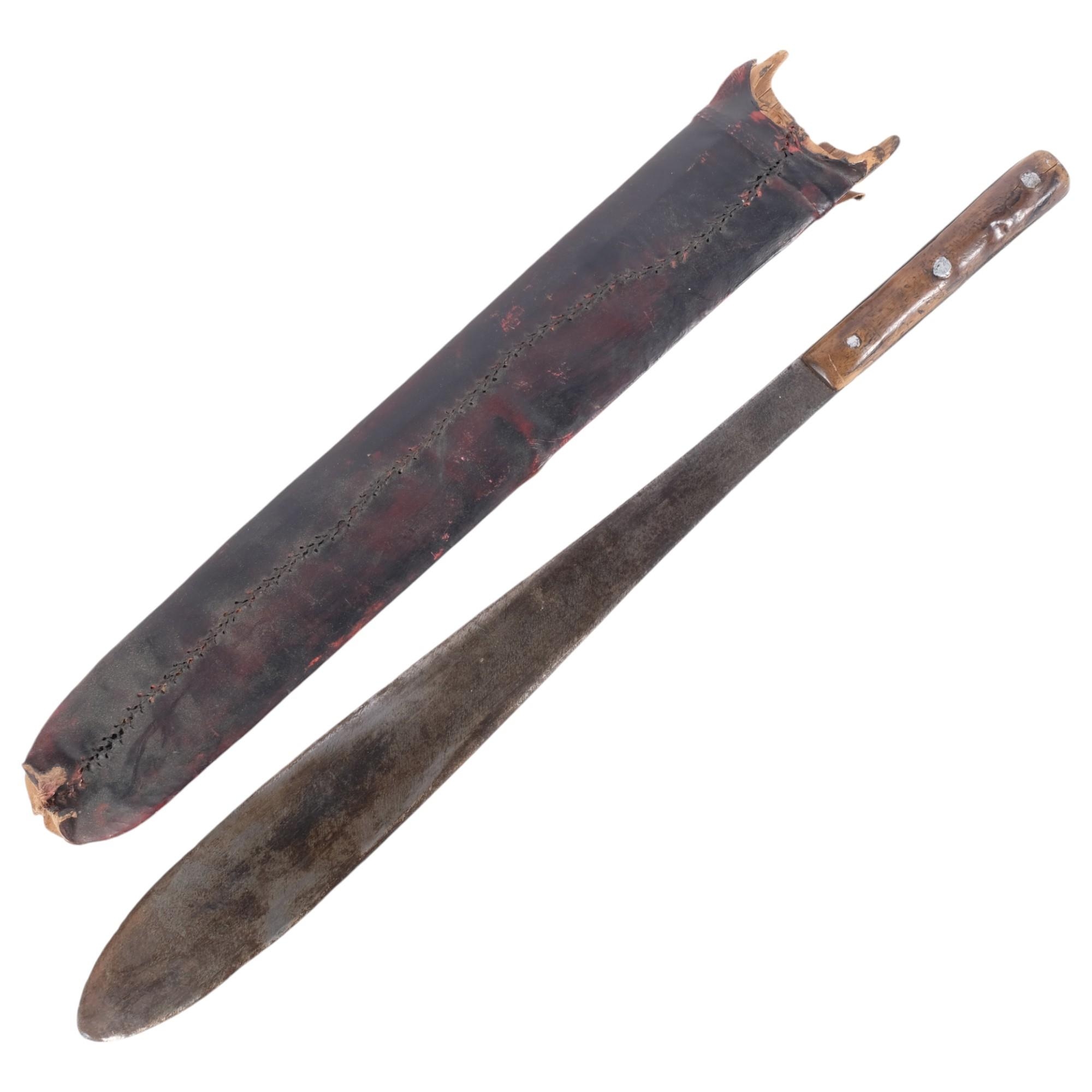 A 19th century machete with wooden handle, 55cm, with sheath