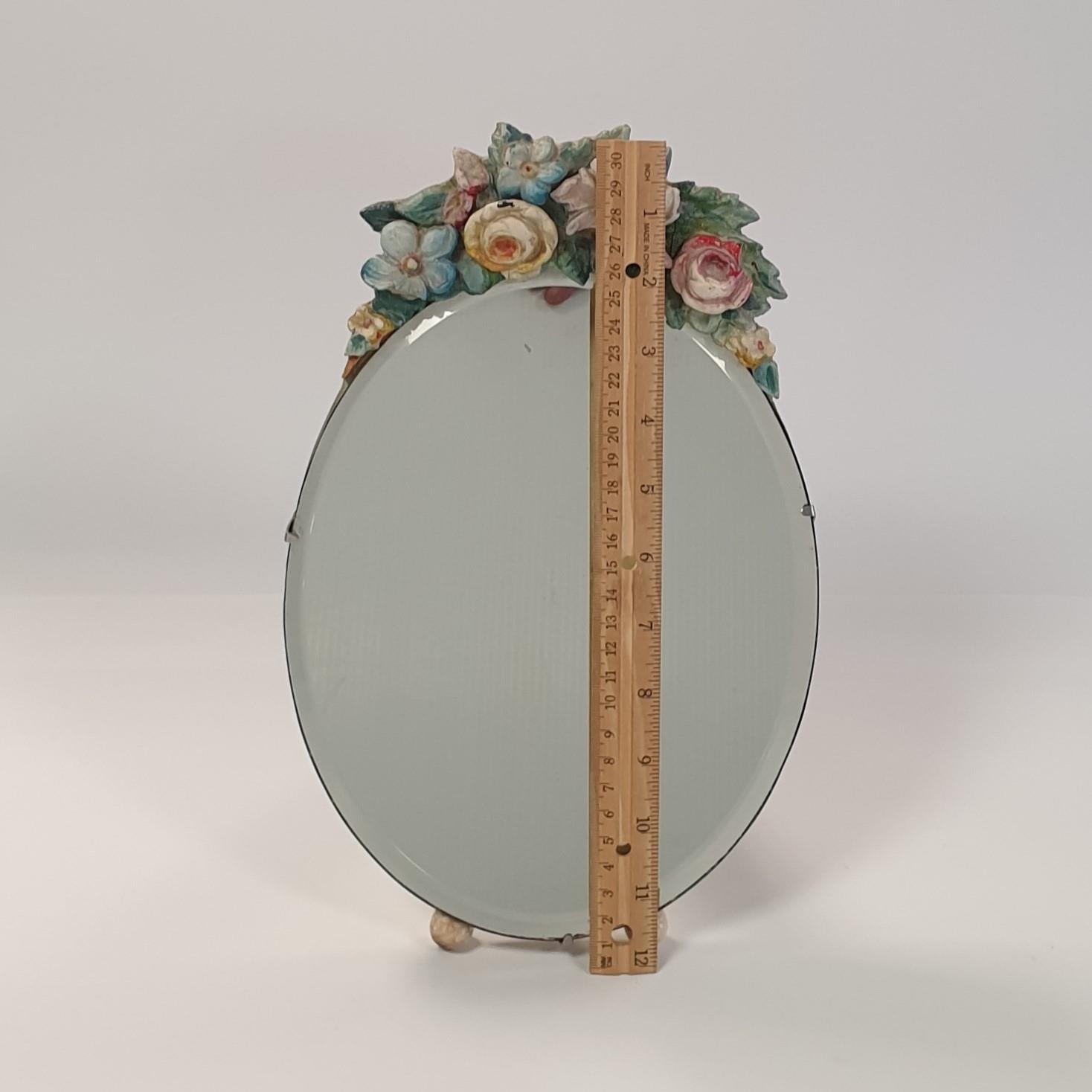 Oval Dressing Table Mirror with Floral Detail H:32 x W:20cm