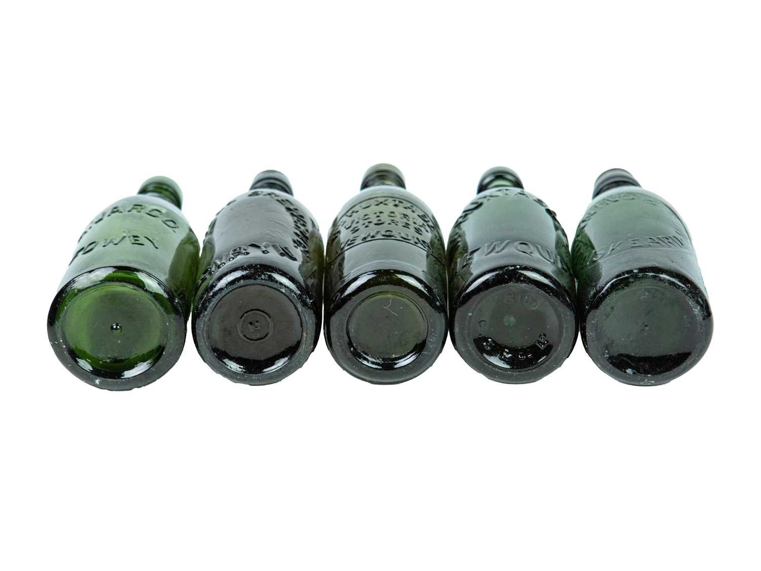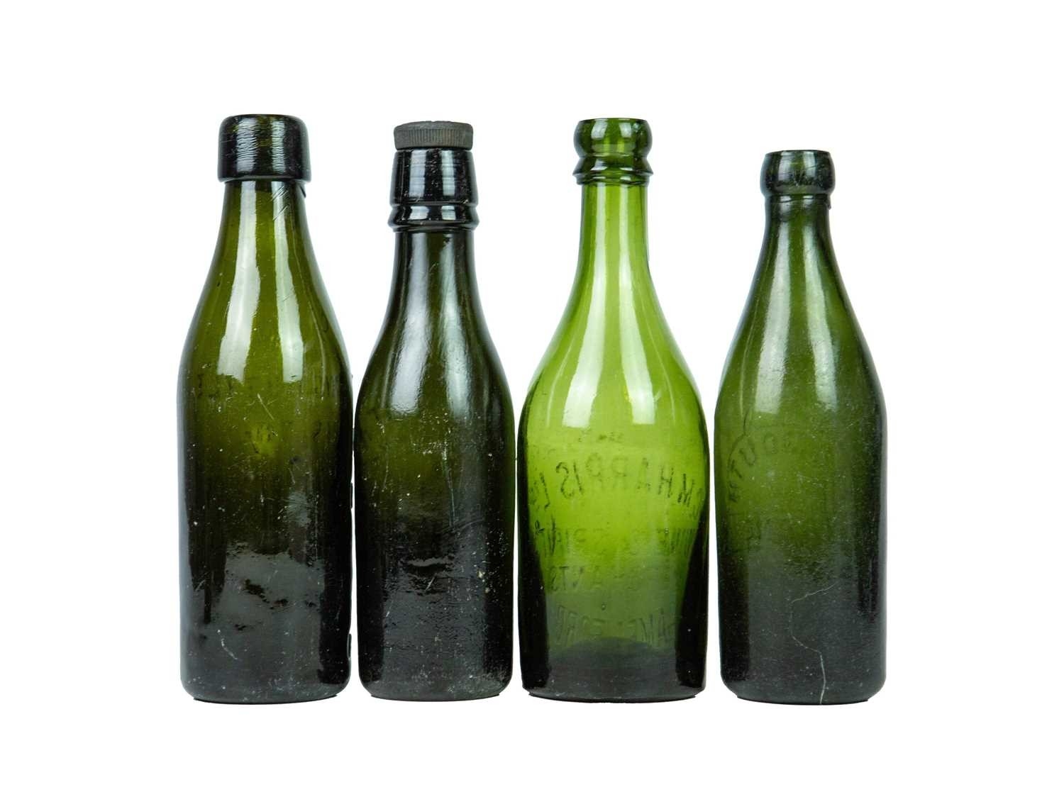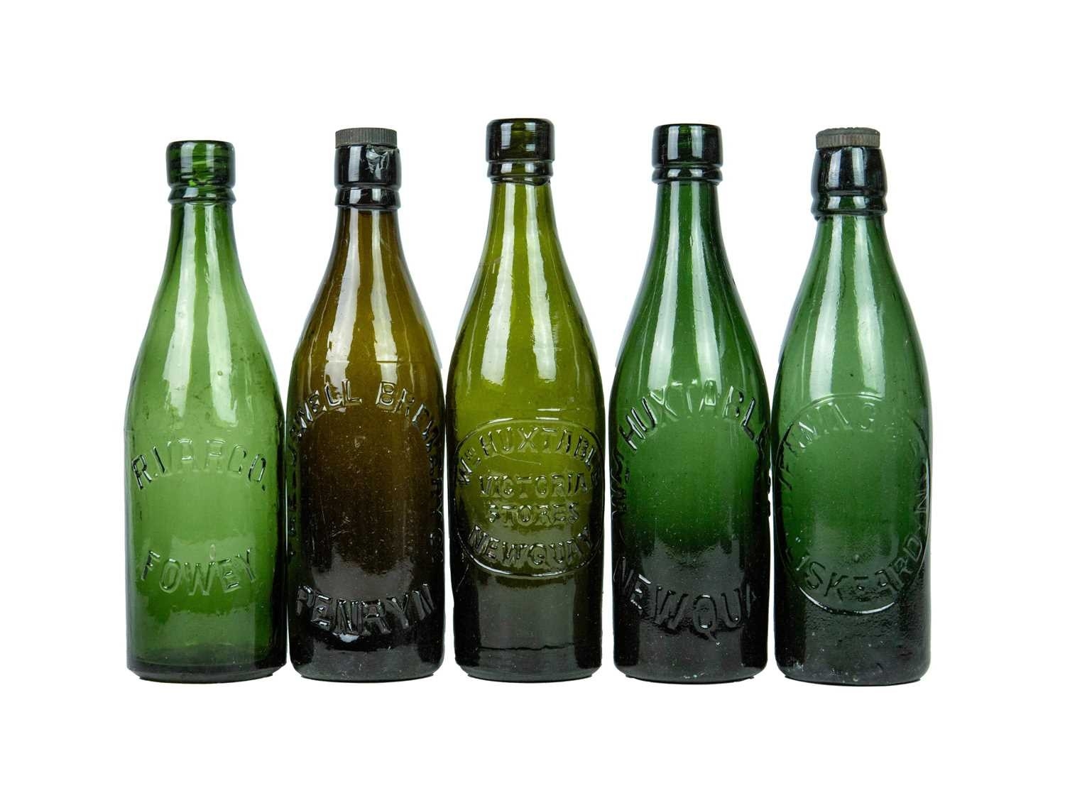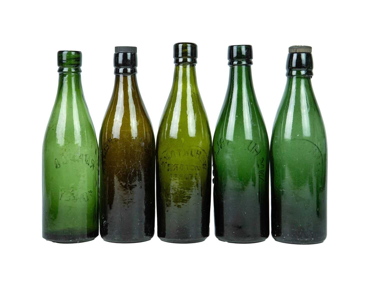 A collection of local interest (Cornish) green glass bottles. Comprising a 'Redruth Brewery Co. Ltd' bottle, a 'Treluswell Brewery Co. Penryn' bottle, plus another bearing the moulded inscription 'This bottle is the property of Treluswell Brewery Co. Penryn Cornwall', a 'W. Hicks Nankivell & Co' bottle, 'D Venning & Son Liskeard' and 'R. Varco Fowey' examples, together with two 'Wm Huxtable Ltd Newquay', two 'C.M. Harris Ld...Camelford' and three 'Carne Falmouth & Truro' bottles (13).