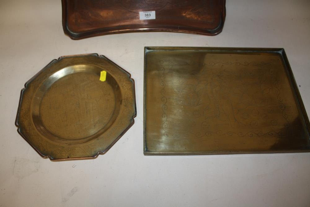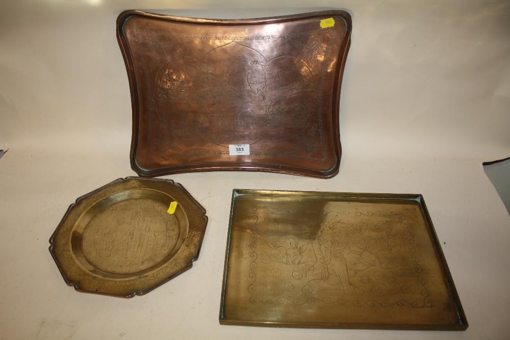 THREE ORIENTAL COPPER AND BRASS TRAYS