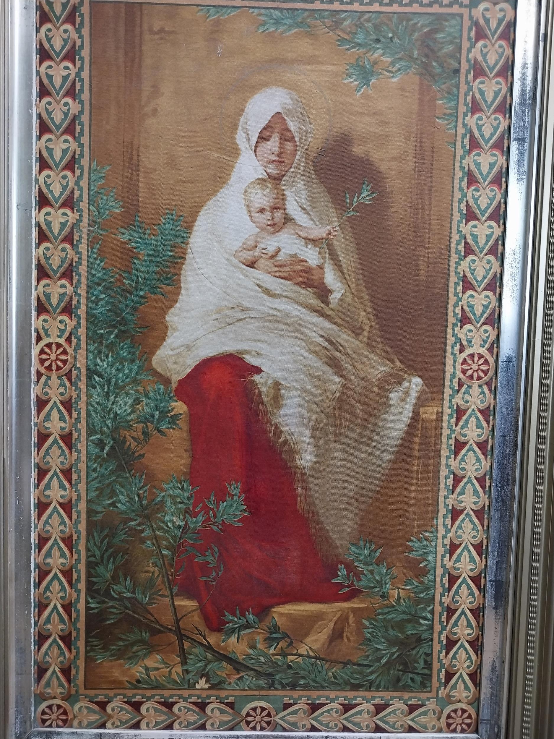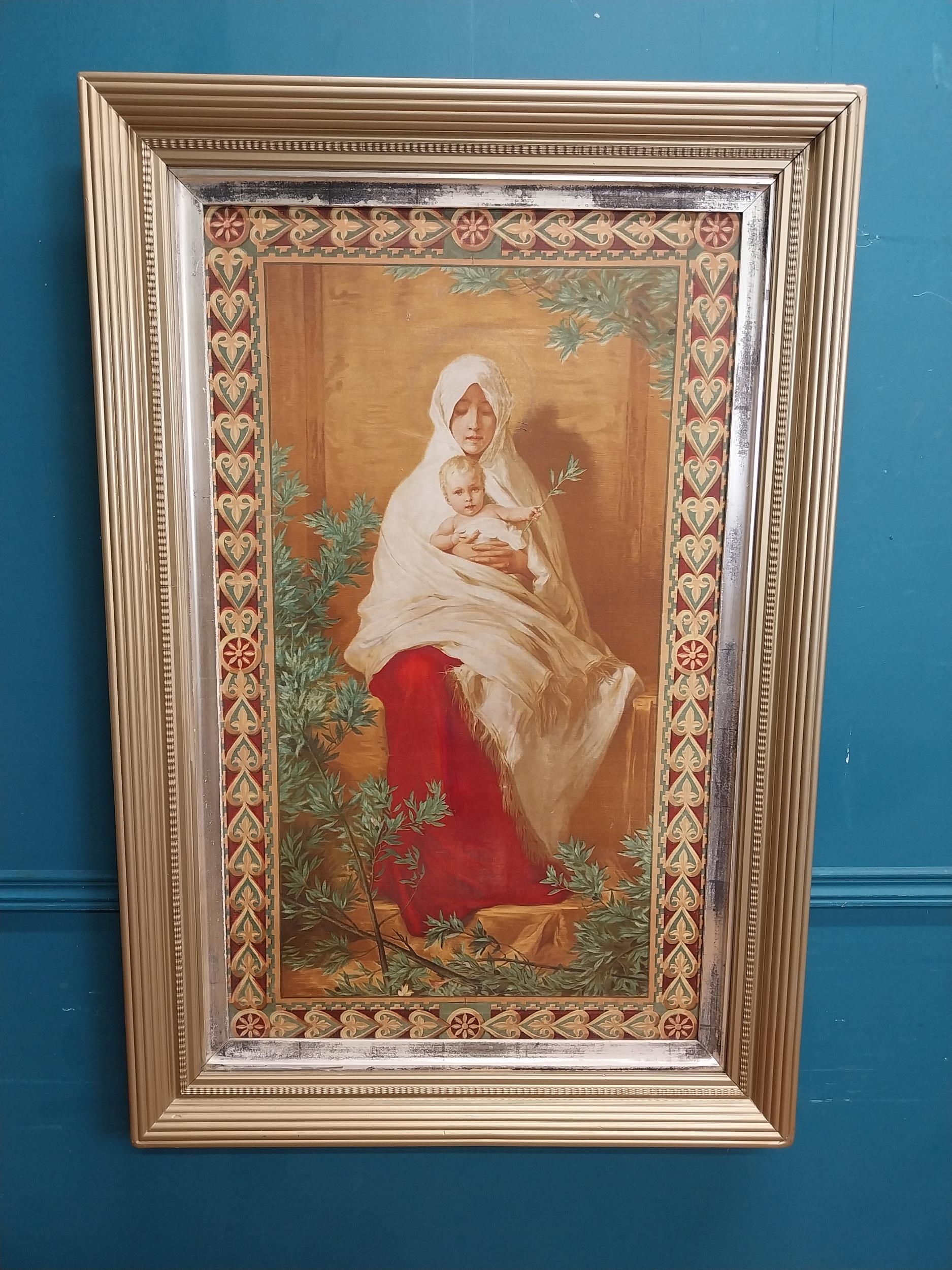 Mother and Child Oil on Canvas, mounted in a gilt frame. { 115cm H X 77cm W }.