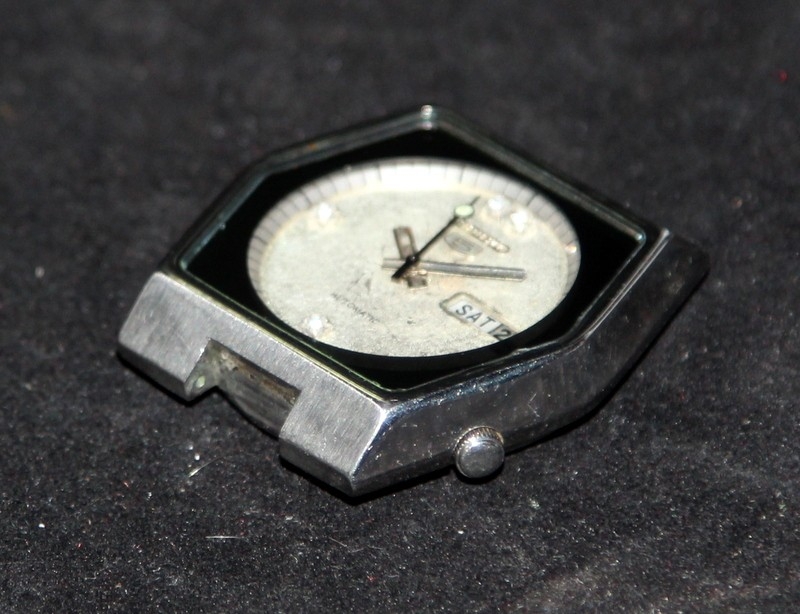 Vintage Seiko 5 gents automatic watch ref:6309-6070. Serial number dates this watch to August 1981. Unusual hexagonal case and diamond dial. Watch head only, no bracelet. Working at time of listing