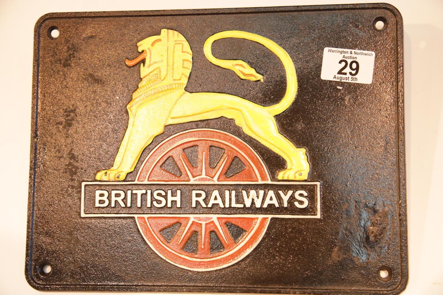 Cast iron British Railways sign, 29 x 22 cm. P&P Group 2 (£18+VAT for the first lot and £2+VAT for subsequent lots)