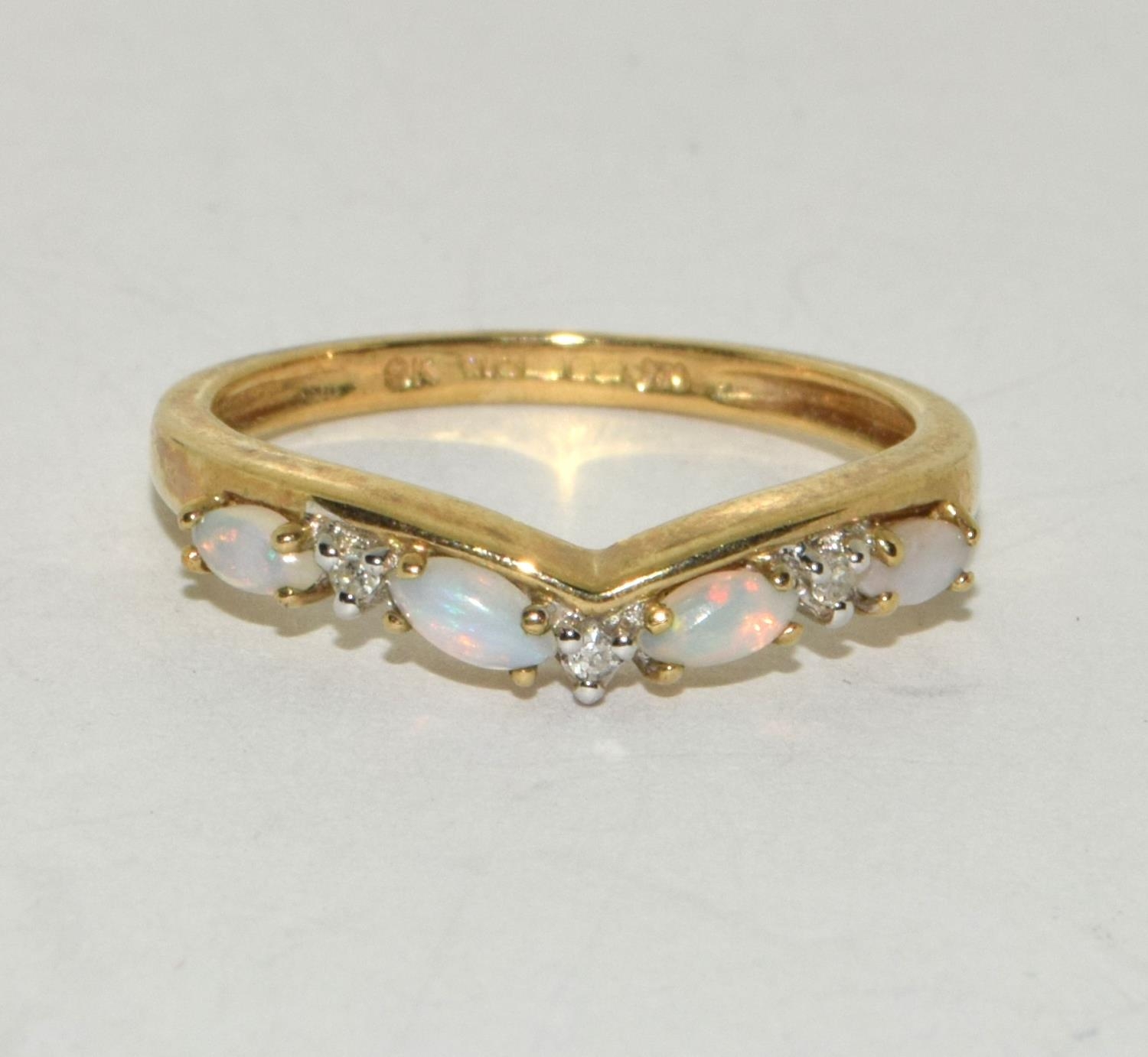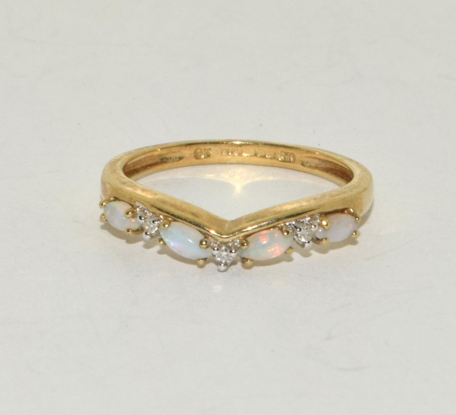 Opal/Diamond 9ct Gold Ring Size M