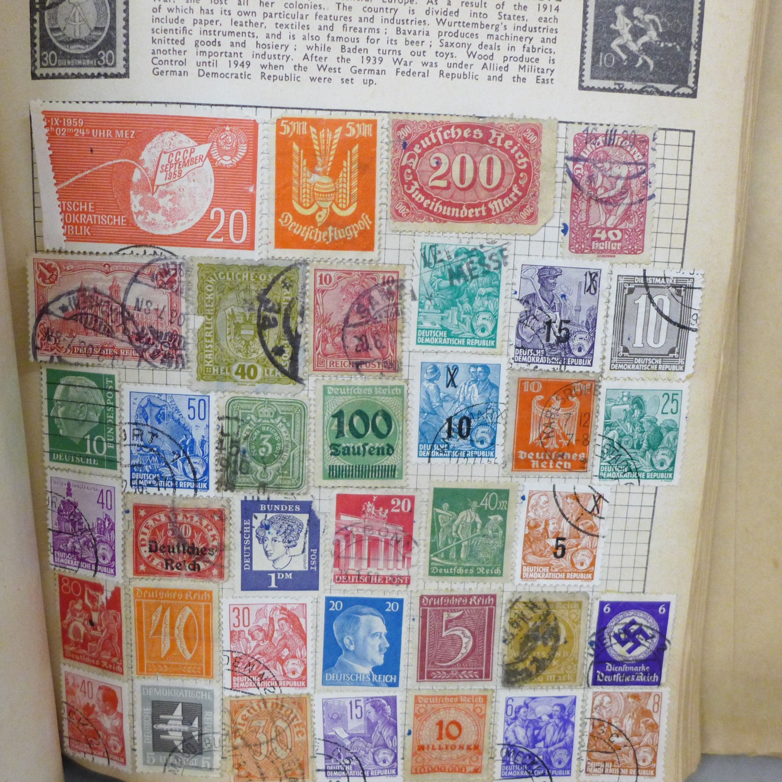 Stamps; a collection of stamps in an album and loose, 20th c...