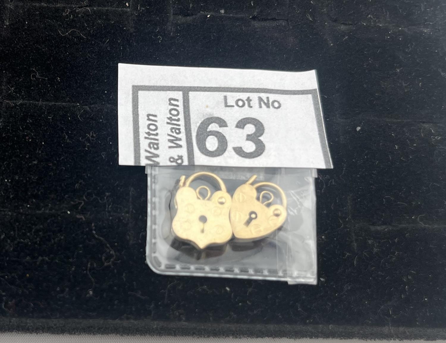 9ct Gold padlock clasps, 1.7g - Only 10% buyer's premium