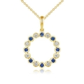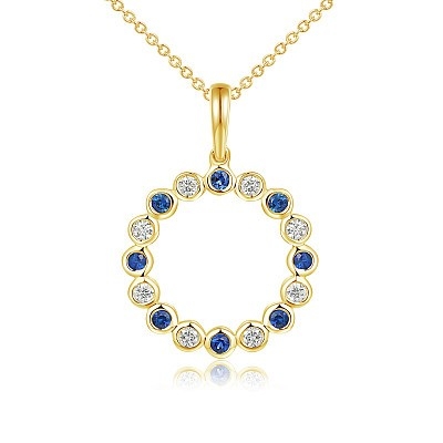 An 18K Yellow Gold, Diamond and Sapphire Circle Pendant on an 18K Gold Chain. 0.21ctw gemstones. 2.86g total weight. Ref: P1466.