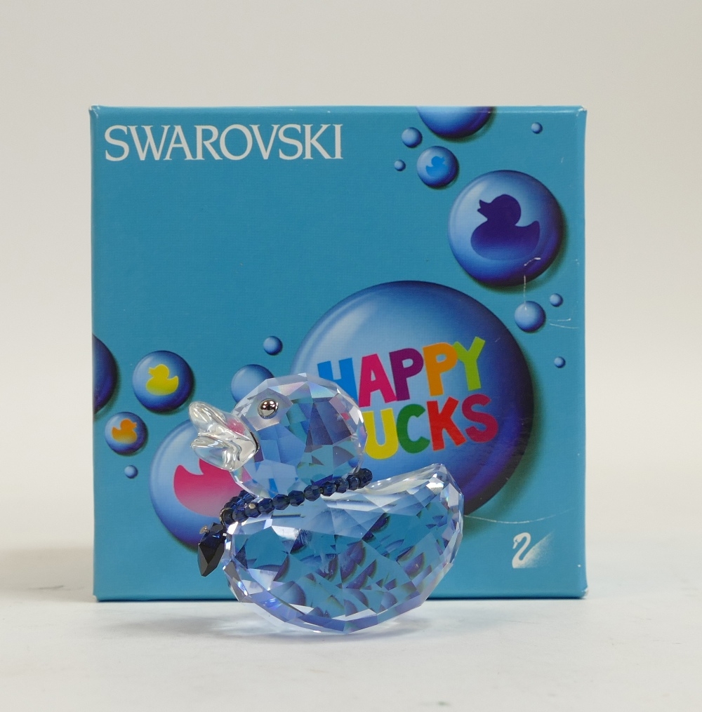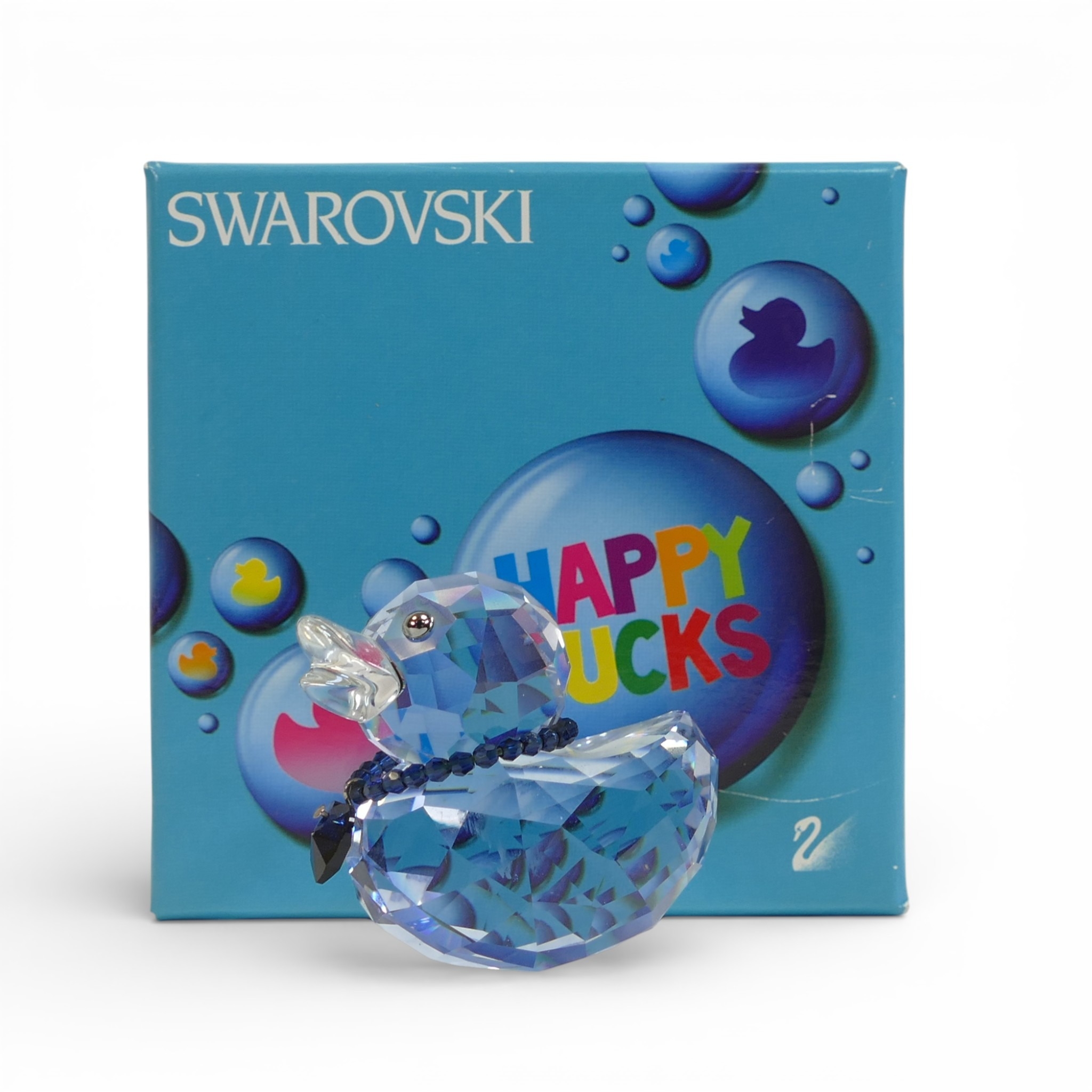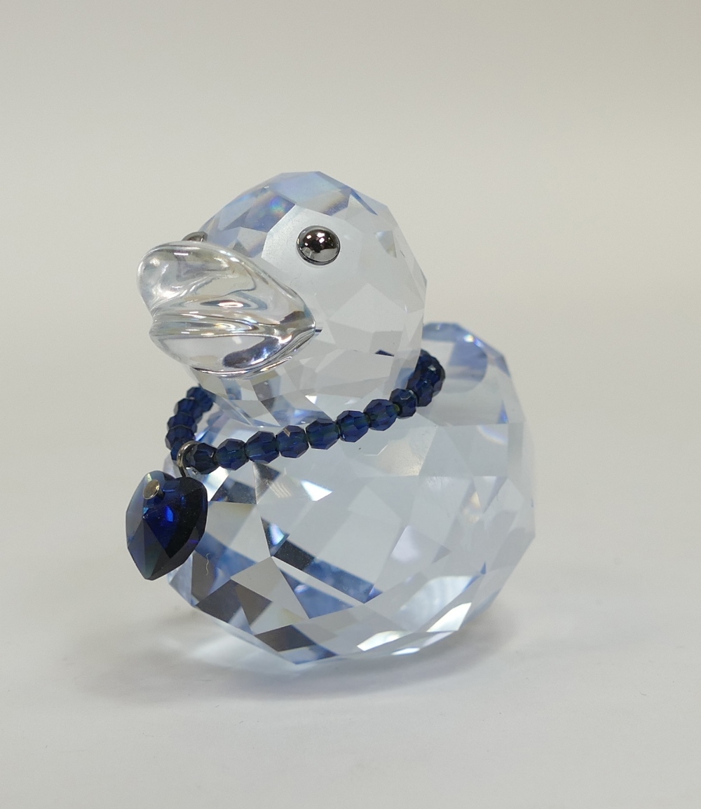 Swarovski Crystal Jolly Jay (1041294) Part of the Happy Duck Collection retired 2011, designed by Keiko Arai presented with a lavender body, moonlight crystal beak. H:-5cm. boxed with certificate of authenticity.