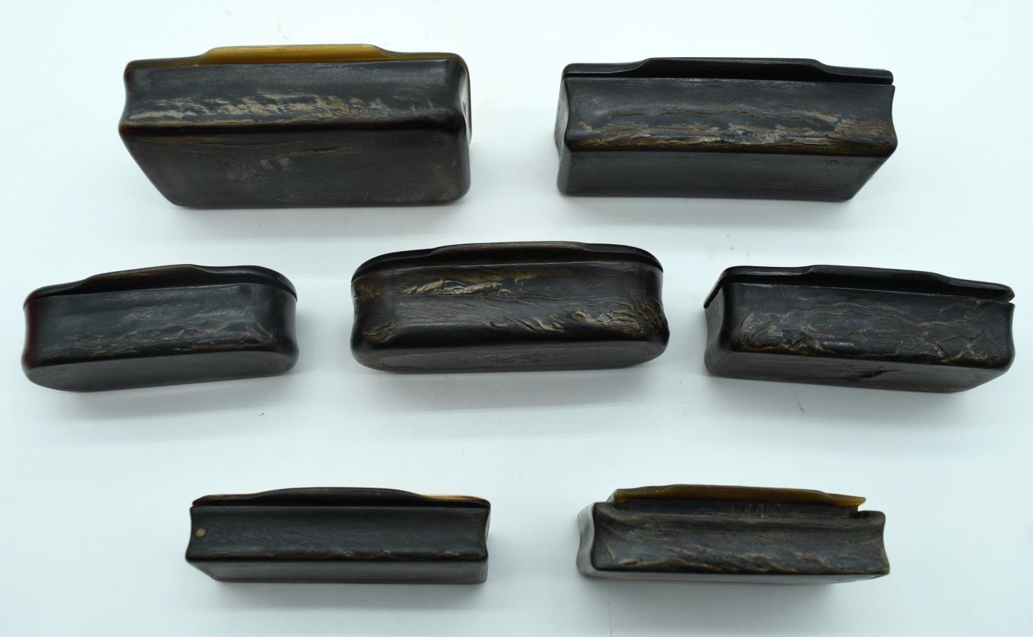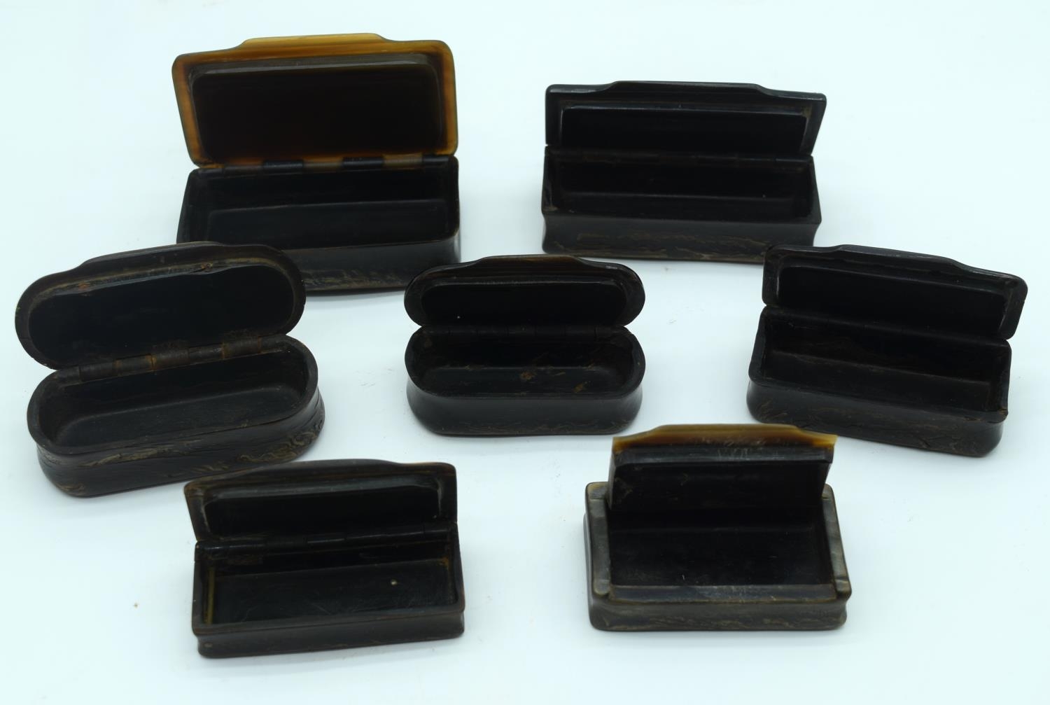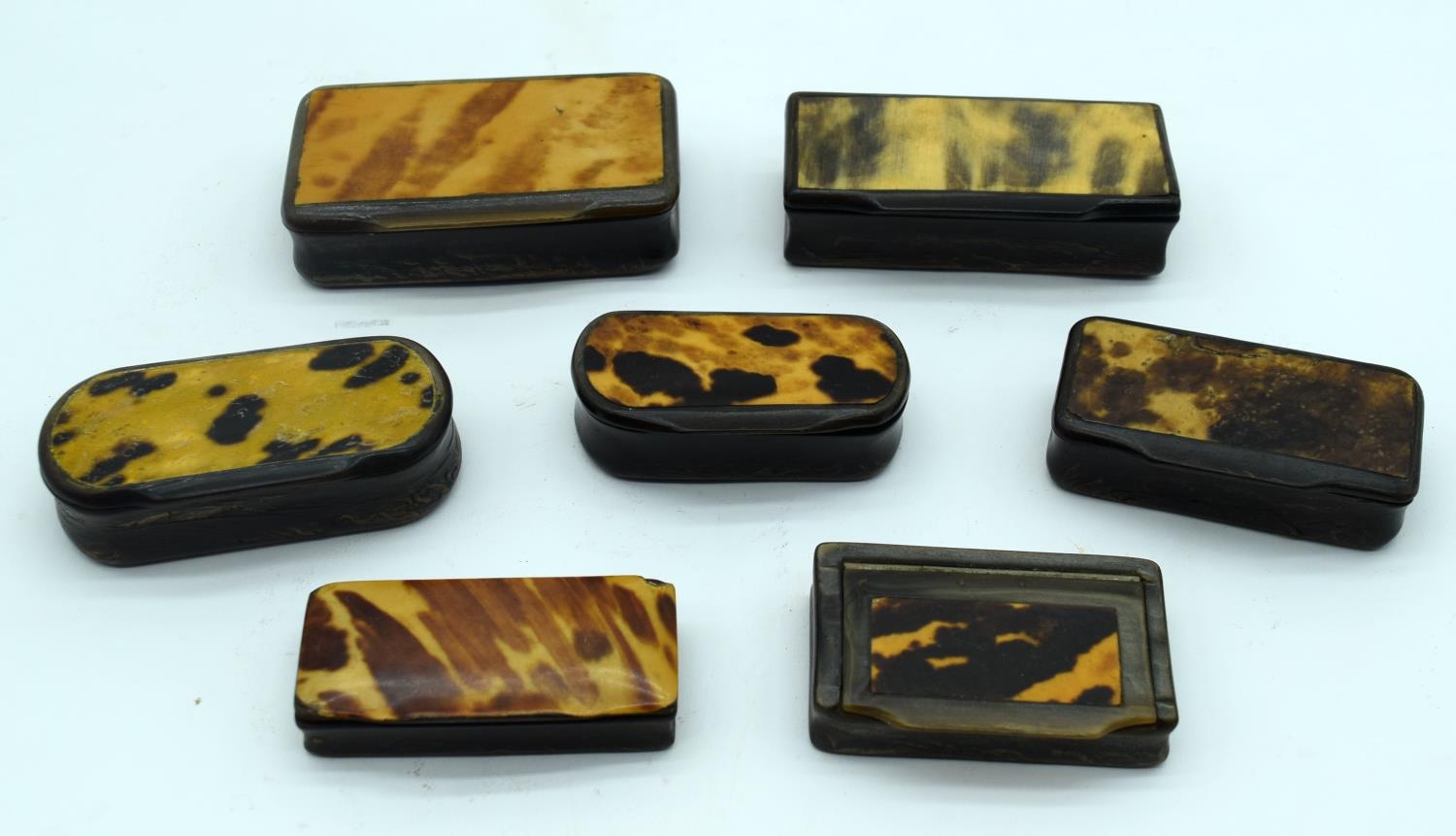 A collection of Tortoise shell snuff boxes 9cm (7).