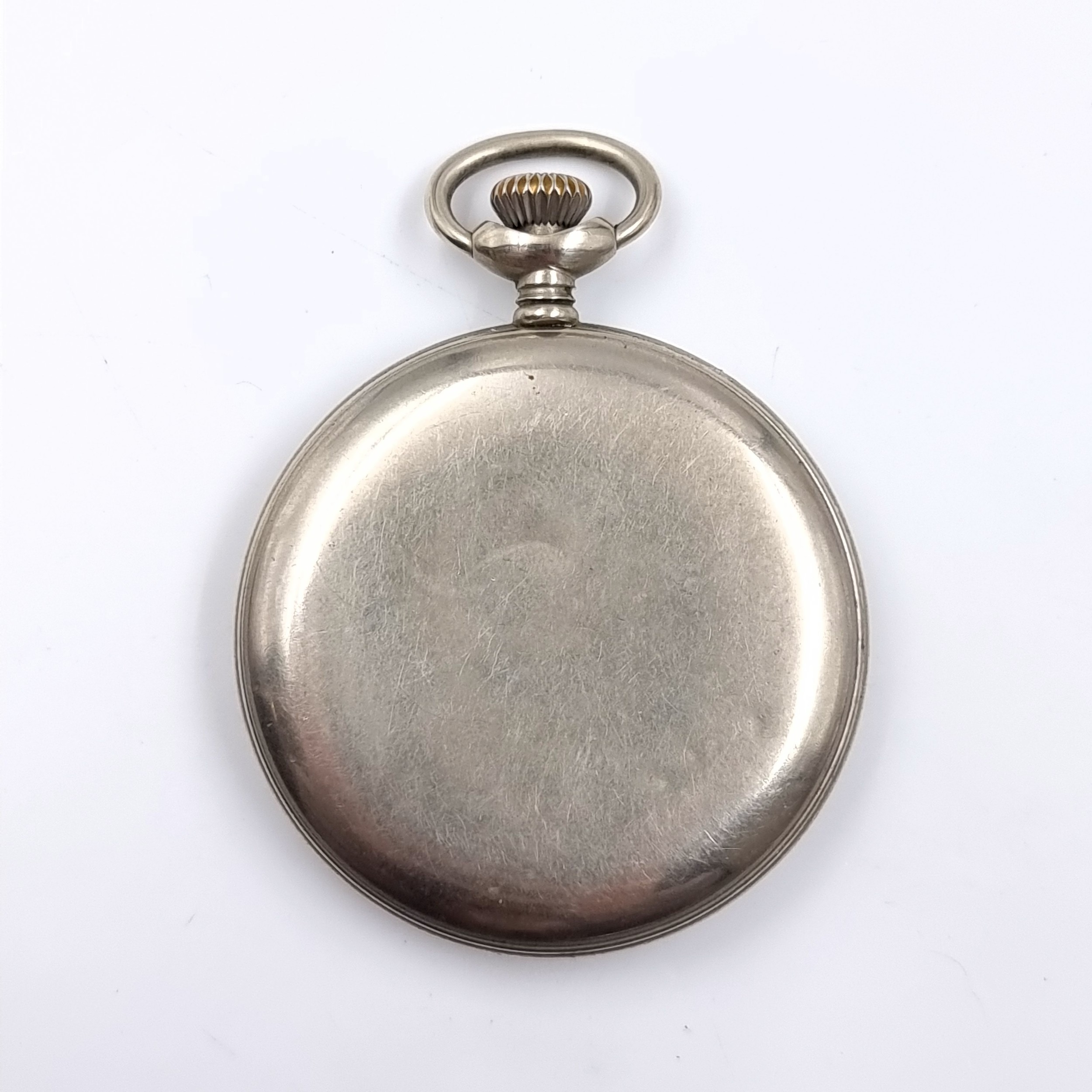 An Ingersoll 16 jewel Yeoman pocket watch with engine turned inner case. Watch no. 814. Dated inscriptions to inner case. MM: 5cm diameter. Weight 63.74 grams.