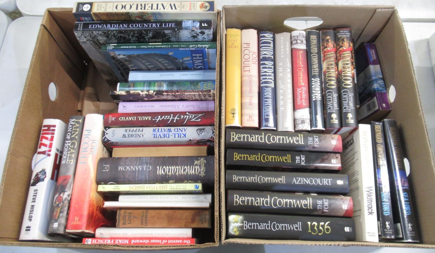 Mixed collection of Bernard Cornwell, Jodi Picoult and other books in 2 boxes
