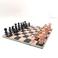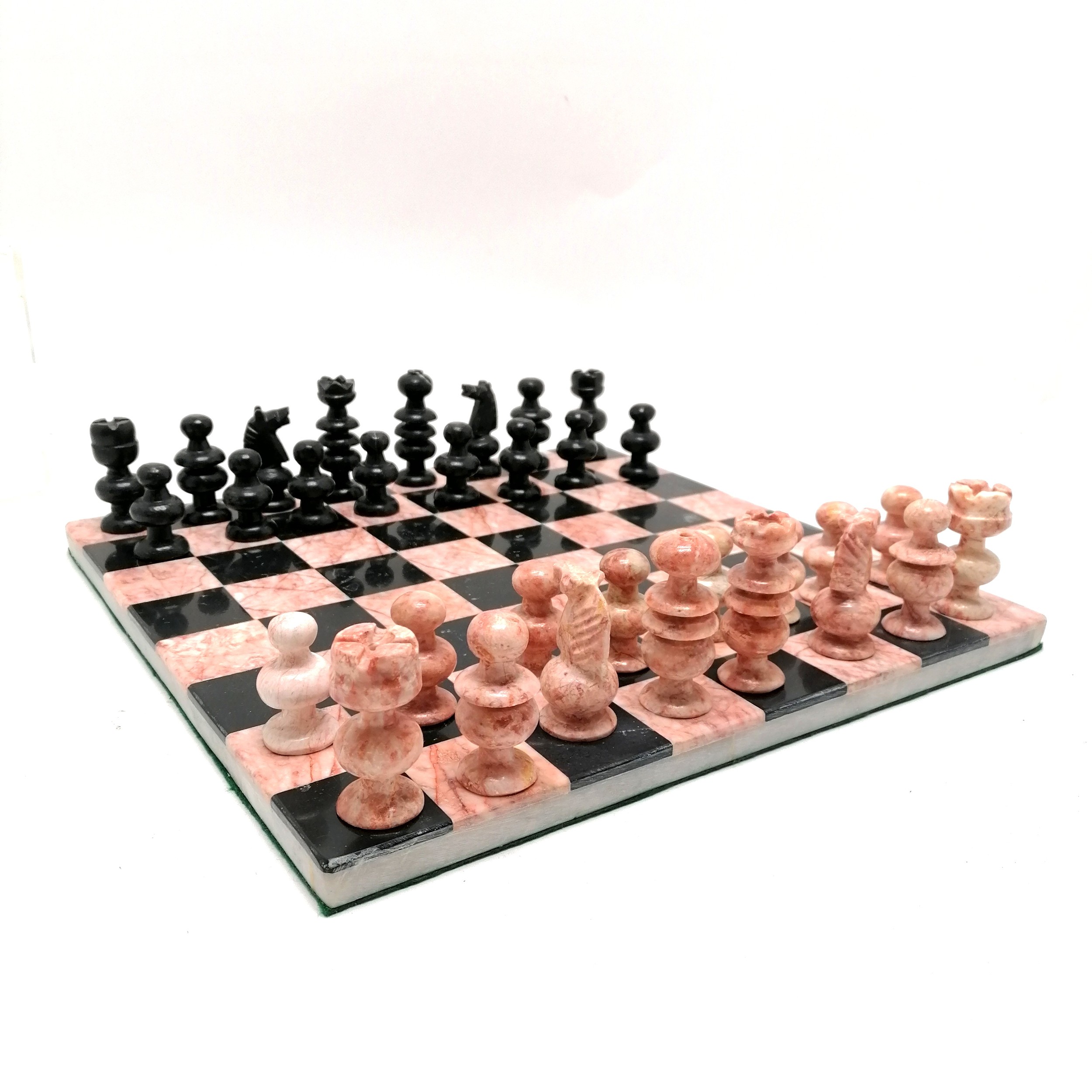 Vintage pink and black marble chess set and board 34cm x 34cm