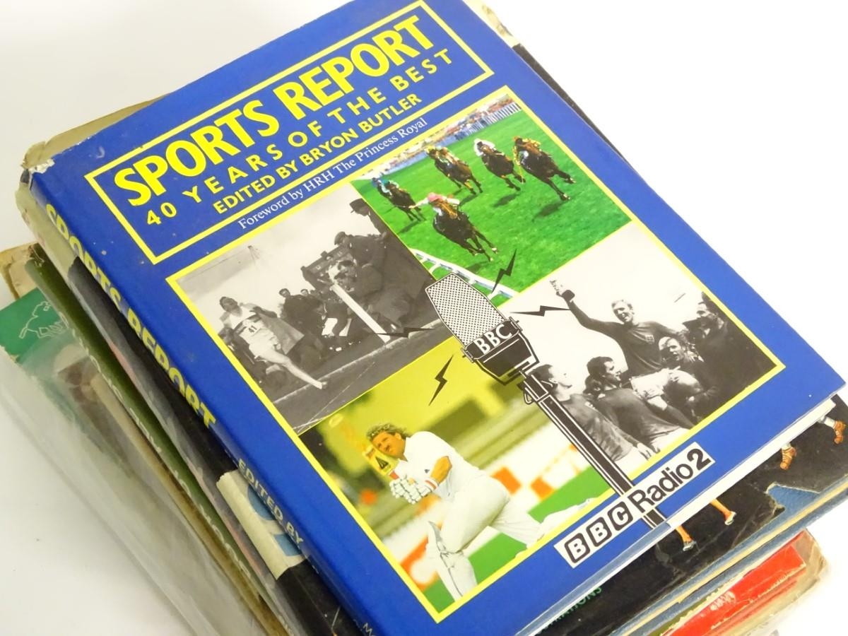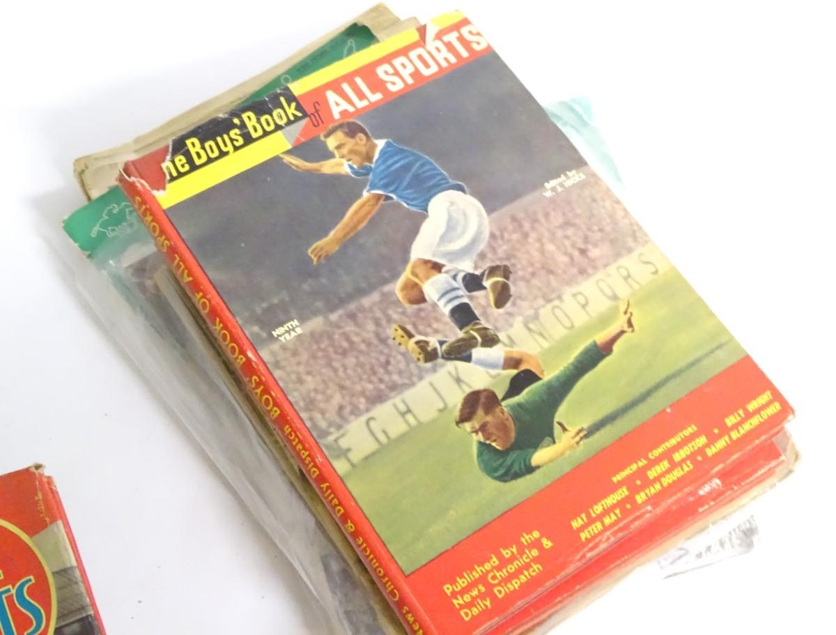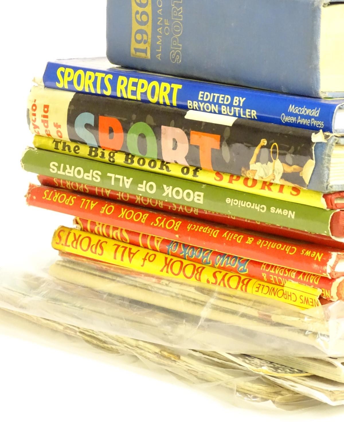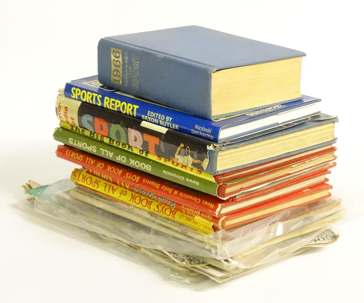 Books: A quantity of assorted books and periodicals on the subject of sport, titles to include Almanack of Sport, 1966, edited by Charles Harvey; The Book of All Sports from various years; The Big Book of Sports, by Frank Tyson; Encyclopedia of Sport, edited by Charles Harvey, 1959. Periodicals to include, Sport Express October 1956 and April 1957; Wembley Presents 22 Years of Sport, 1945 and 25 Years of Sport, 1948, by Tom Morgan; Sunday Pictorial Sports Parade, 1949; four 1950 World Sports. Together with others.