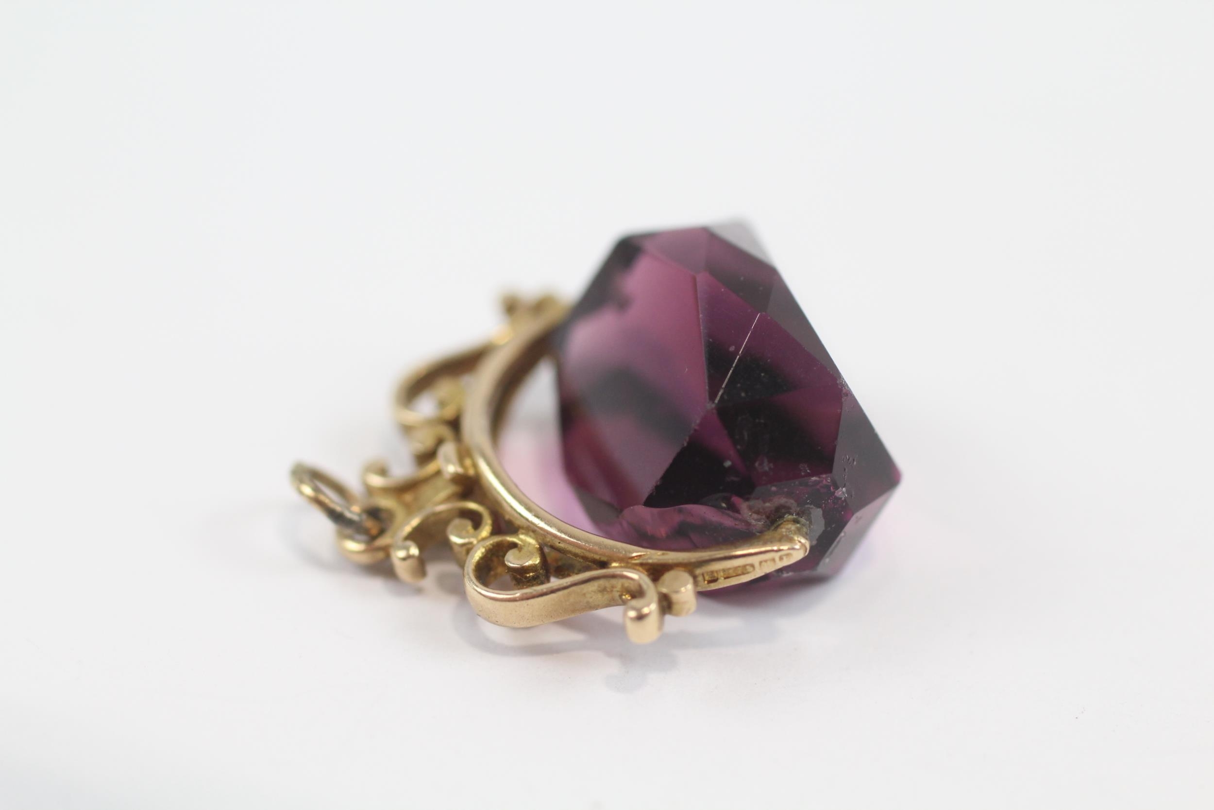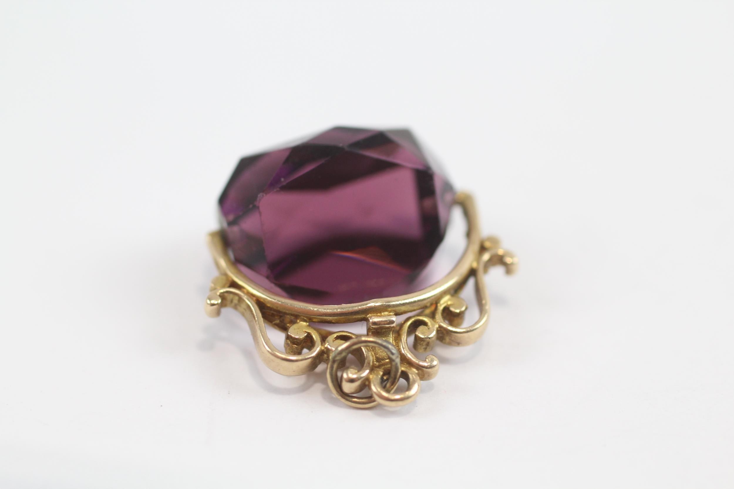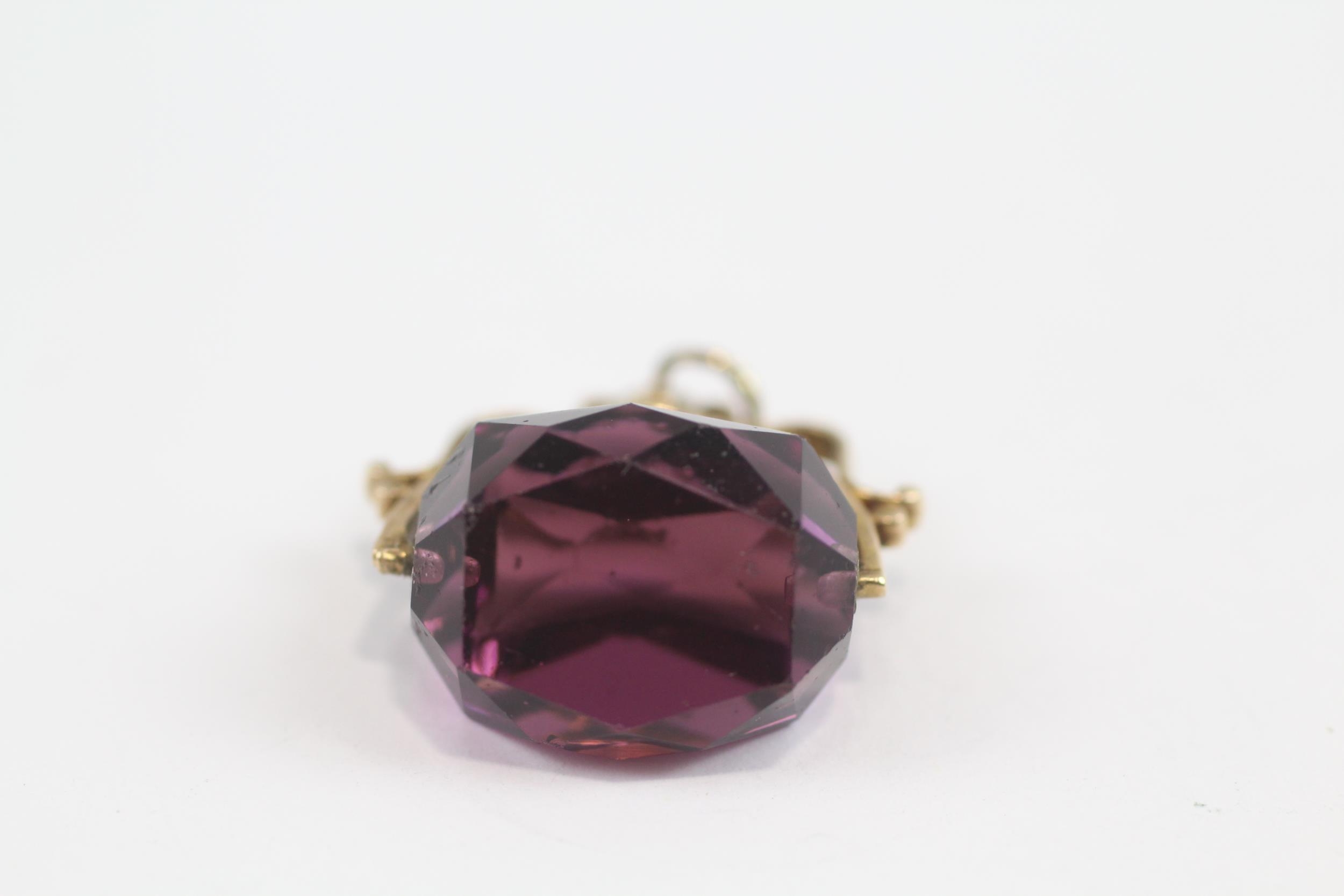 9ct Gold Vintage Amethyst Coloured Glass Spinning Fob (6.1g)