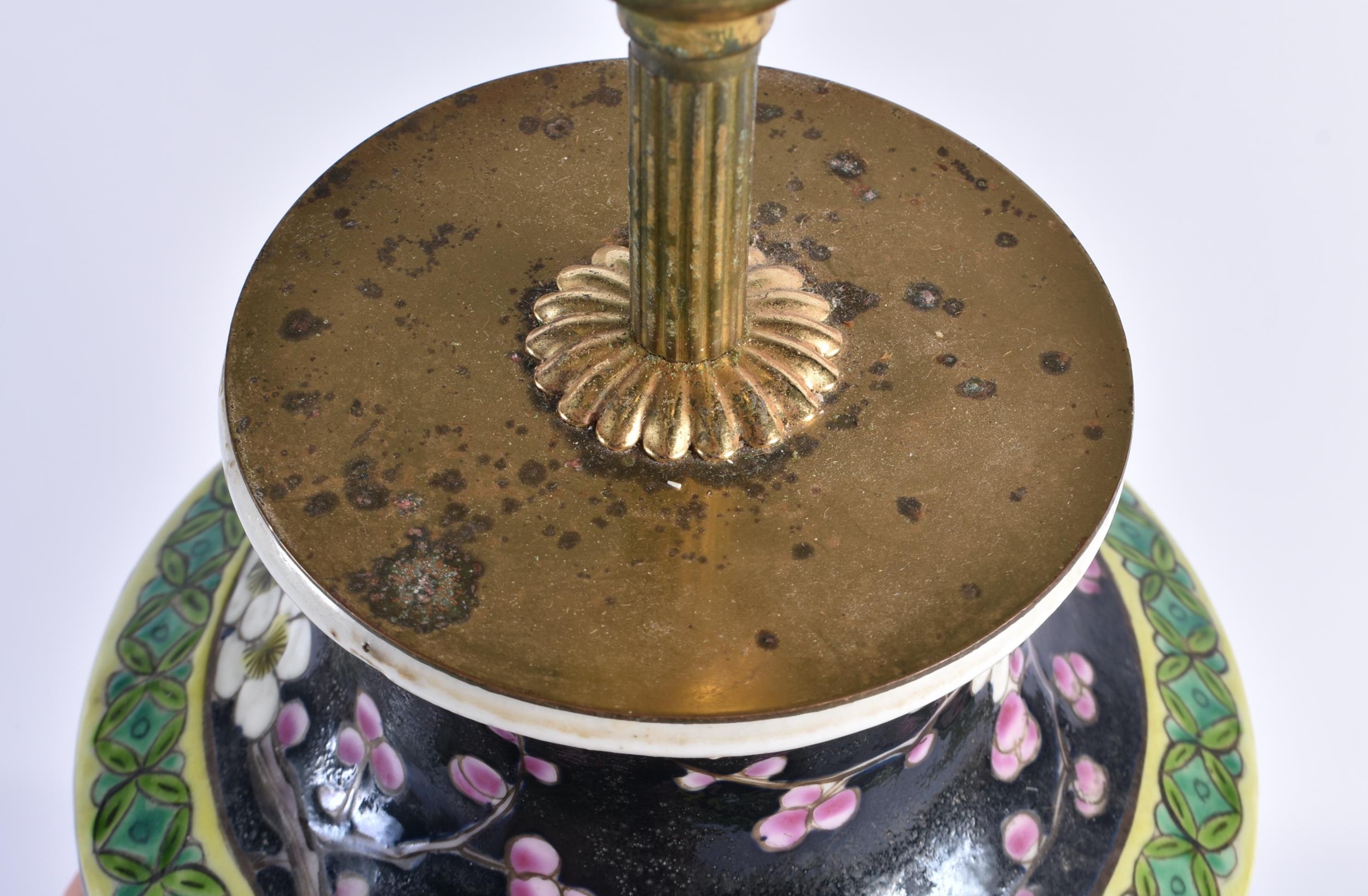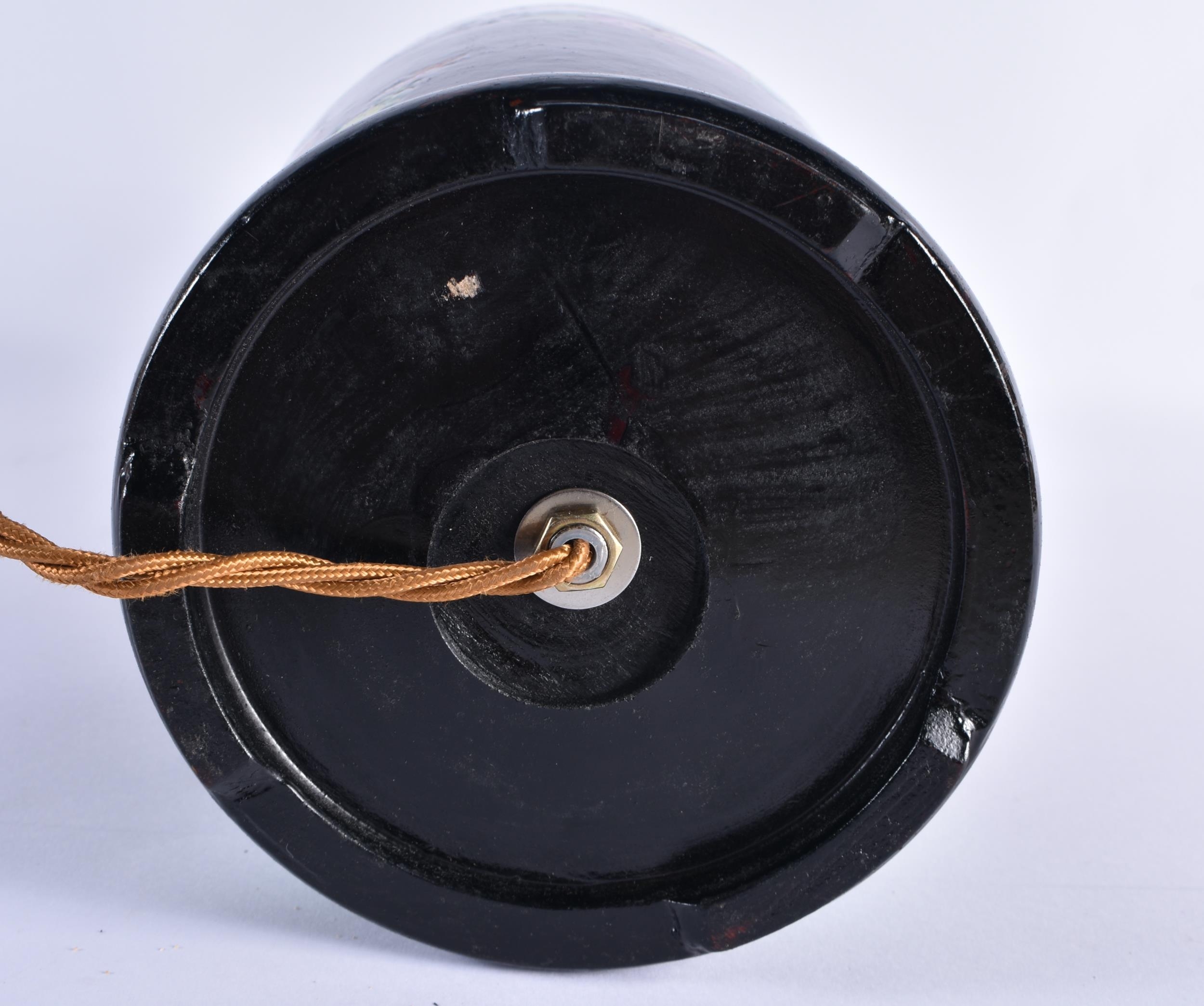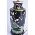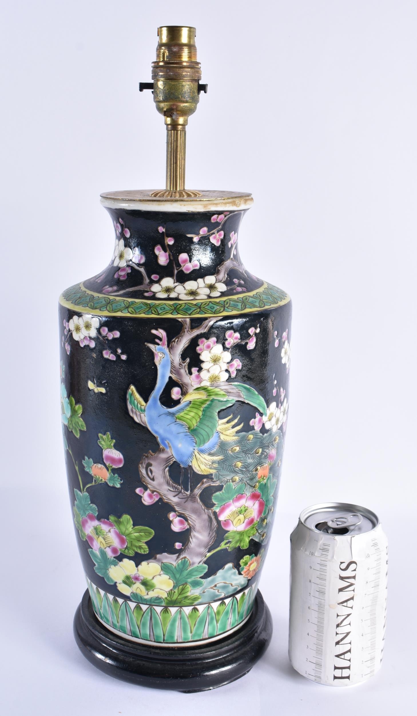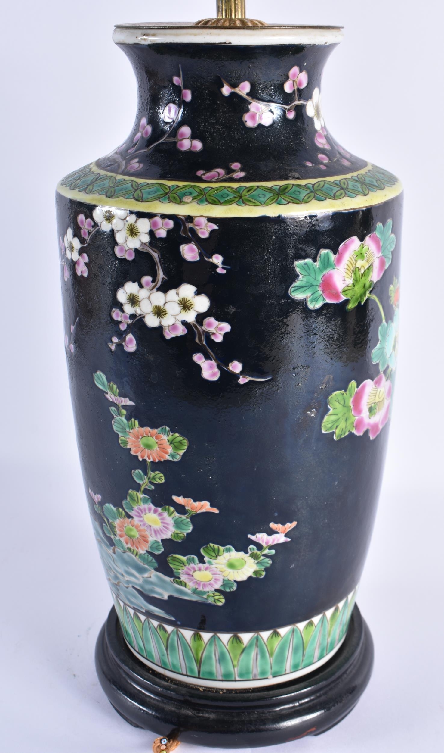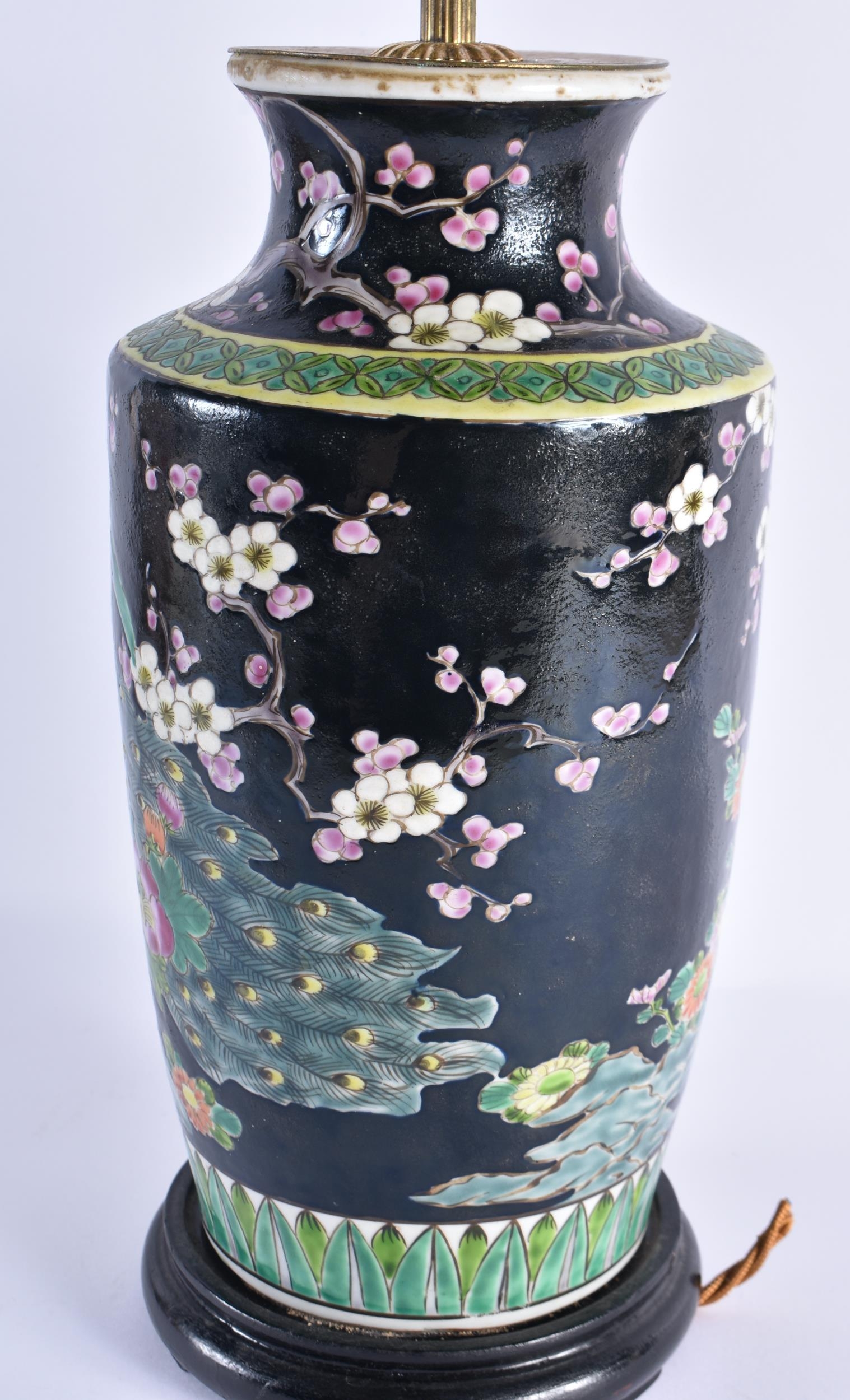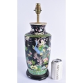 A 19TH CENTURY JAPANESE MEIJI PERIOD COUNTRY HOUSE AO KUTANI NOIRE LAMP painted with birds and foliage. 43 cm high.