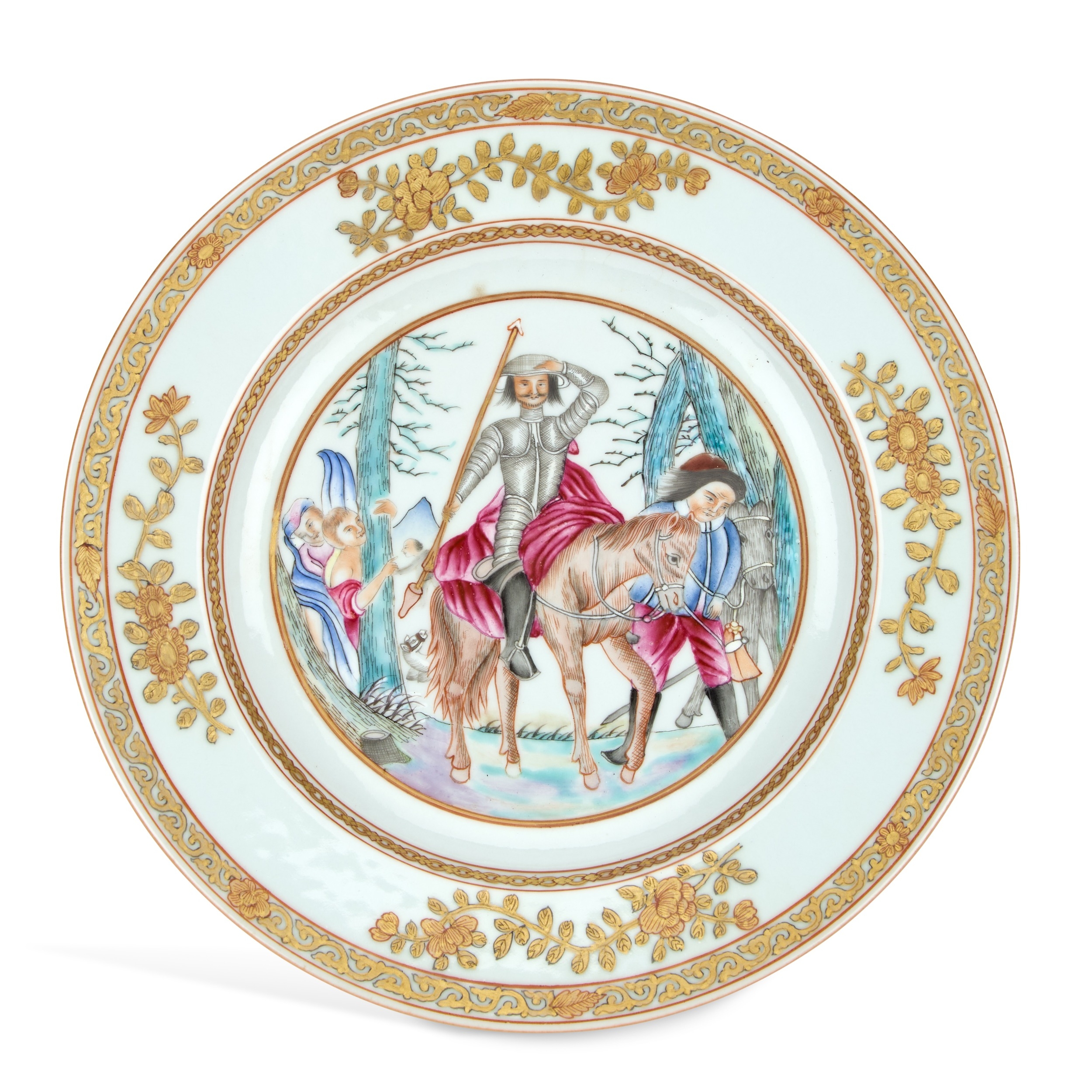A CHINESE FAMILLE ROSE PORCELAIN EUROPEAN-SUBJECT PLATE
