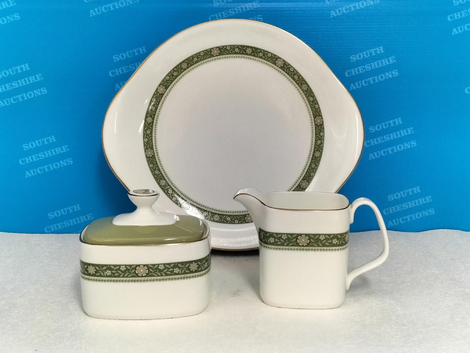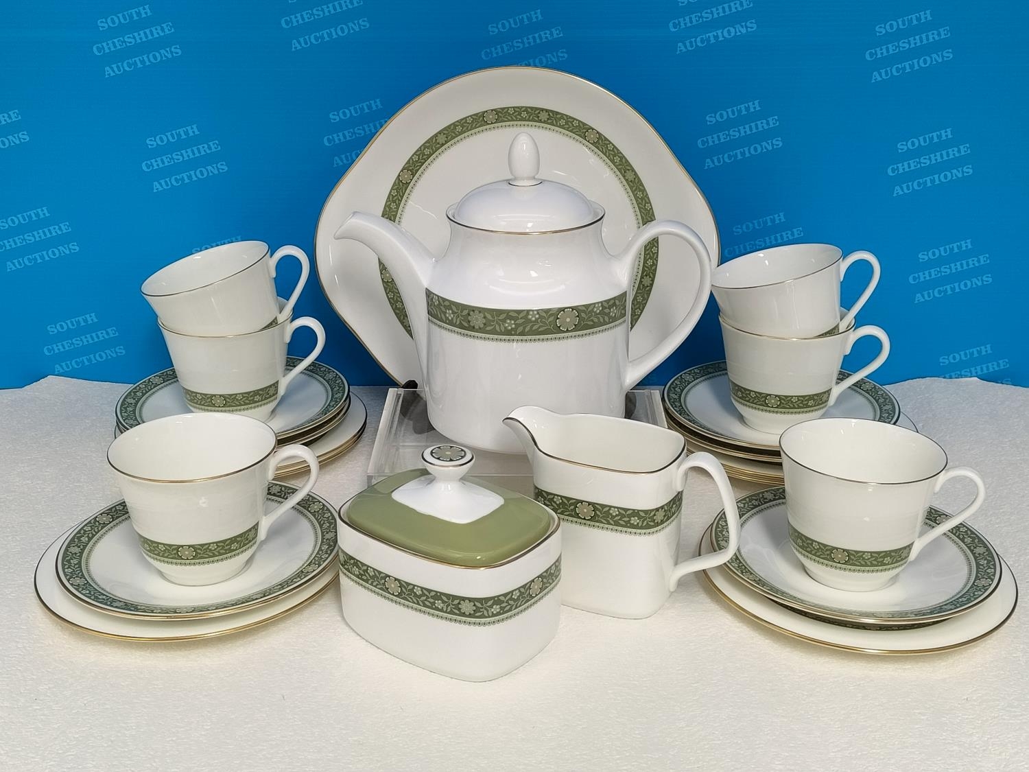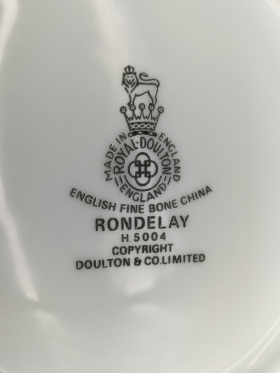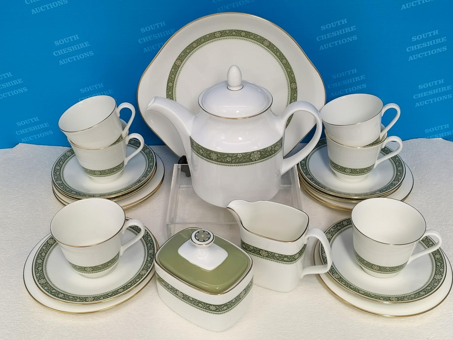 Royal Doulton 22 Piece Tea Set in the 'Rondelay' Pattern H5004 to include Tea Pot, Milk Jug, Lidded Sugar Bowl, Trios (6) and Cake Plate.