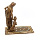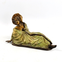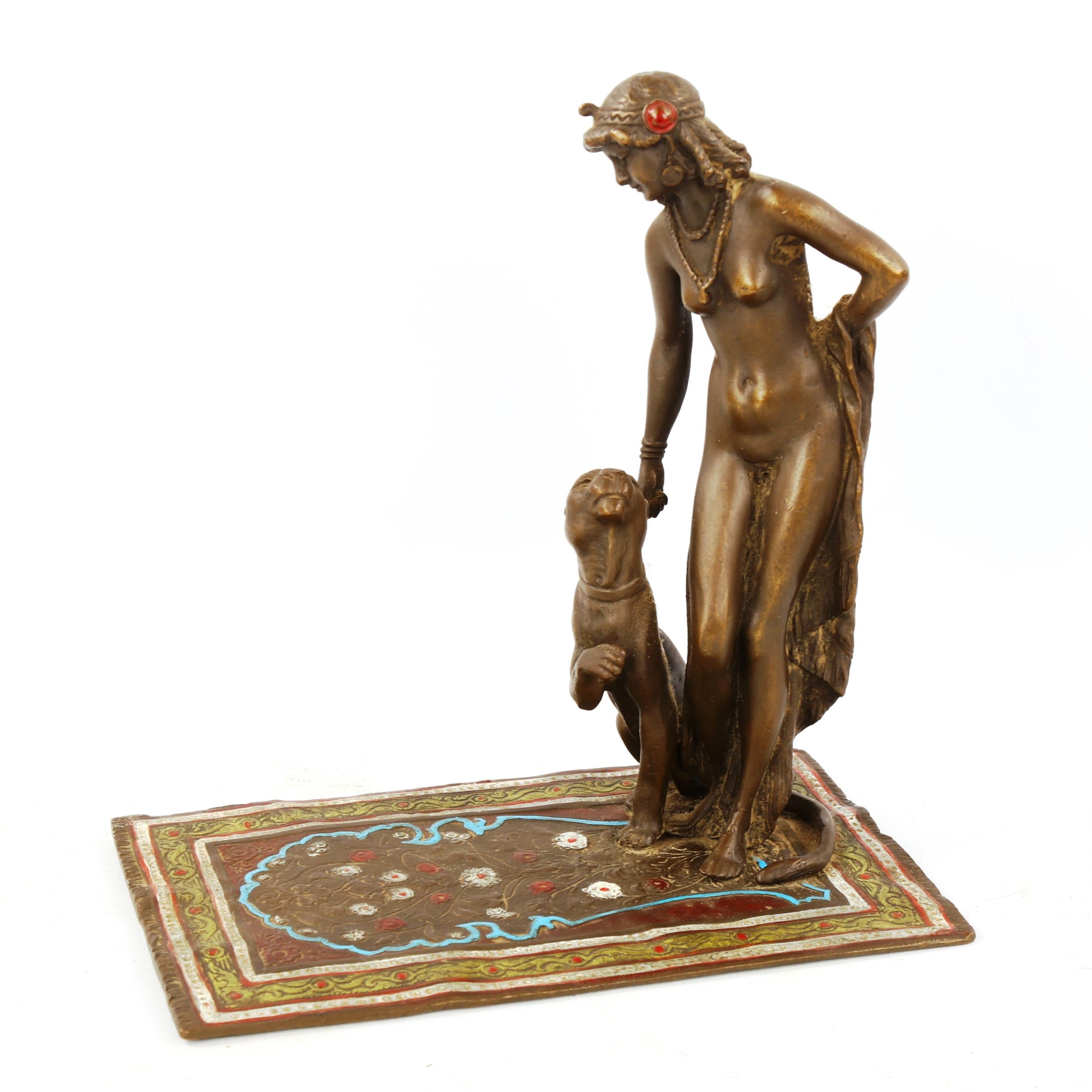 Bergmann style cold painted bronze female nude with panther on Persian rug, height 16cm