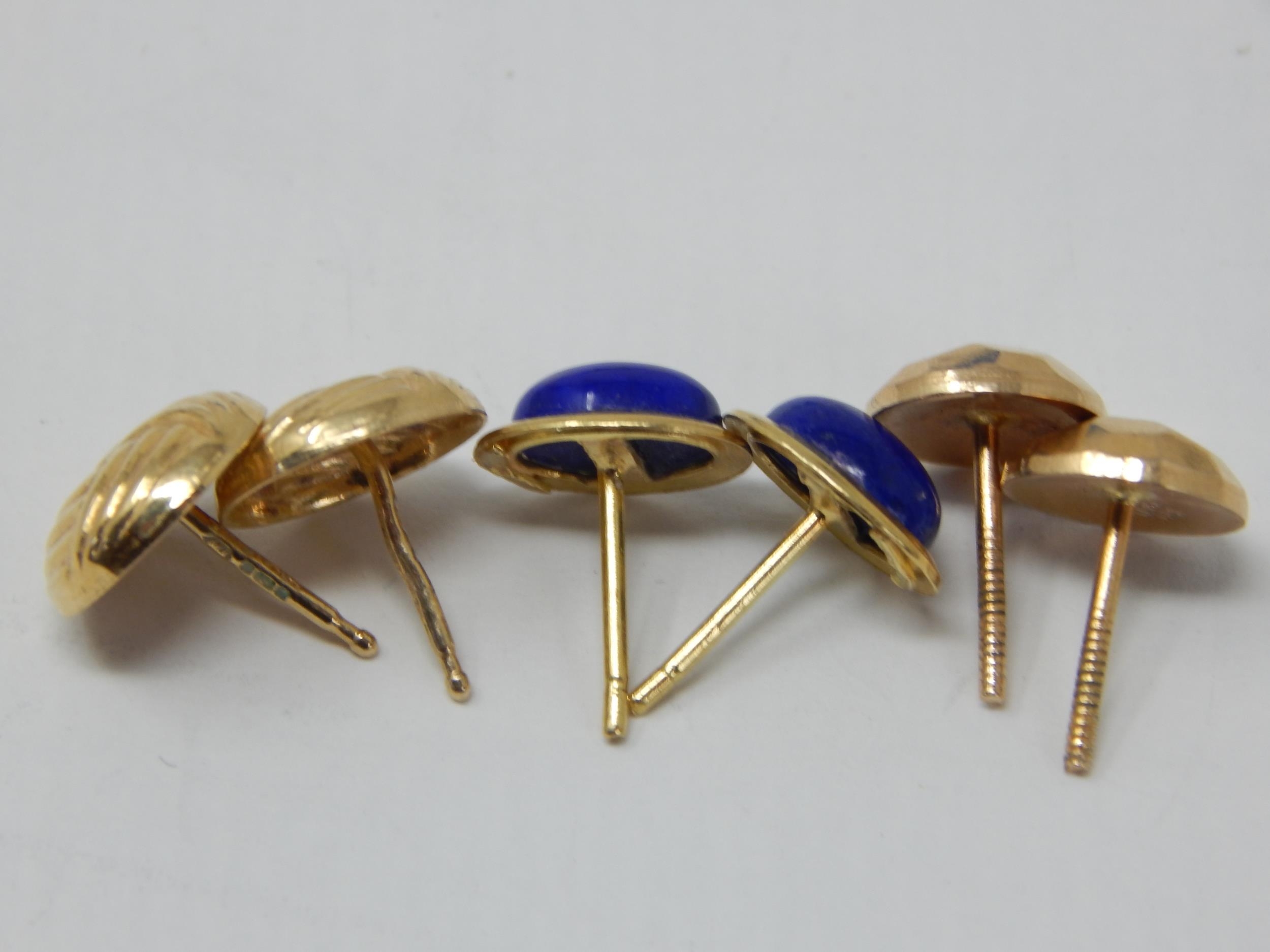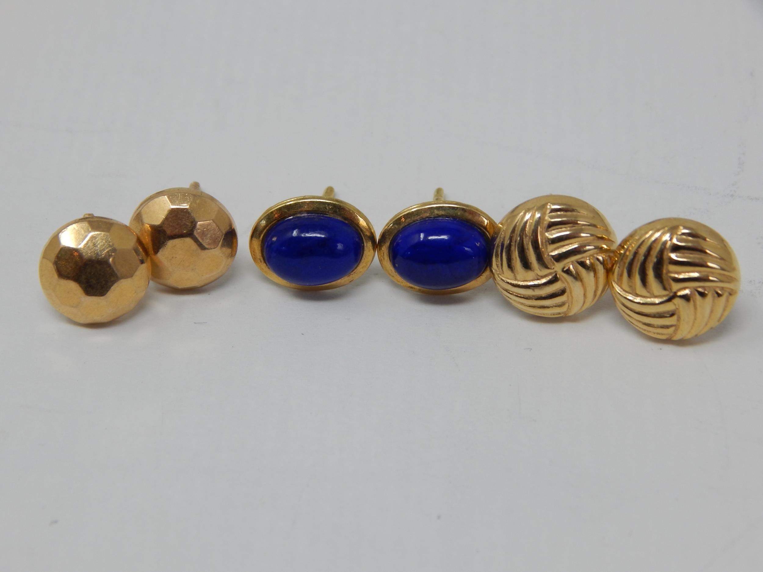 Three Pair of 18ct Yellow Gold Earrings: Gross weight 4.8g