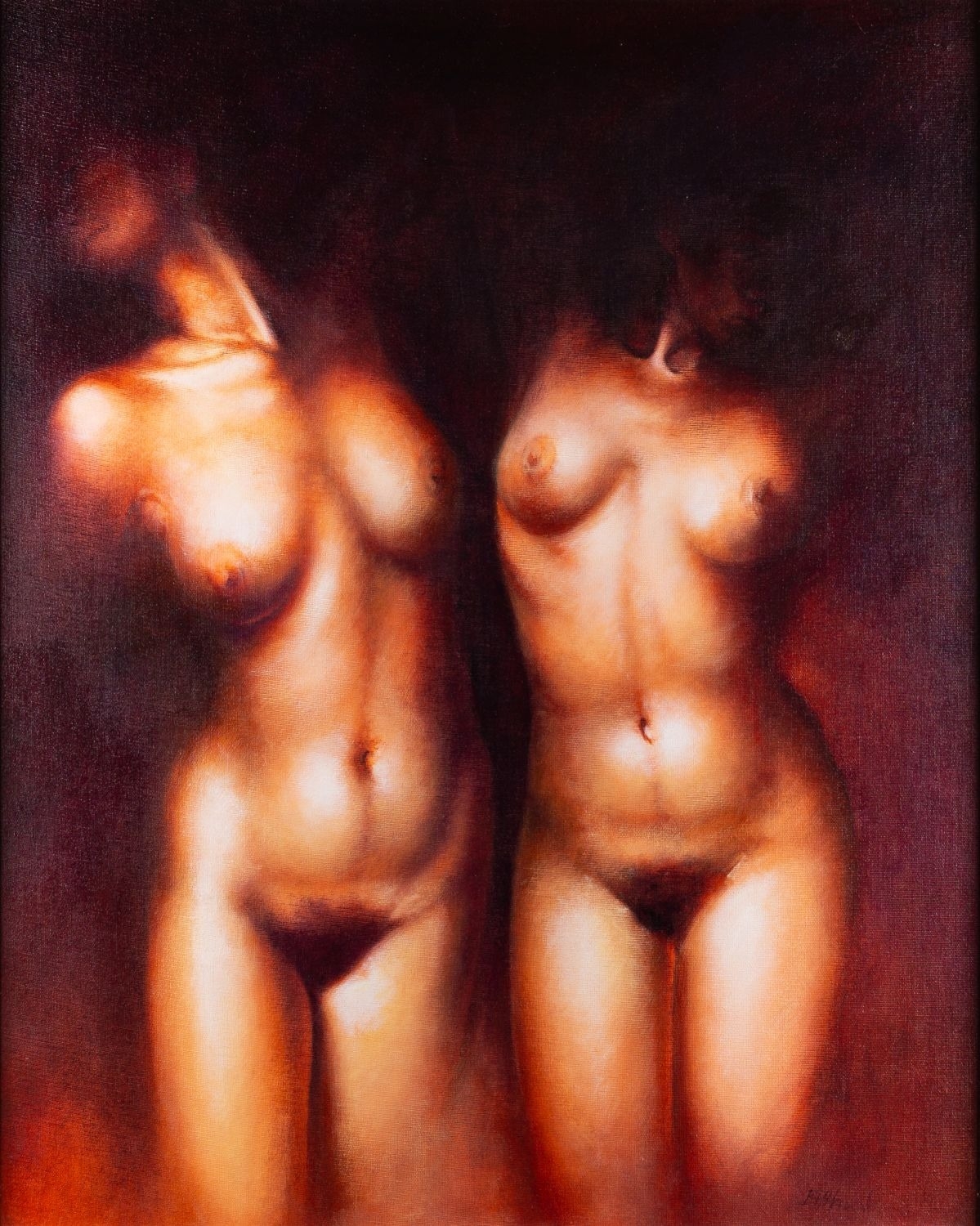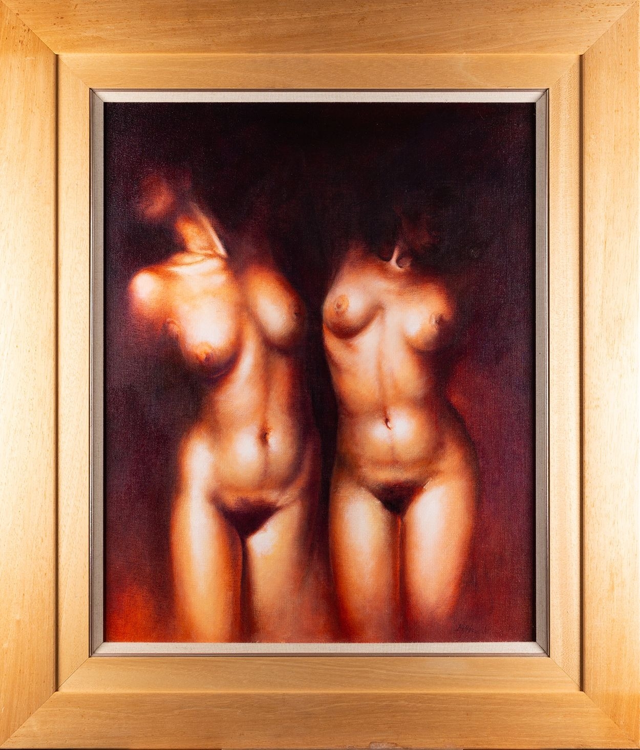 Bonnie-Helen Hawkins (British, b. 1969)- Dark Sisters - Acrylic on board - 67.5 x 54cm - 93 x 79.5cm framed