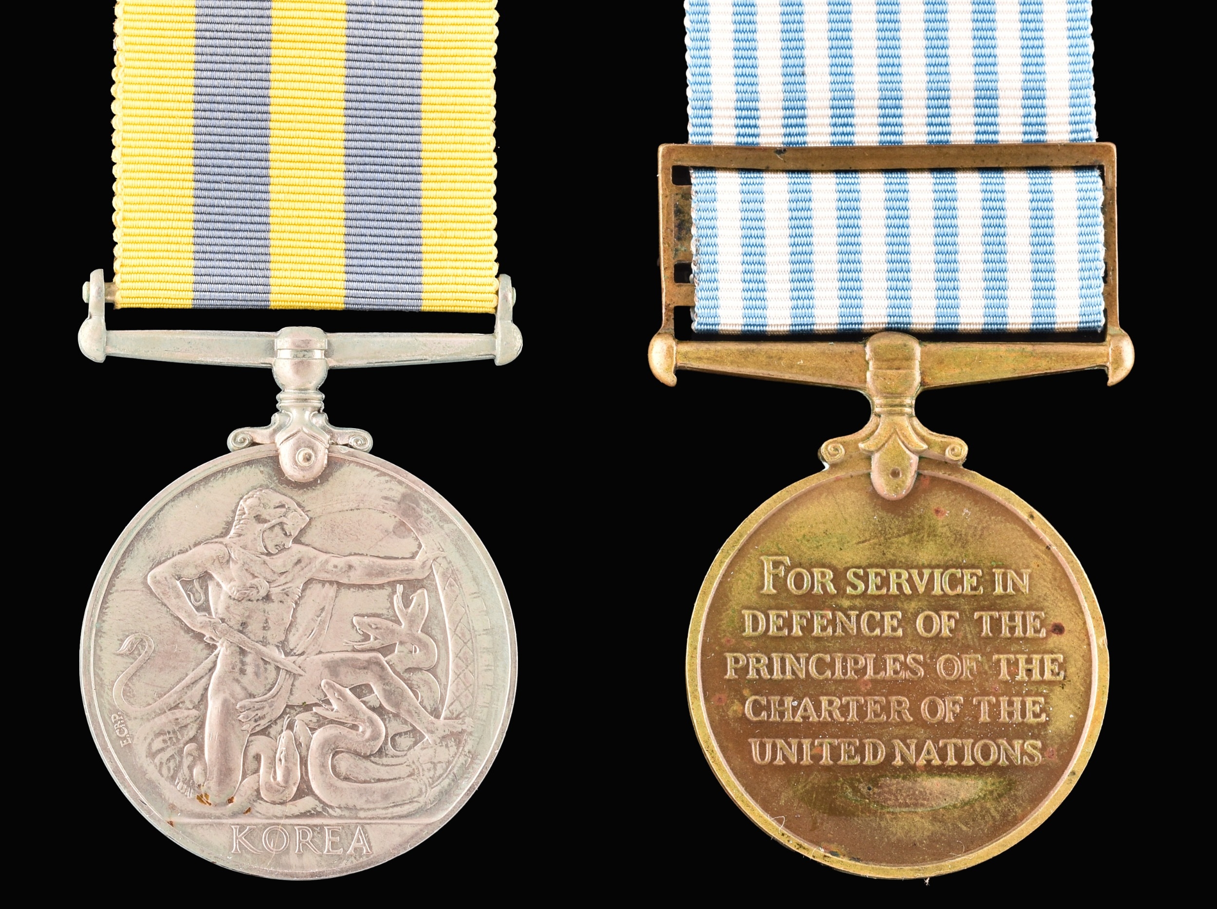 A Korean War medal pair to: D/JX.912945 K. Chadwick Able Seaman, Royal Navy. The Korea Medal (D/JX.912945 K. Chadwick A.B. R.N.); and the United Nations Service Medal Korea, unnamed as issued.