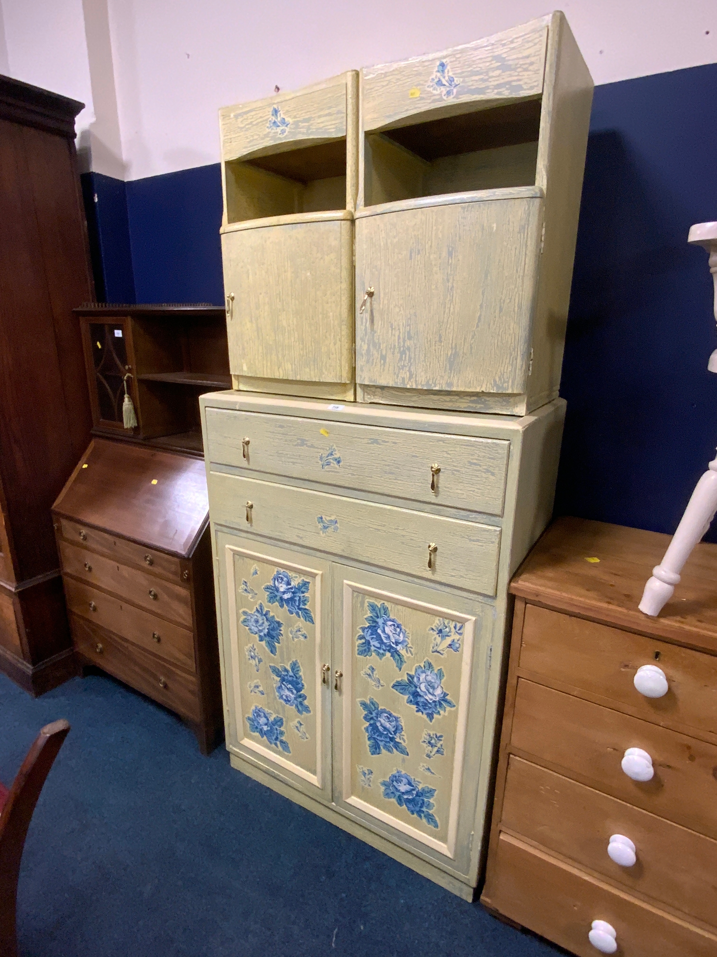A painted utility style tallboy and a pair of bedside cabinets. (3)