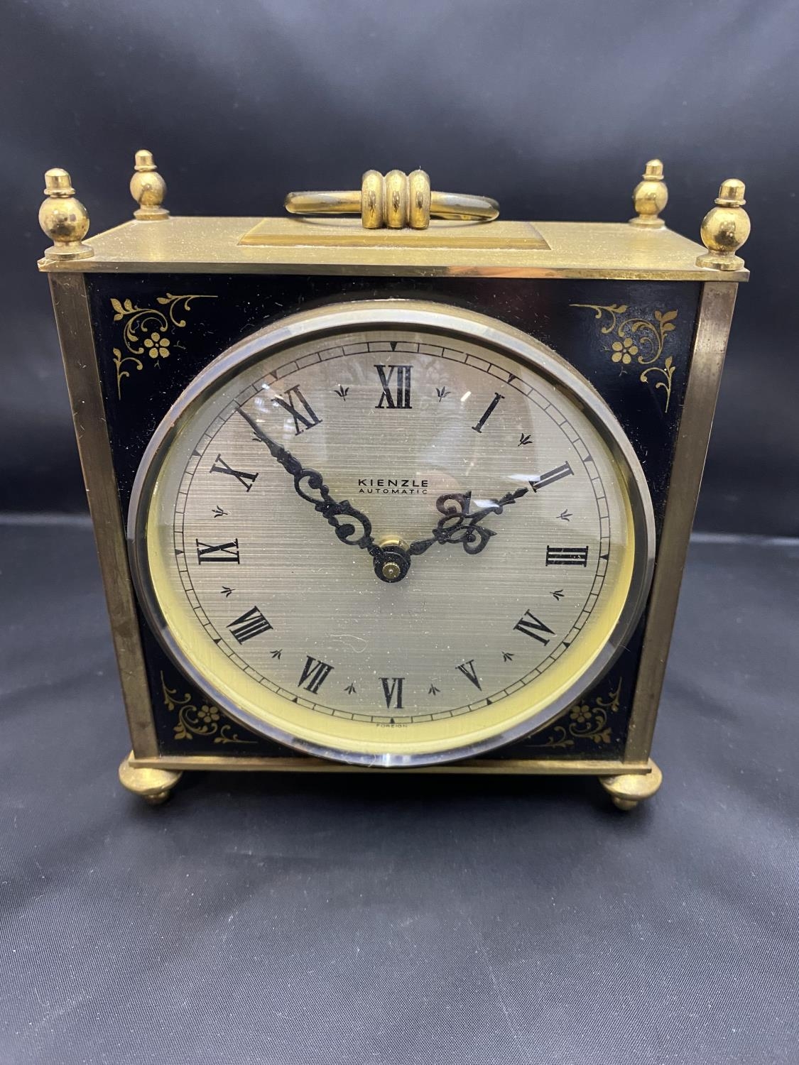 A vintage Kienzle automatic brass cased battery powered mantle clock