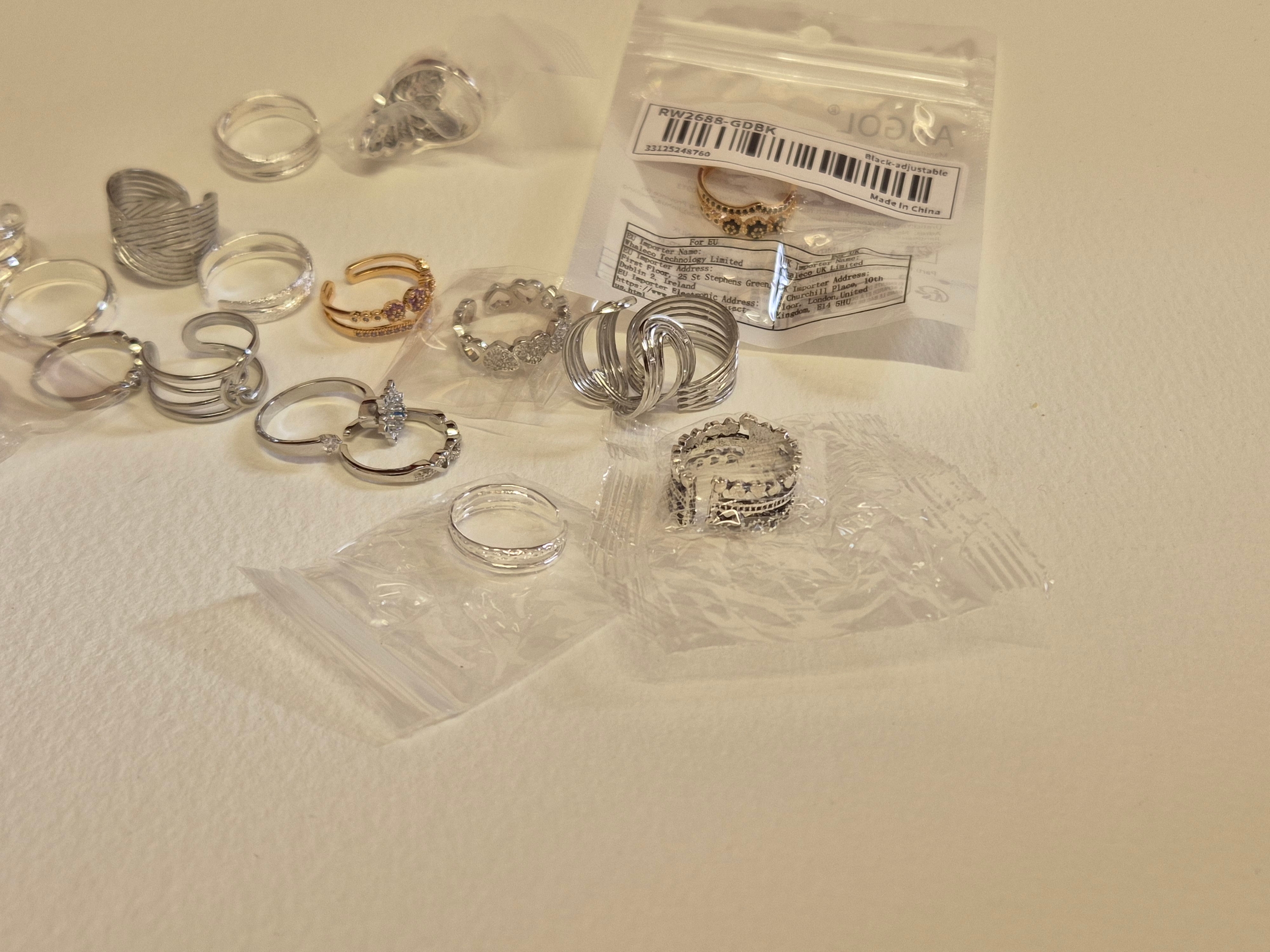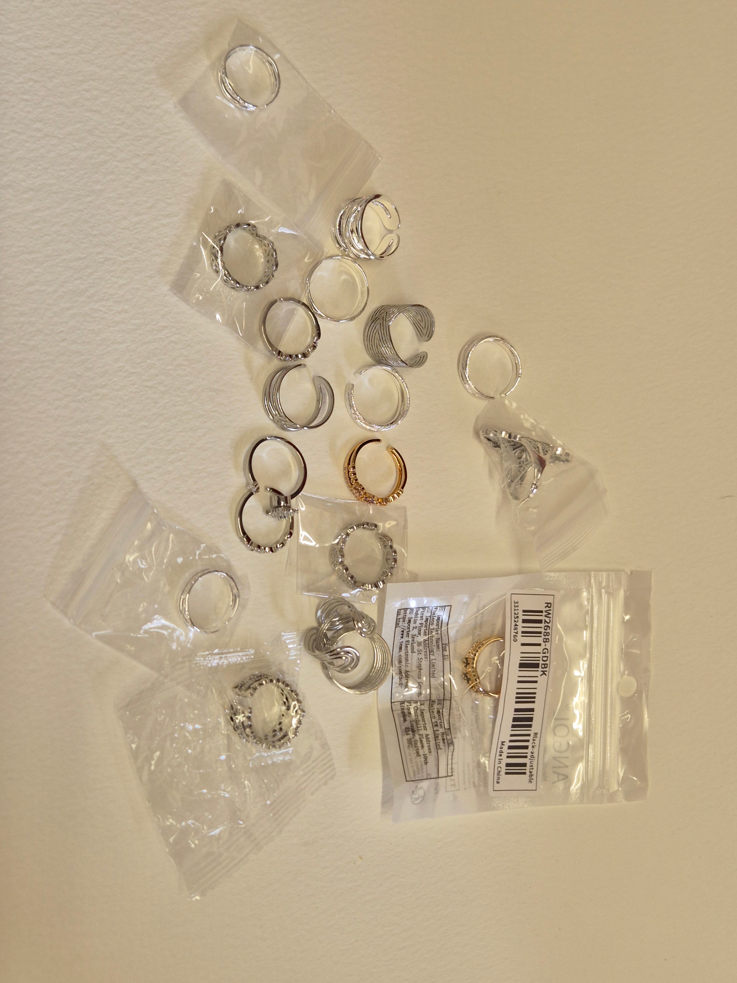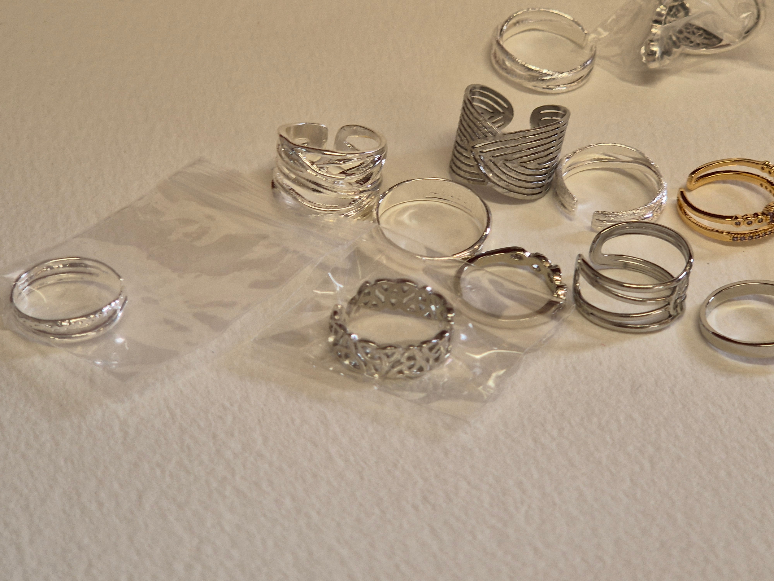 Collection of costume jewellery rings, mostly white metal